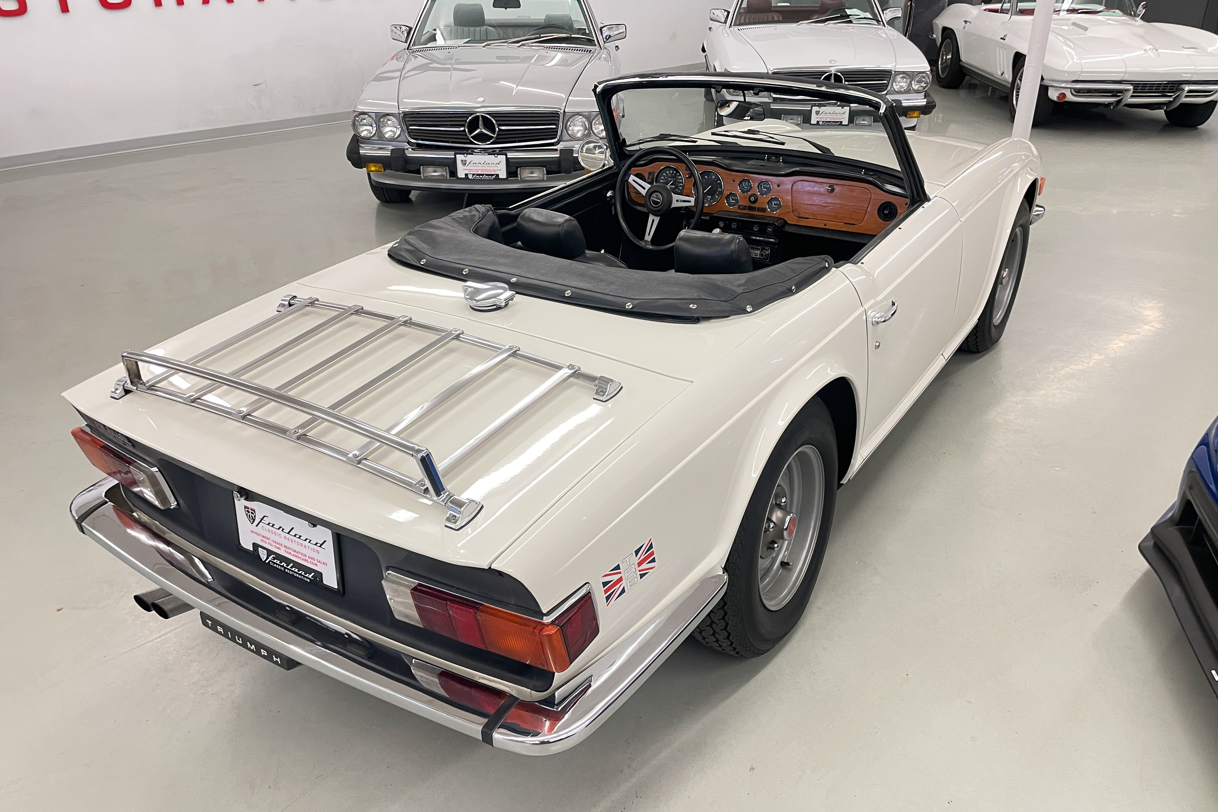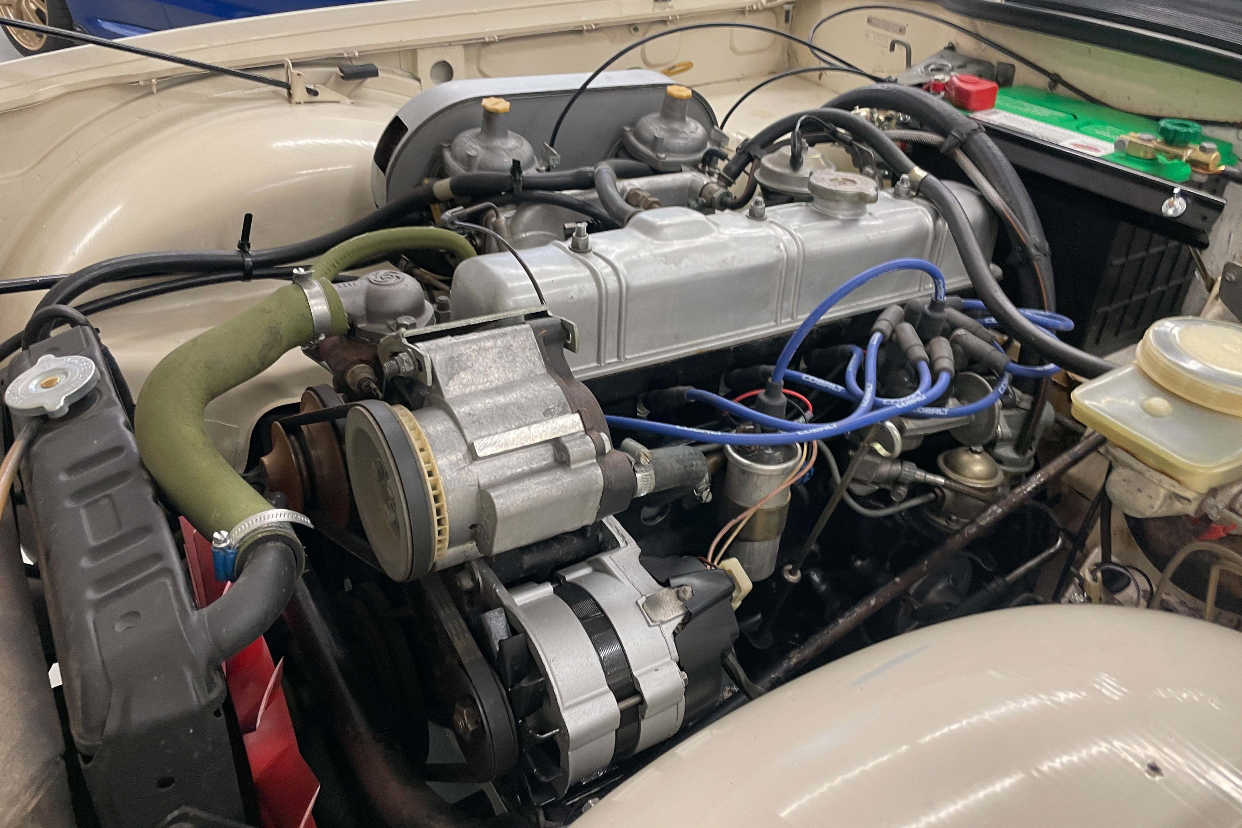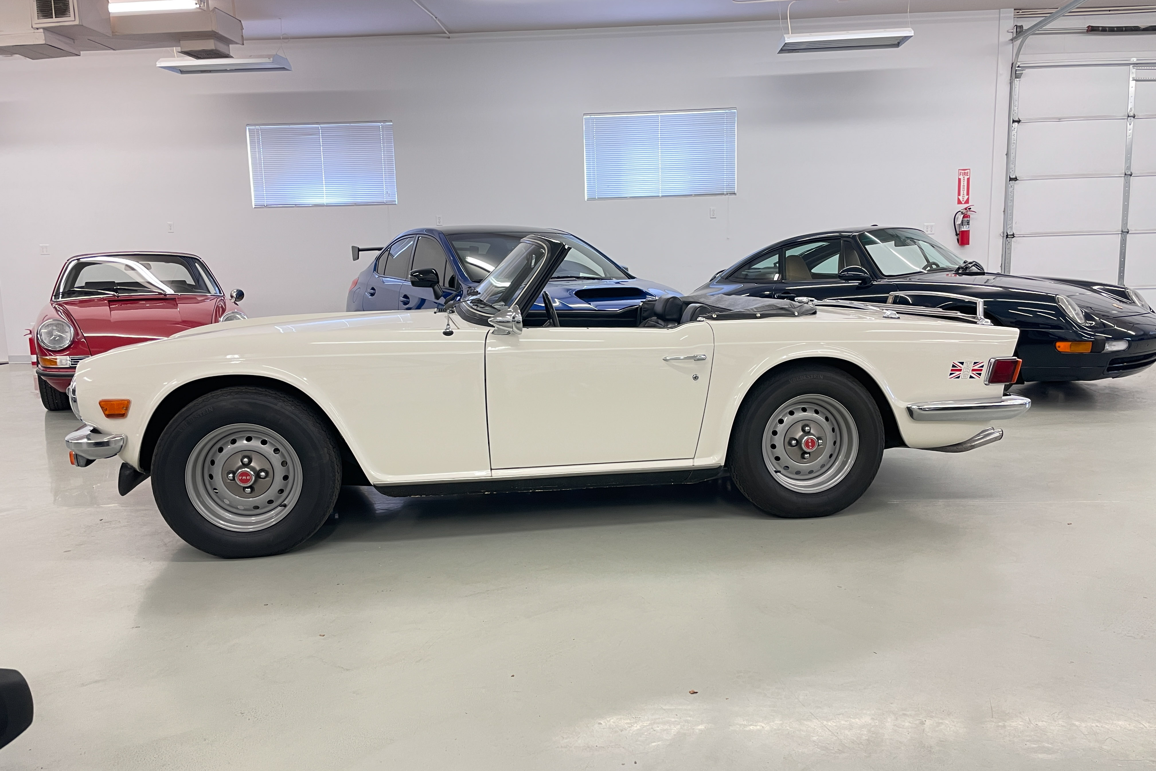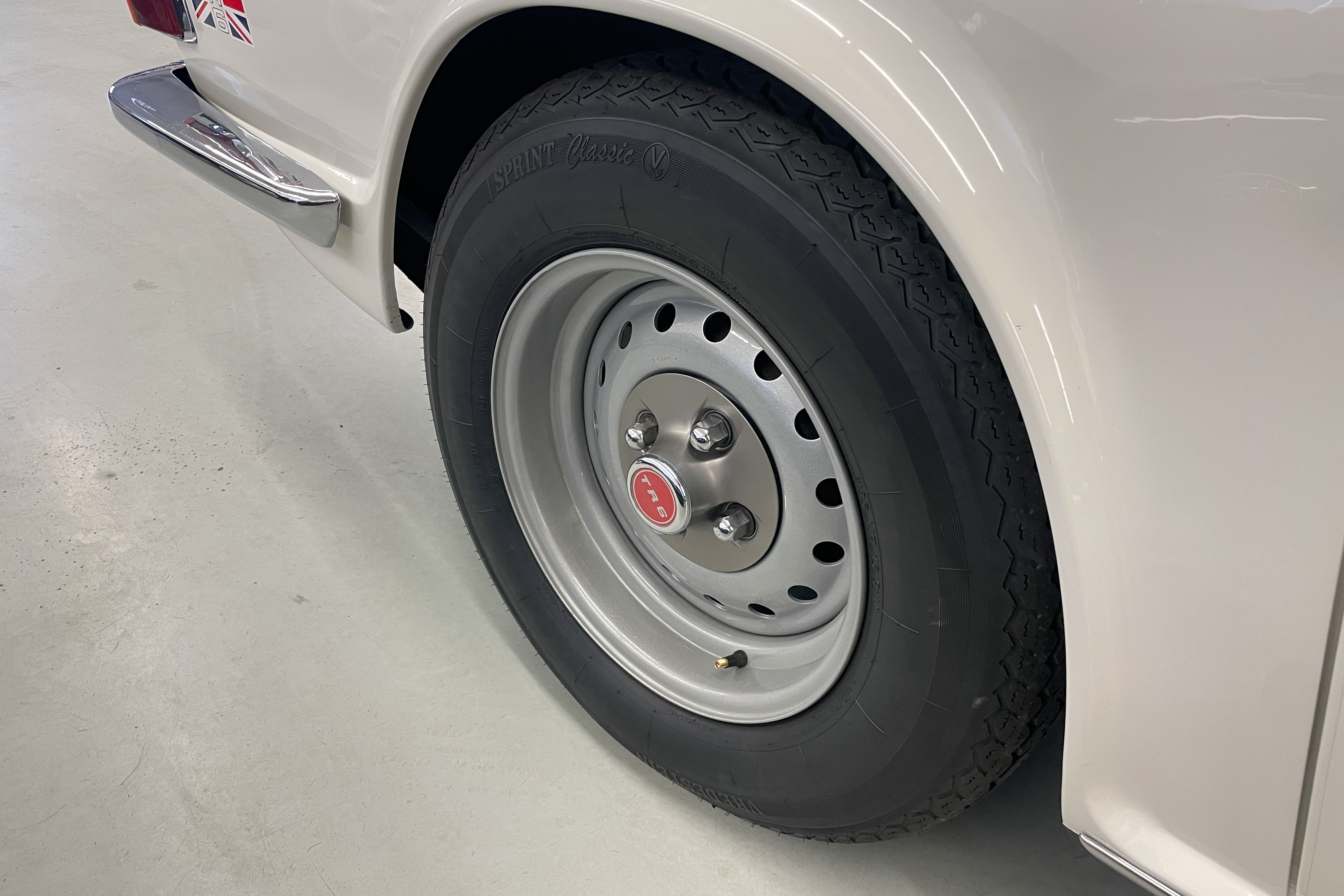 Our shop did a $1300 complete ice blasting treatment on the entire underside that revealed absolutely no hidden rust and left the bottom as clean as the body and got rid of all those years’ accumulated dirt and old grease. It has an upgraded Petronix ignition and spin-on oil filter for reliability and easier maintenance. The engine is tight and quiet and the TR is a delight to drive. We are confident you won’t find a nicer one—cheaper, yes, but few are nicer.