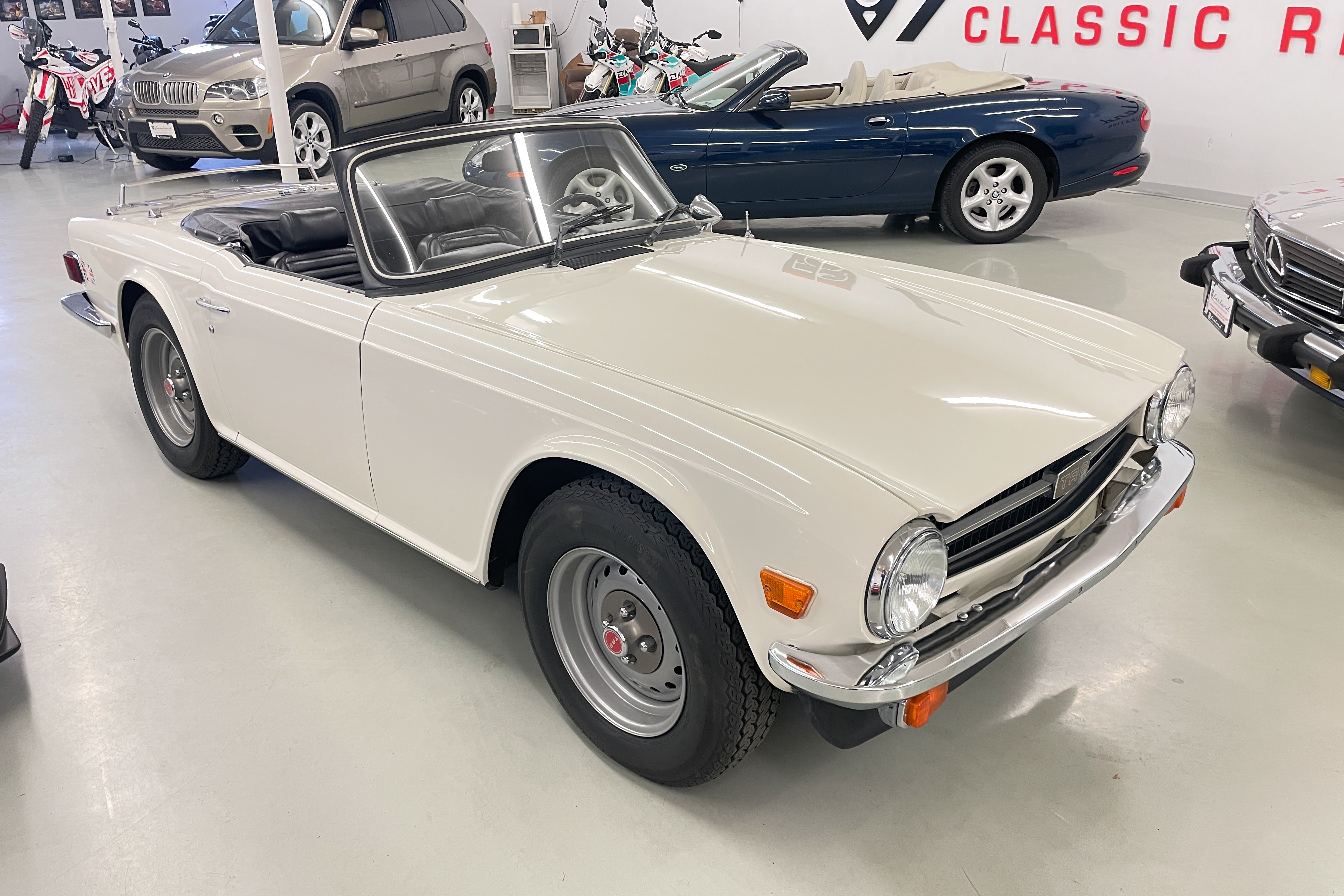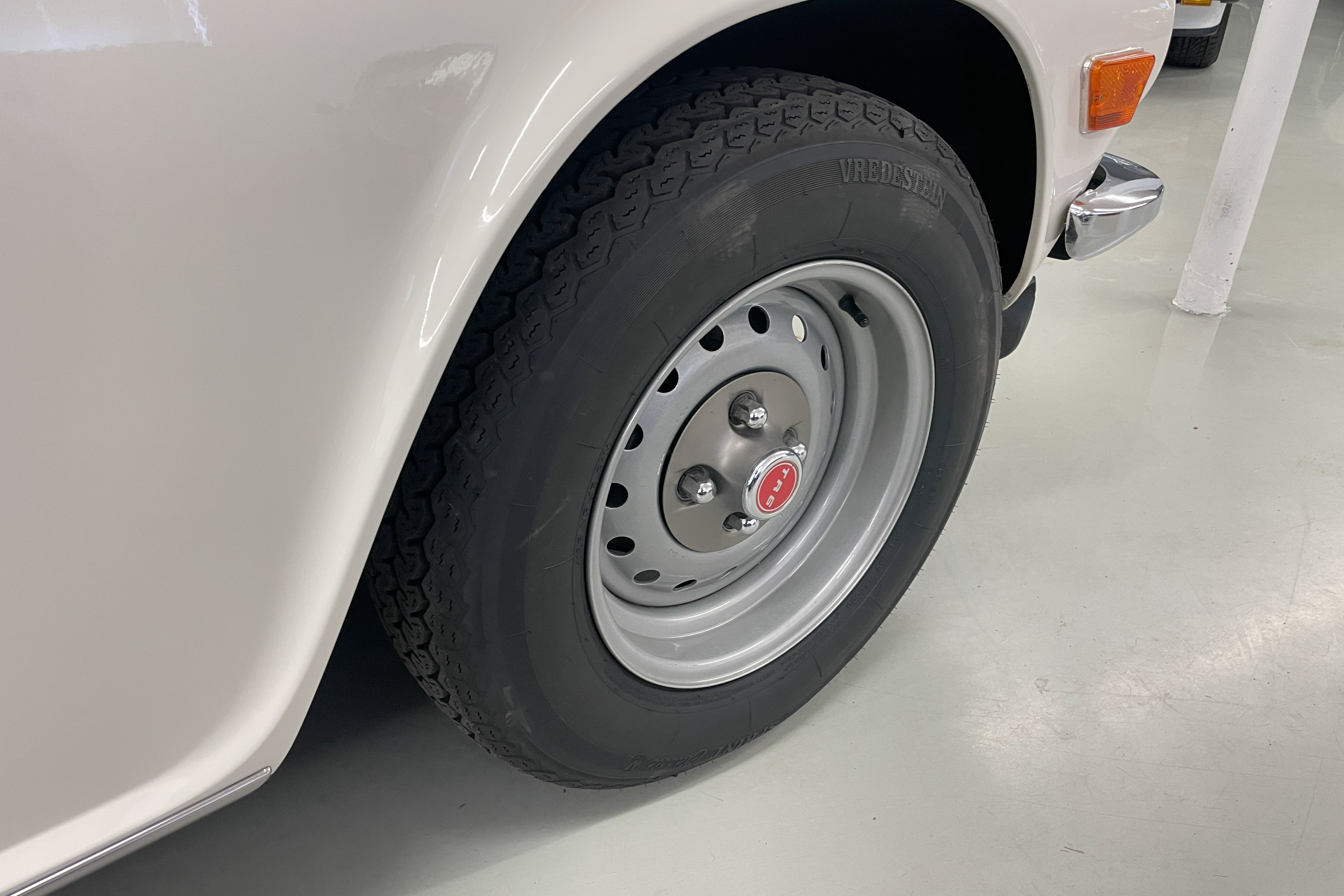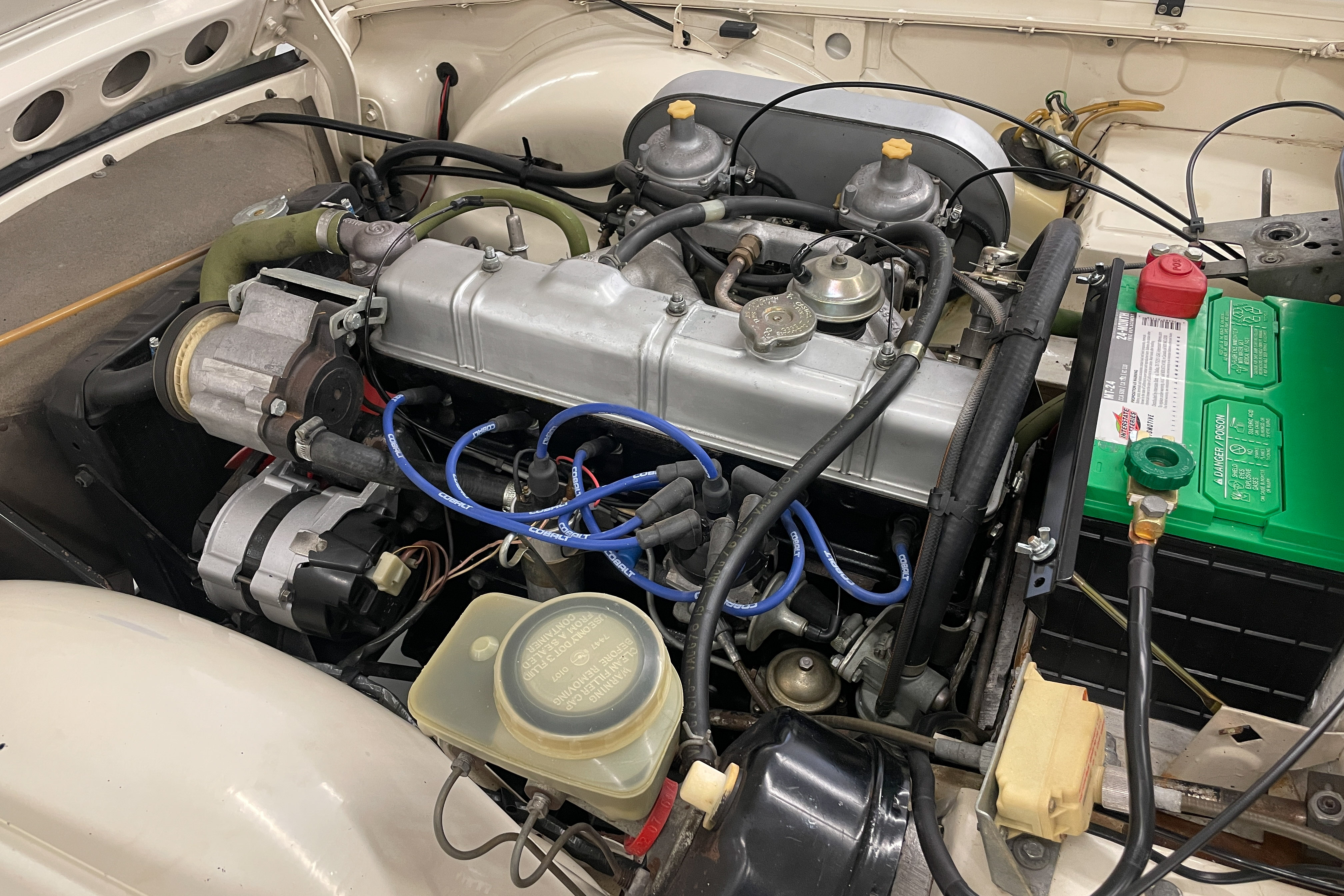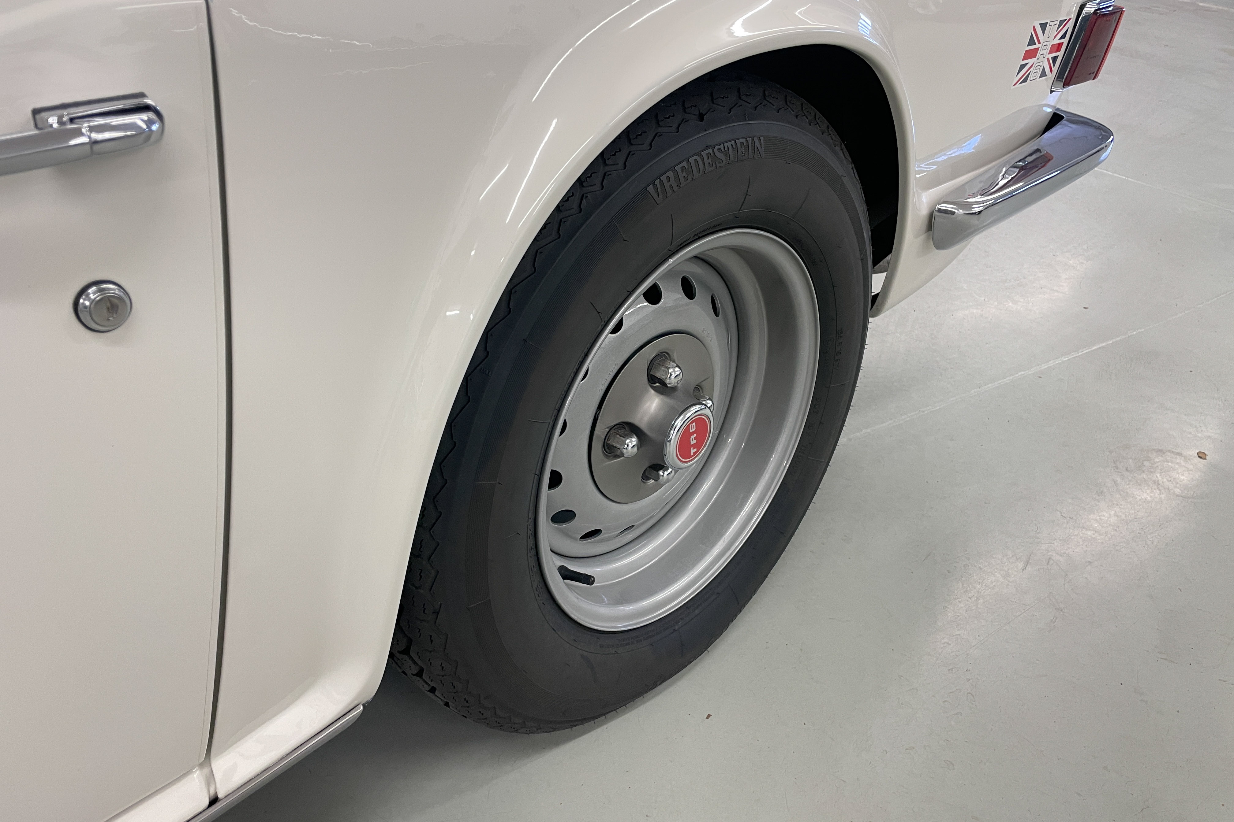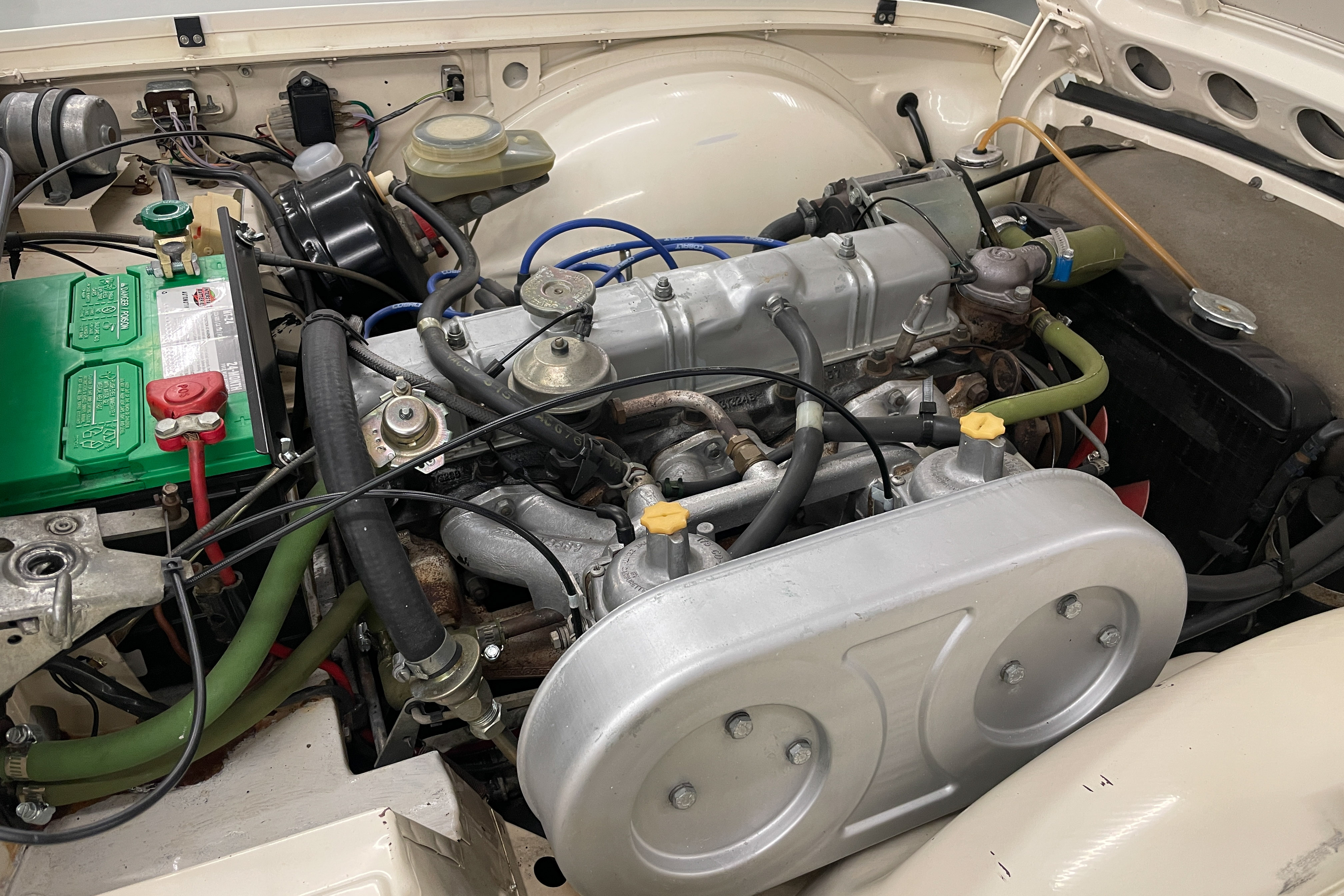 Our shop did a $1300 complete ice blasting treatment on the entire underside that revealed absolutely no hidden rust and left the bottom as clean as the body and got rid of all those years’ accumulated dirt and old grease. It has an upgraded Petronix ignition and spin-on oil filter for reliability and easier maintenance. The engine is tight and quiet and the TR is a delight to drive. We are confident you won’t find a nicer one—cheaper, yes, but few are nicer.
