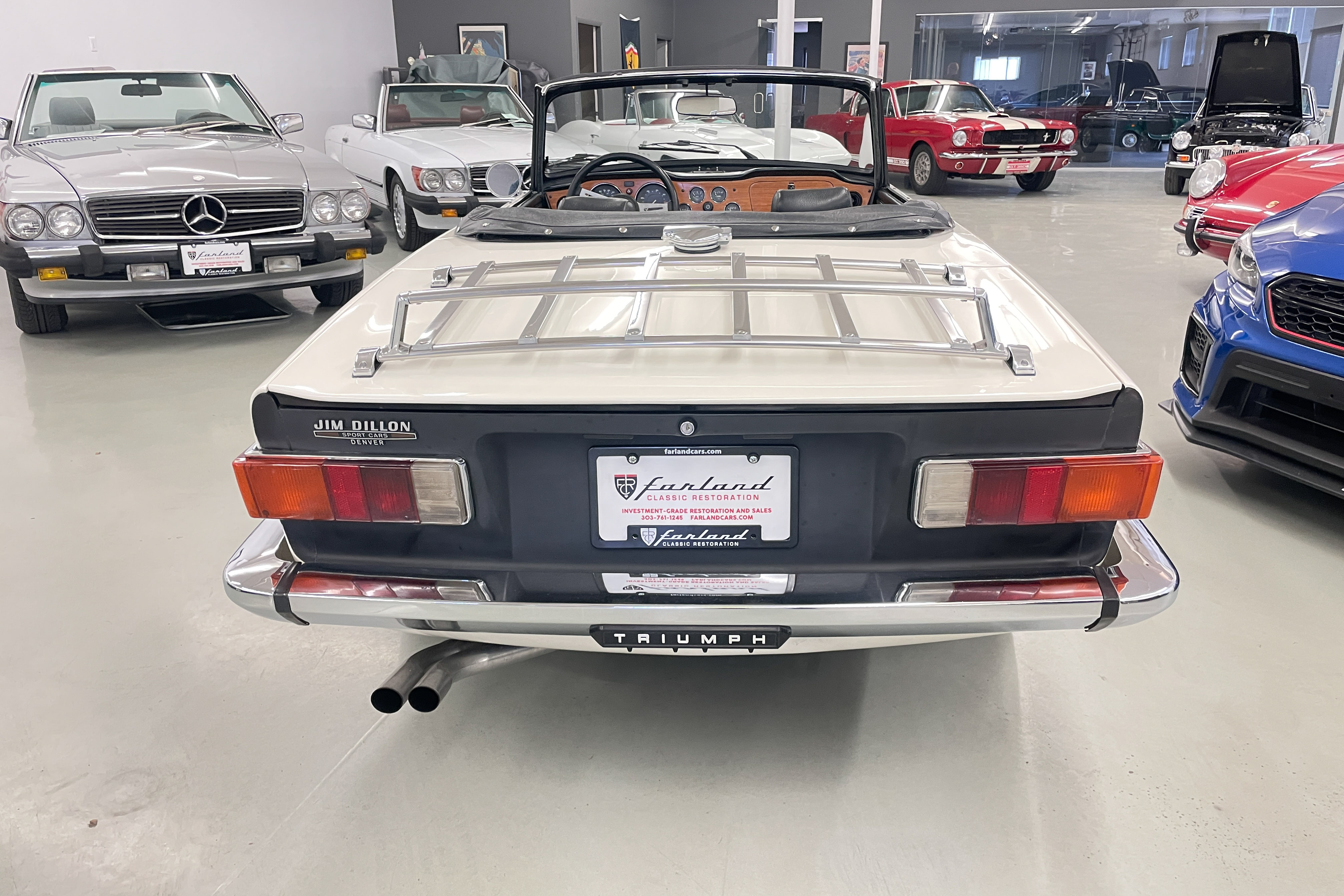 Sharp-eyed TR6 buffs will ask where the wheel trim rings, rubber bumper overriders and sun visors are. All those plus some extras are boxed and will come with the car. It has a matching tonneau cover plus the original jack & spare wheel, extra keys and a file of past records. Even here in Colorado we’re seeing temperatures in the 70s already, so driving season is upon us, and finding an all-done fun sports car for under $30K is very hard to do!