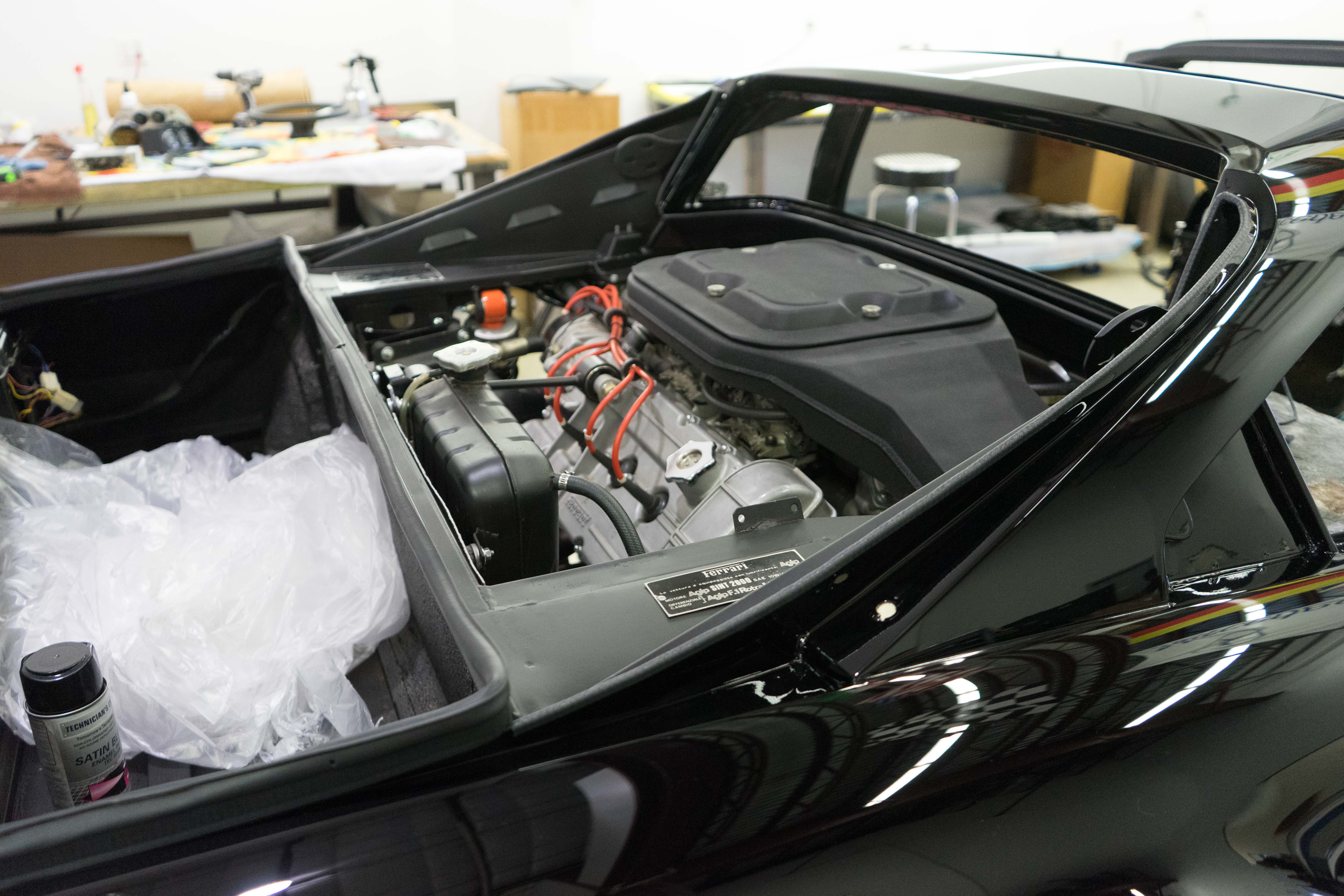 This is the last year of the carbureted 308s, with performance roughly equivalent to the later QVs. Our technicians completed reassembly after bodywork, paint, and a serious amount of metal work. Much of which was repairing some old issues from previous repairs. We were up against the clock on this one, as we had to get the car on a truck headed for Pebble Beach and the Concorso Italiano 2017. Every bit and piece had to be sourced or refinished. Our techs spent hours and hours getting this assembled in a fraction of the usual time. And of course, getting it done right.