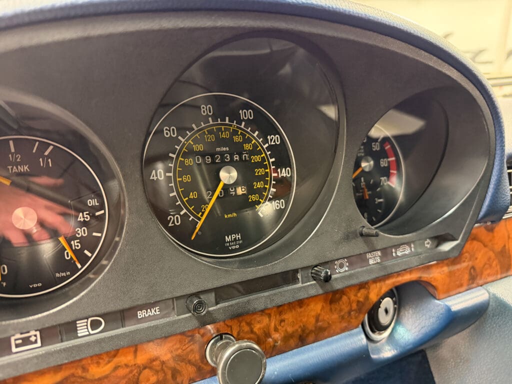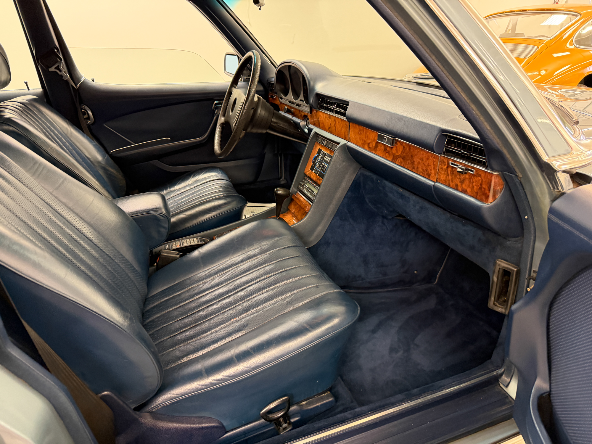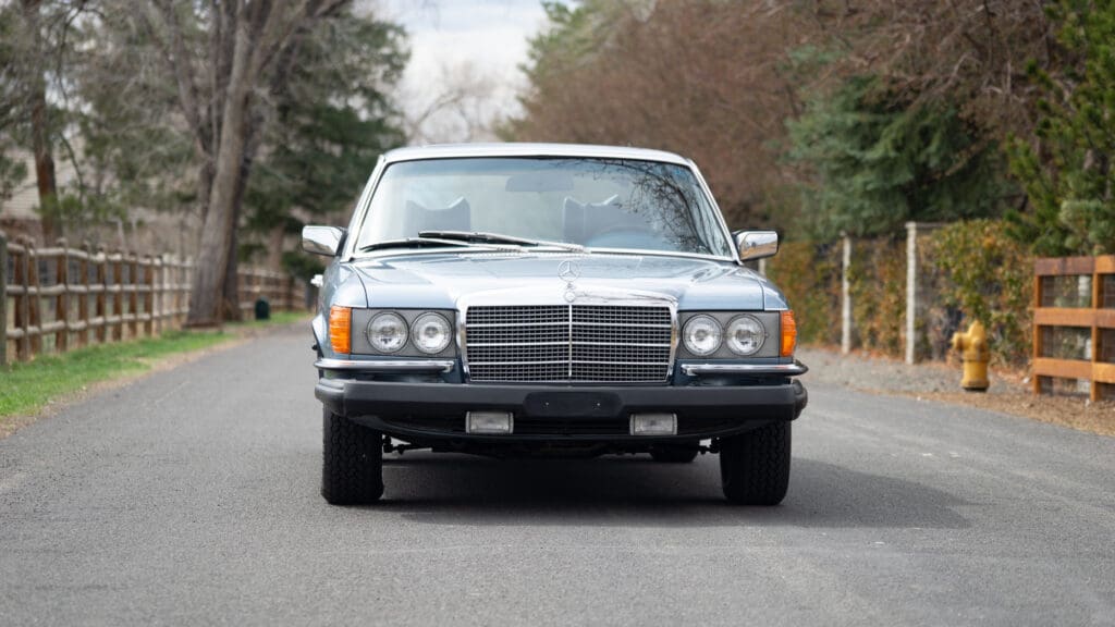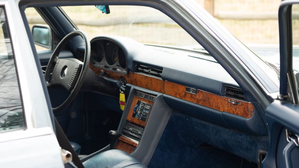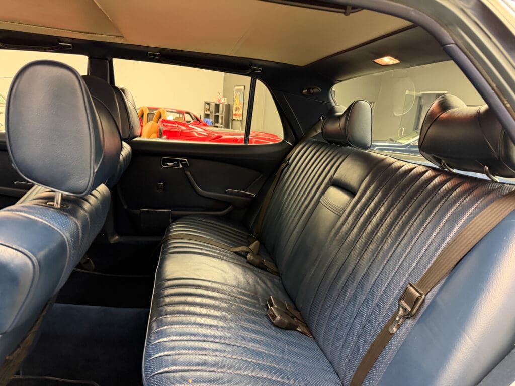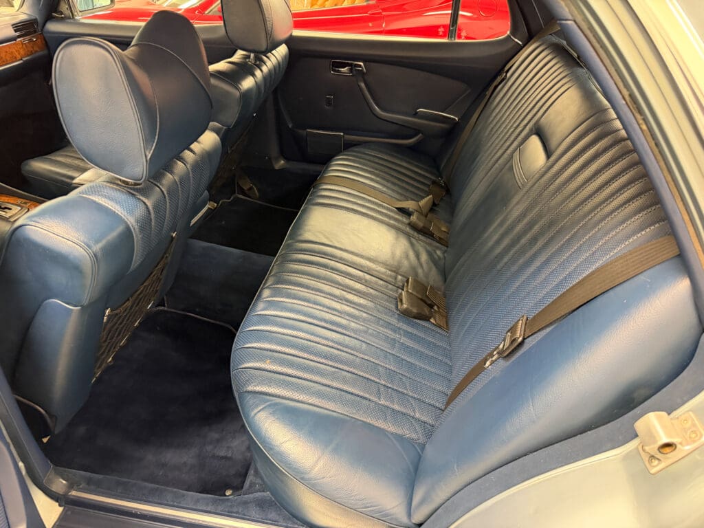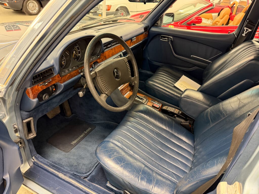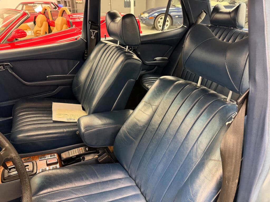 This 1979 example—one of roughly 1,500 brought to the United States—shows just over 92,000 miles, averaging approximately 1,900 miles per year since new. It is finished in elegant Gray Blue Metallic over a rich Navy Blue leather interior, a classic and highly complementary color combination that underscores the car’s stately presence. The cabin retains the hallmark qualities of period Mercedes-Benz craftsmanship, with solid materials, timeless design, and an unmistakable sense of durability.