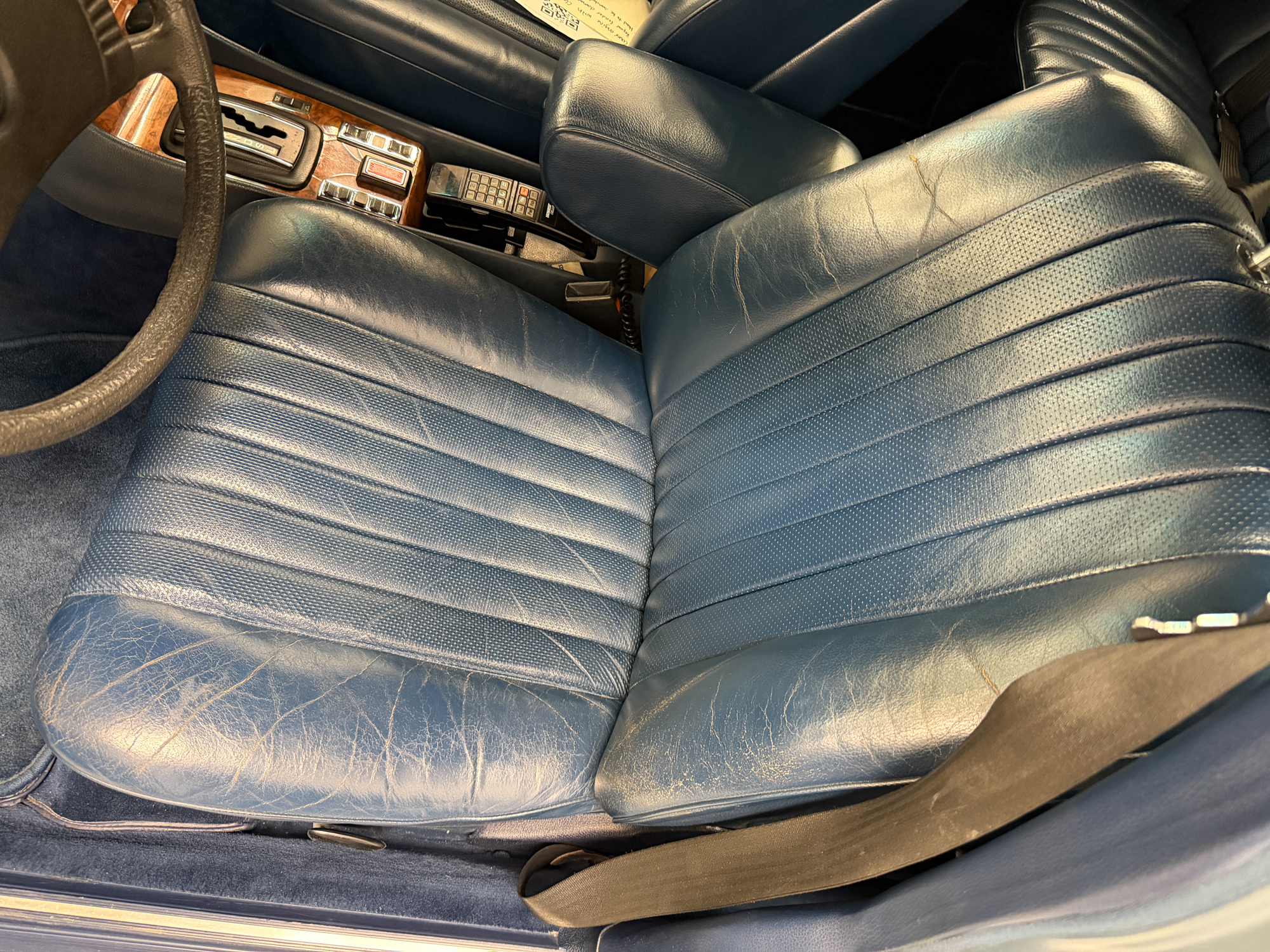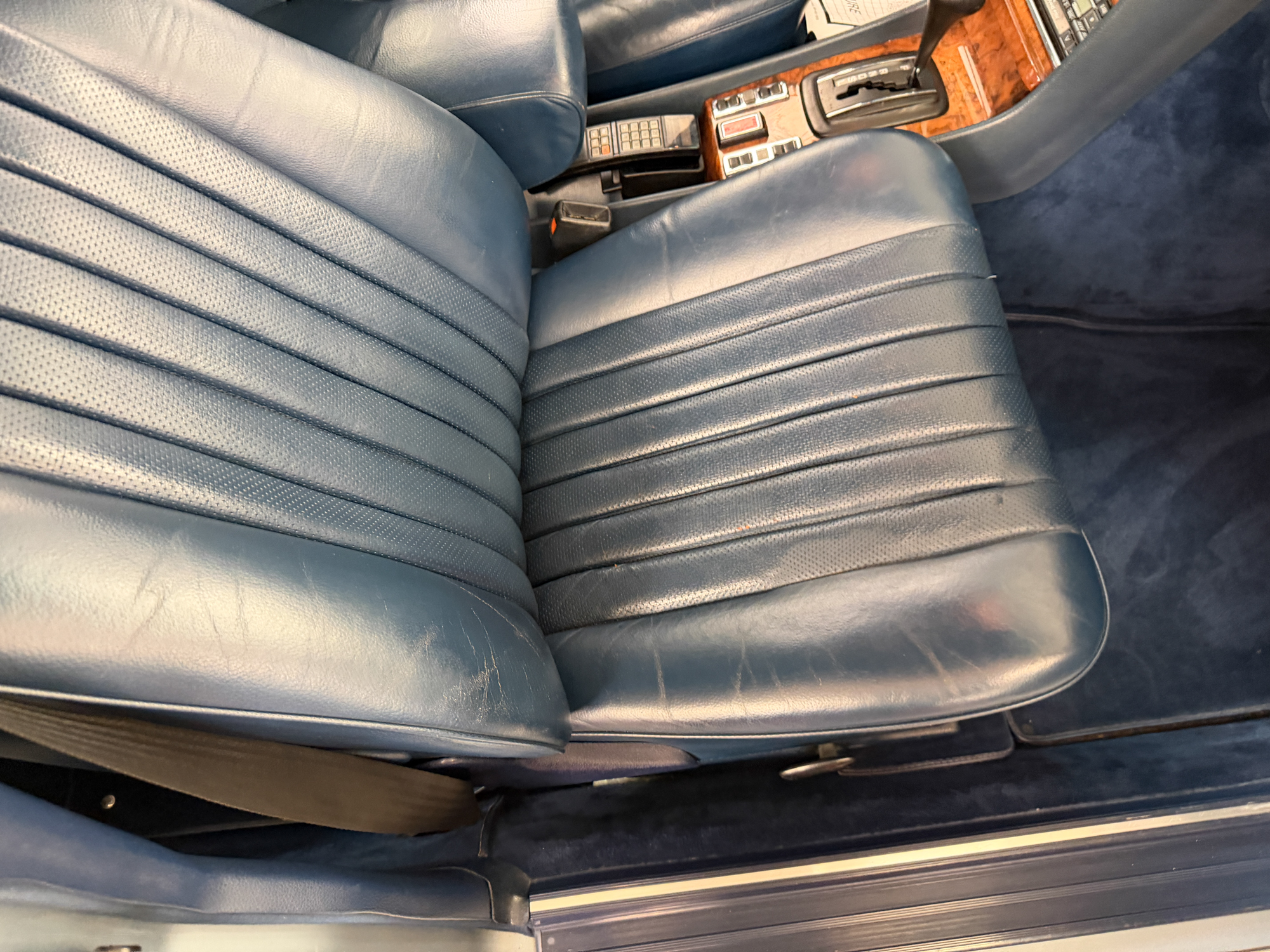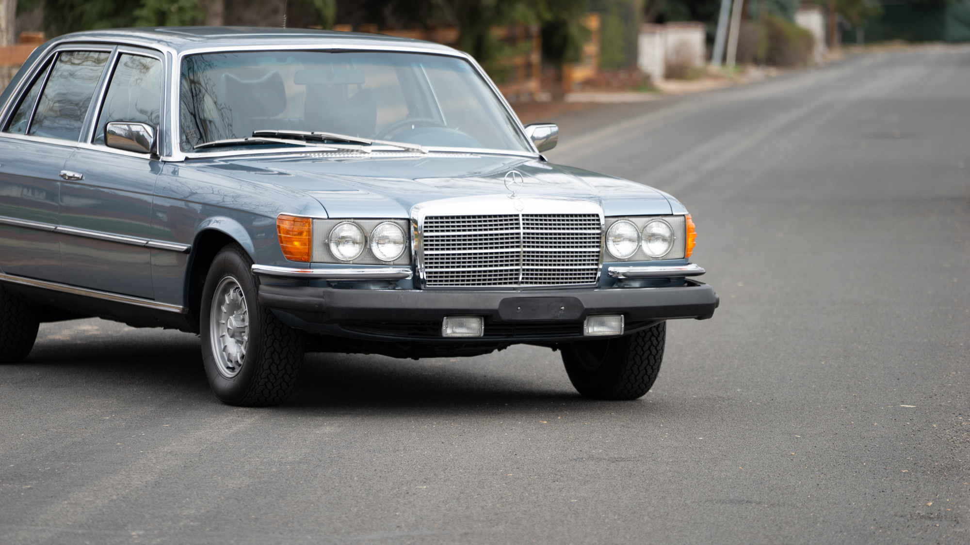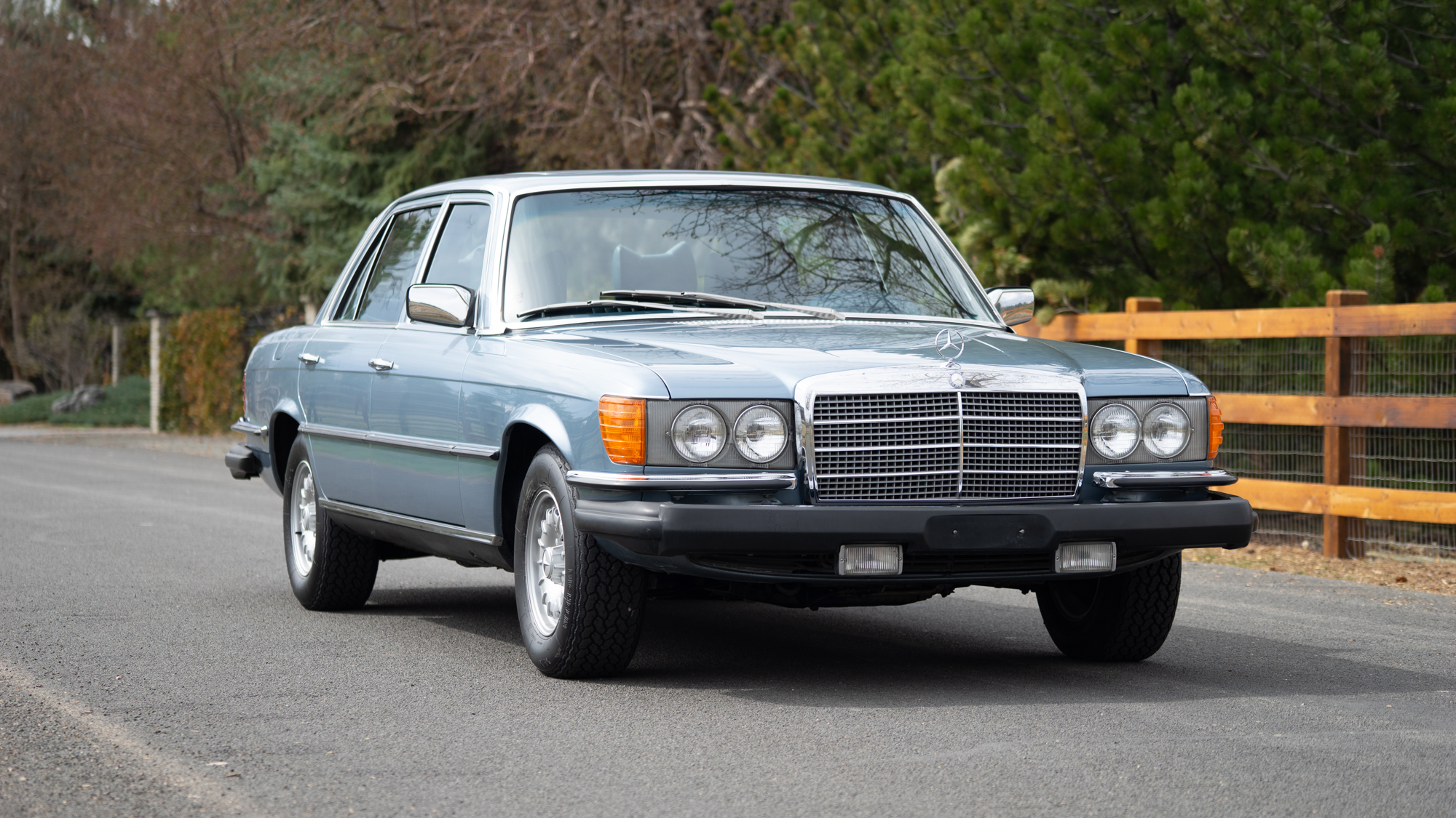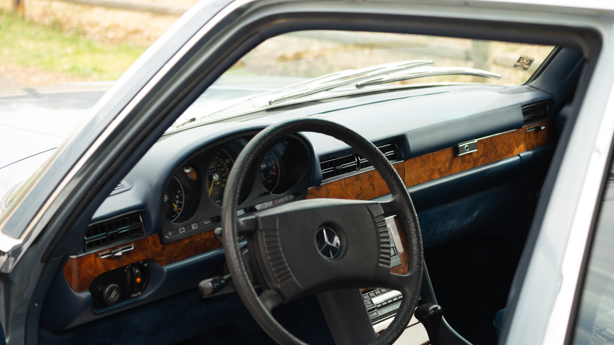 This 1979 example—one of roughly 1,500 brought to the United States—shows just over 92,000 miles, averaging approximately 1,900 miles per year since new. It is finished in elegant Gray Blue Metallic over a rich Navy Blue leather interior, a classic and highly complementary color combination that underscores the car’s stately presence. The cabin retains the hallmark qualities of period Mercedes-Benz craftsmanship, with solid materials, timeless design, and an unmistakable sense of durability.