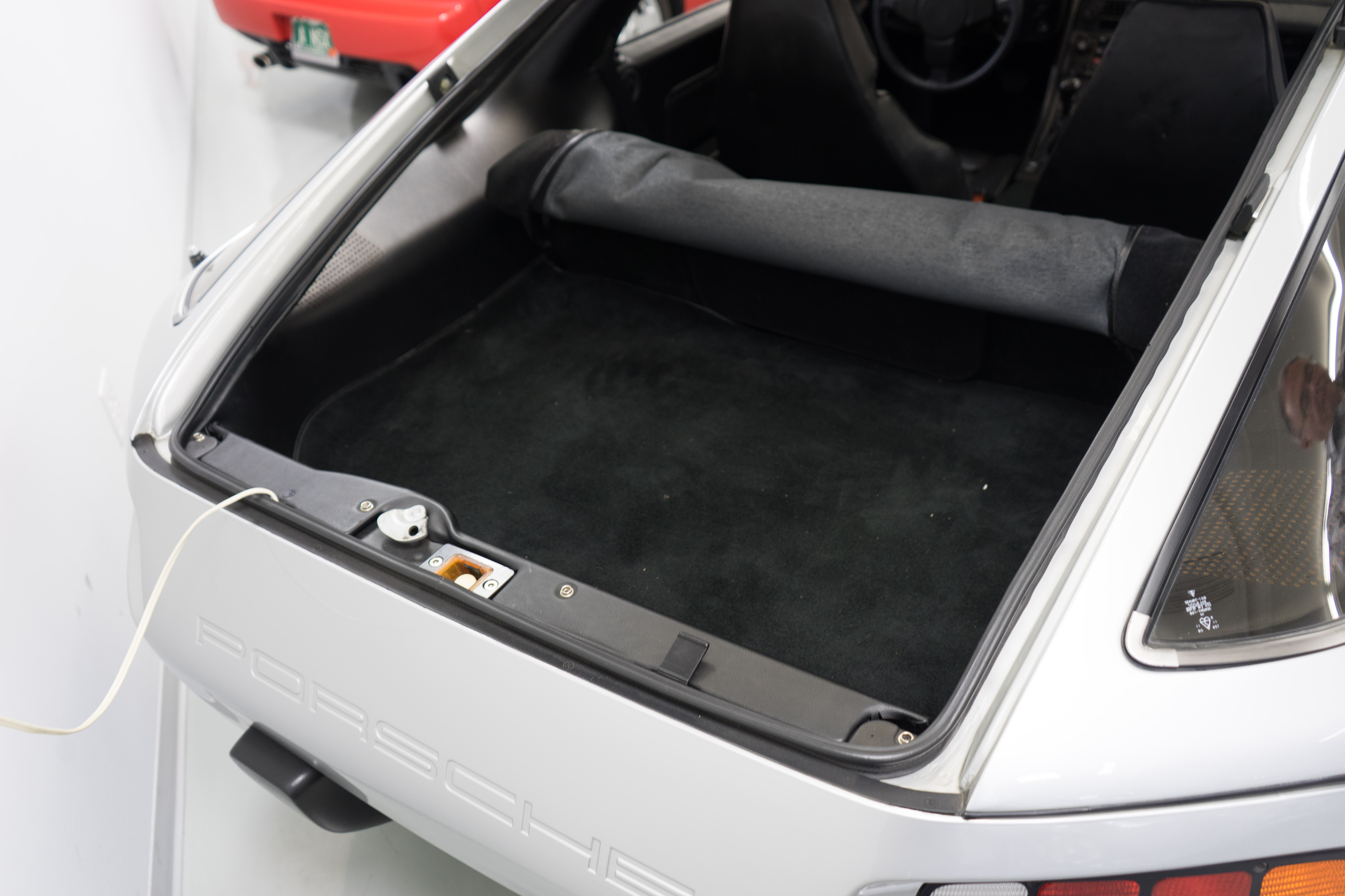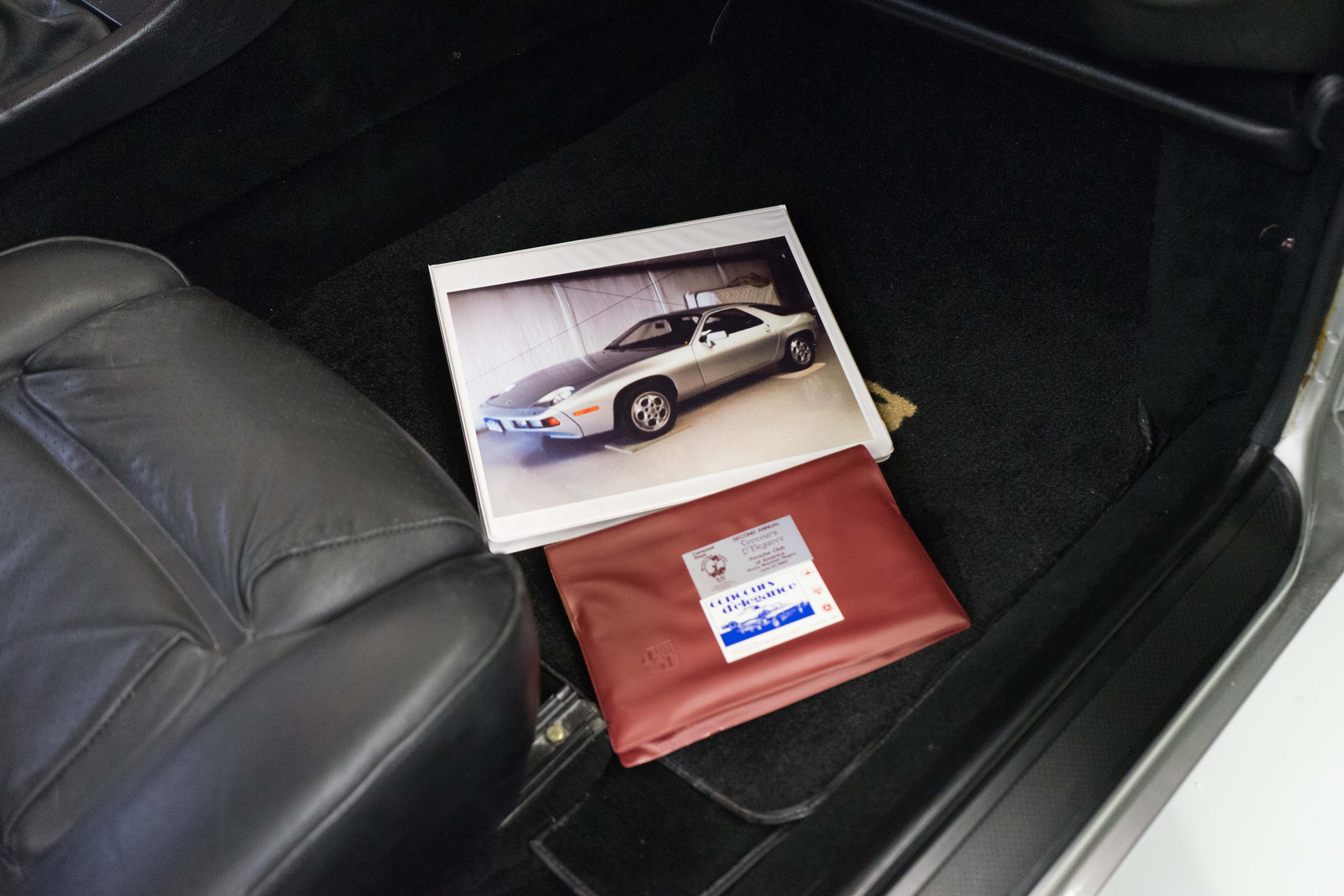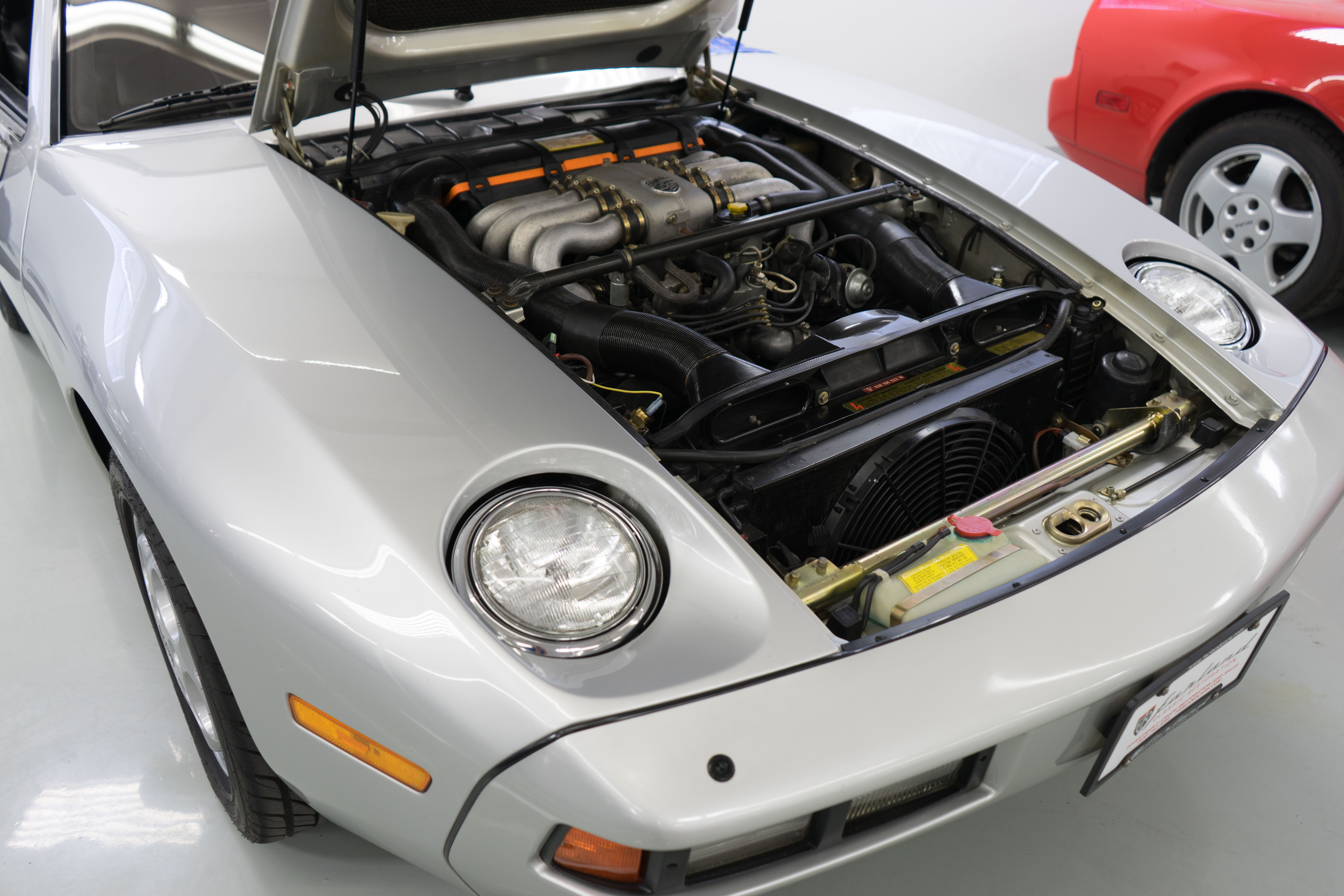 The car was always maintained at the Porsche dealer where it was sold new, but has been cared for by 928 specialty shops in recent years. The A/C has been serviced and performs well, the cooling system has been upgraded to enhance efficiency plus an electric fan has been added. (original parts were retained) A full cam belt service was recently completed. The paint is unbelievable—it looks four years old, not forty!—and has virtually no scratches or chips. The wheels were professionally refinished a few years ago, are unmarked, new tires were installed at the time. Everything works, even the clock (!) plus we have the original packet of owner’s books with dealer servicing stamps & spare key. The full tool kit is in the trunk and looks like new, along with the tire-changing stuff and compressor.