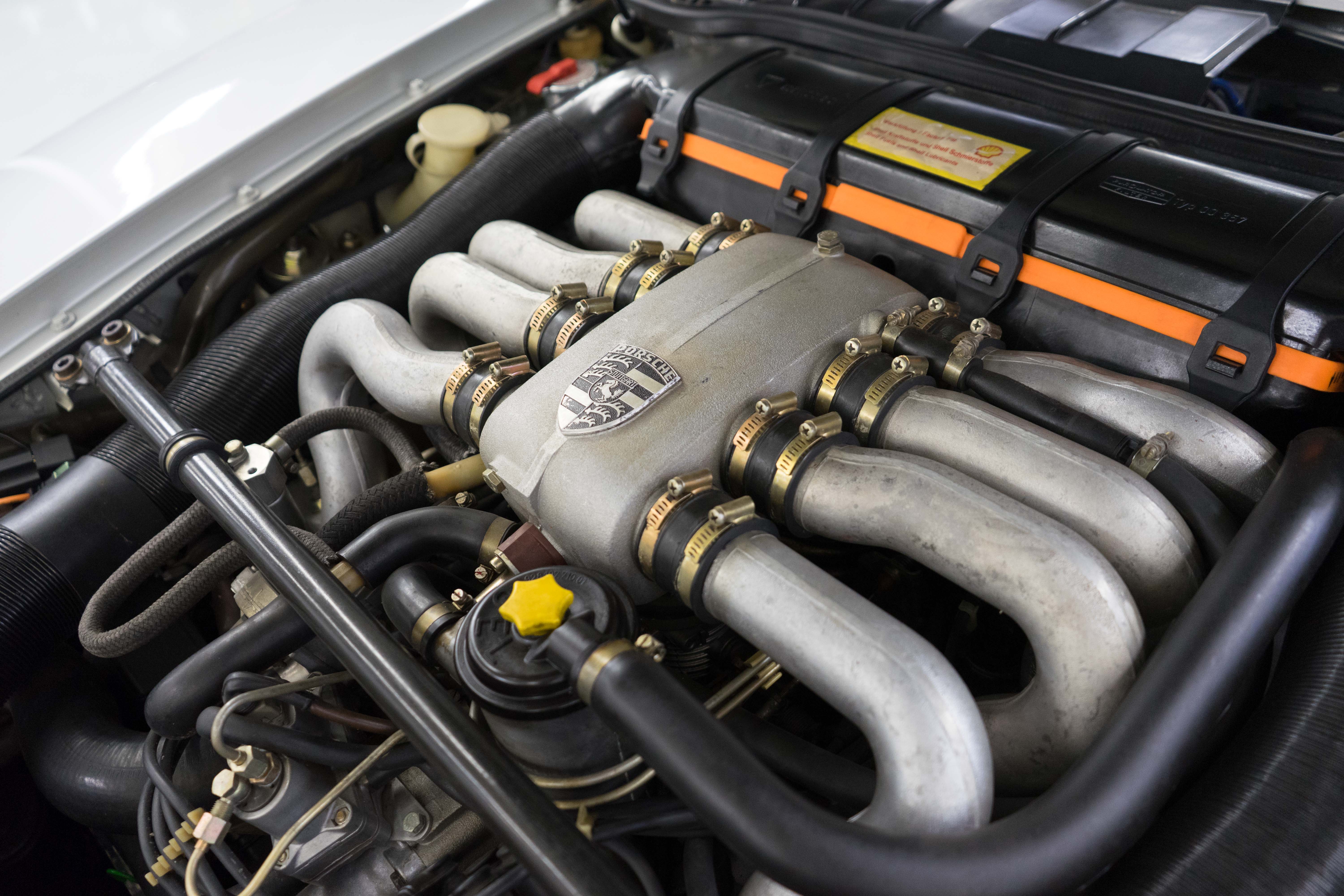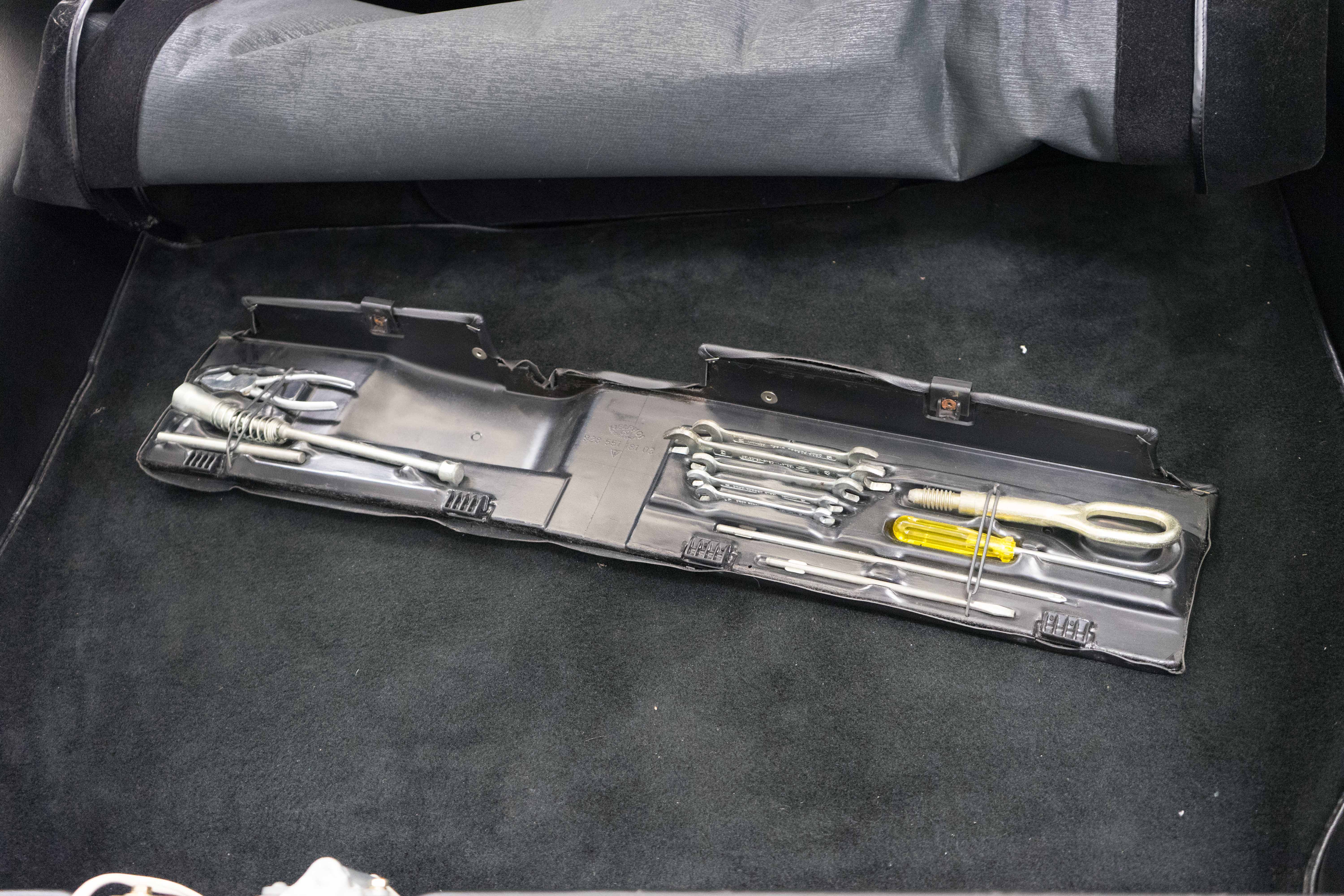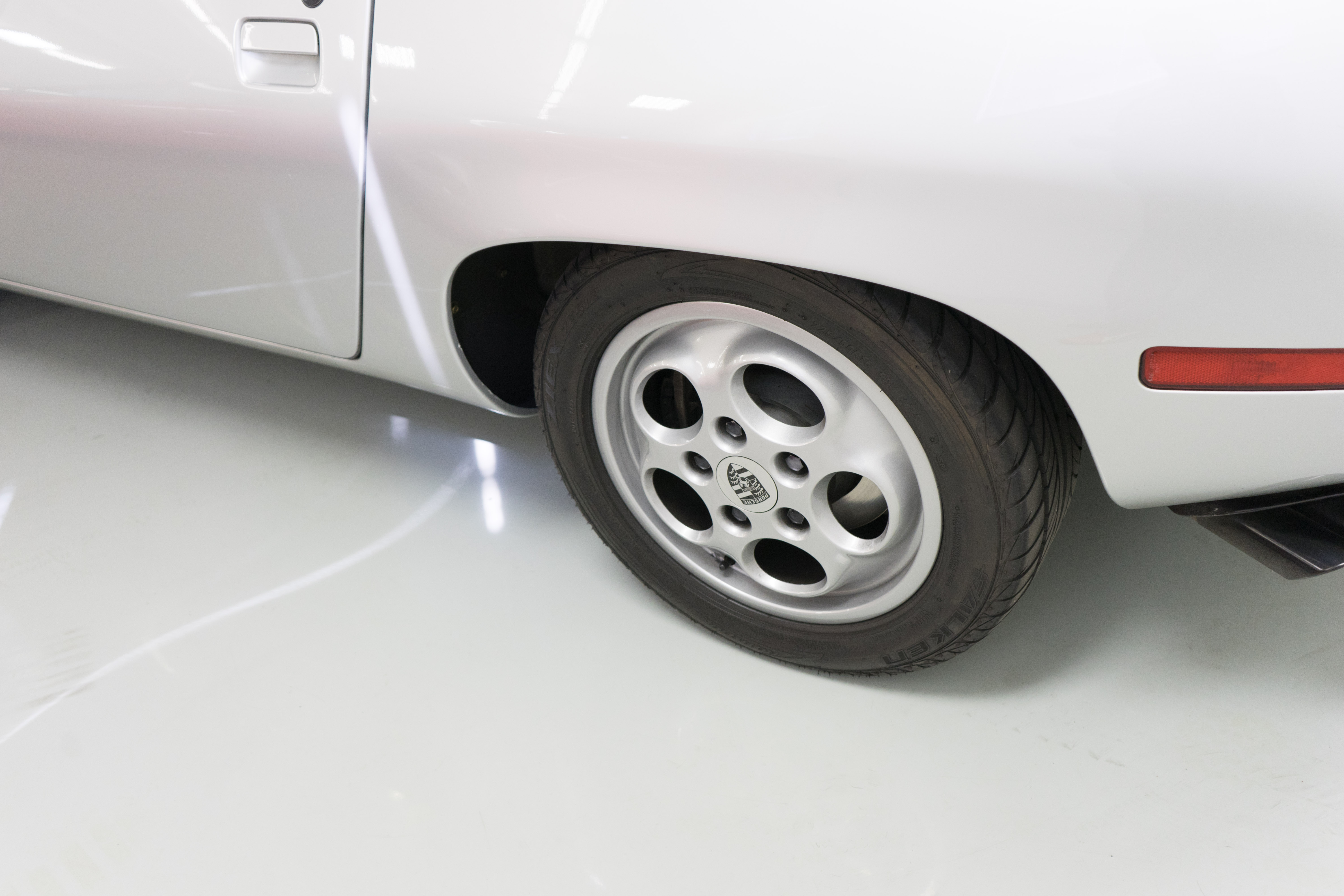 The car was always maintained at the Porsche dealer where it was sold new, but has been cared for by 928 specialty shops in recent years. The A/C has been serviced and performs well, the cooling system has been upgraded to enhance efficiency plus an electric fan has been added. (original parts were retained) A full cam belt service was recently completed. The paint is unbelievable—it looks four years old, not forty!—and has virtually no scratches or chips. The wheels were professionally refinished a few years ago, are unmarked, new tires were installed at the time. Everything works, even the clock (!) plus we have the original packet of owner’s books with dealer servicing stamps & spare key. The full tool kit is in the trunk and looks like new, along with the tire-changing stuff and compressor.