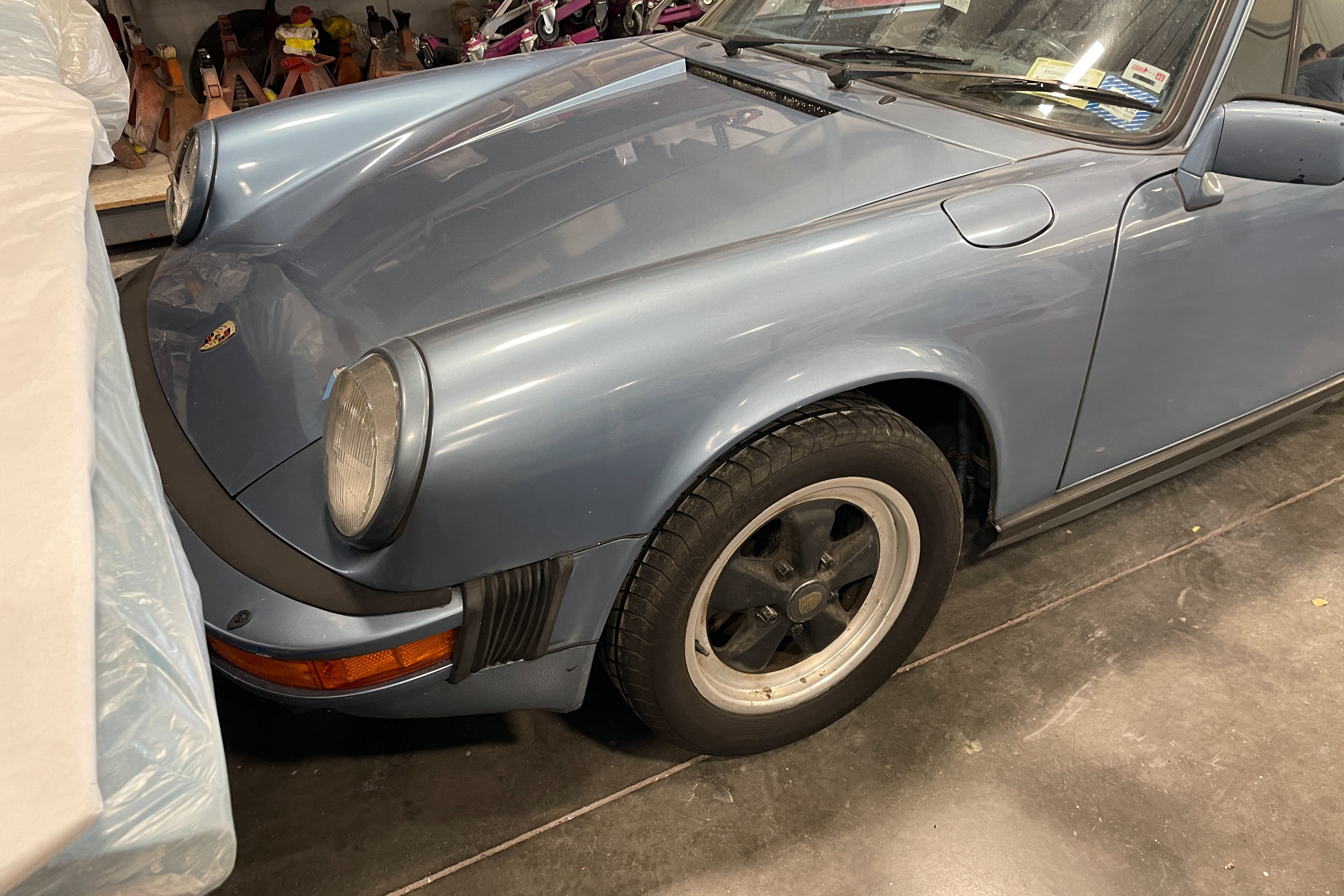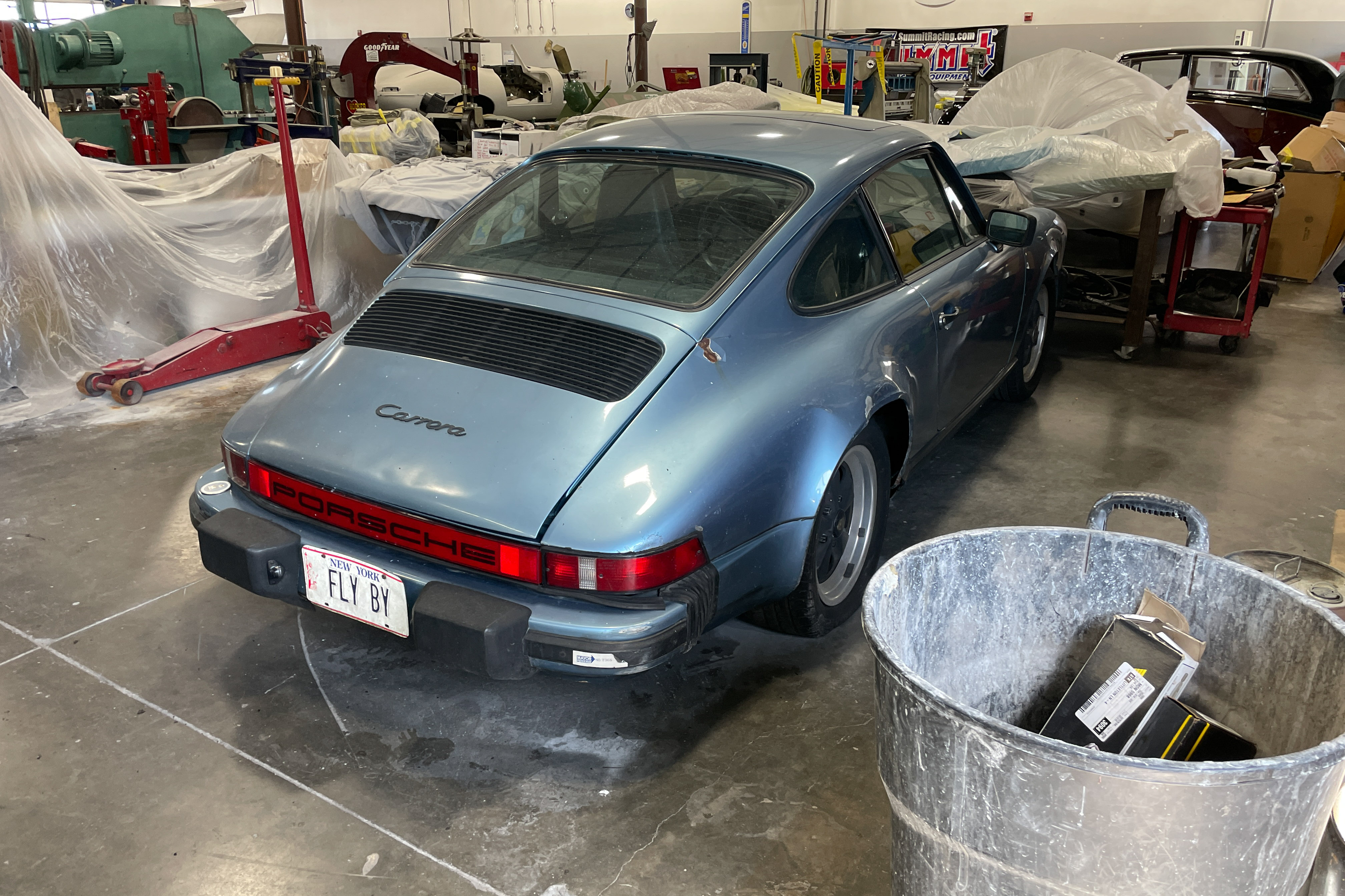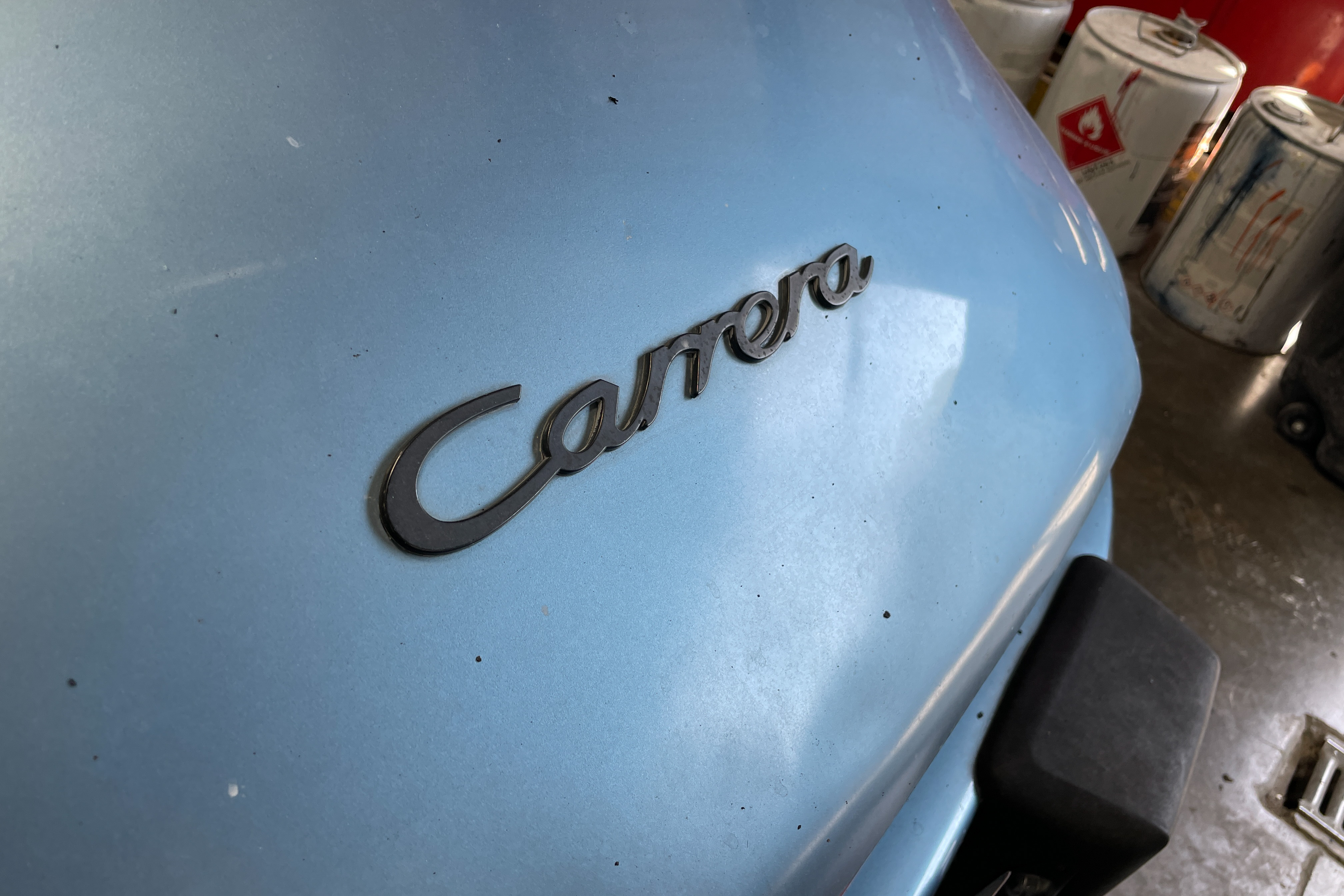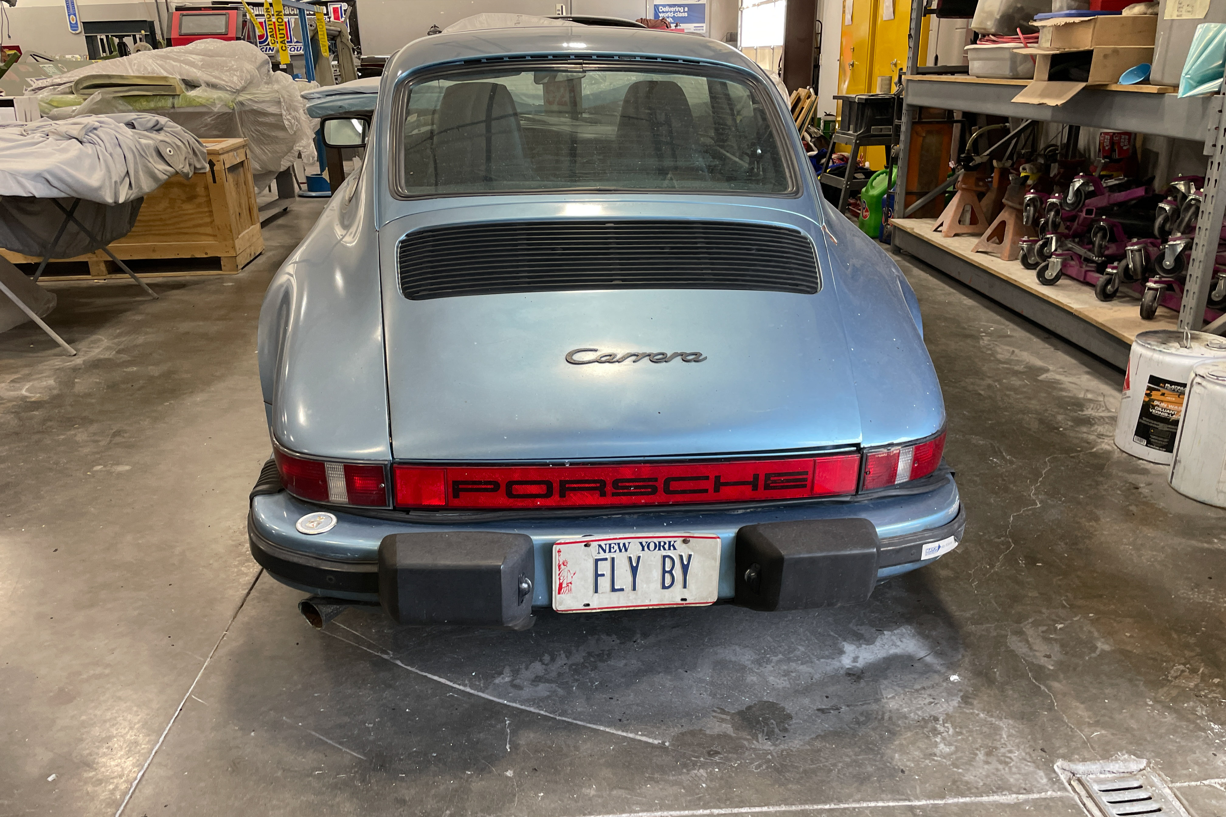 This is a car we are restoring before electric conversion at our partners at Moment Motors. Over the past couple of years, we’ve been stepping into the classic car electric conversion game. Of course, we have our pair of classic 1966 Porsche 912’s, one for a private customer, and one we’re building in the shop as our first electric Porsche conversion. Another example is this single-family owned 1985 Porsche Carrera 3.2. While it wears the badges of a proud owner, the car was caught in a hurricane up in the northeast a few years ago.