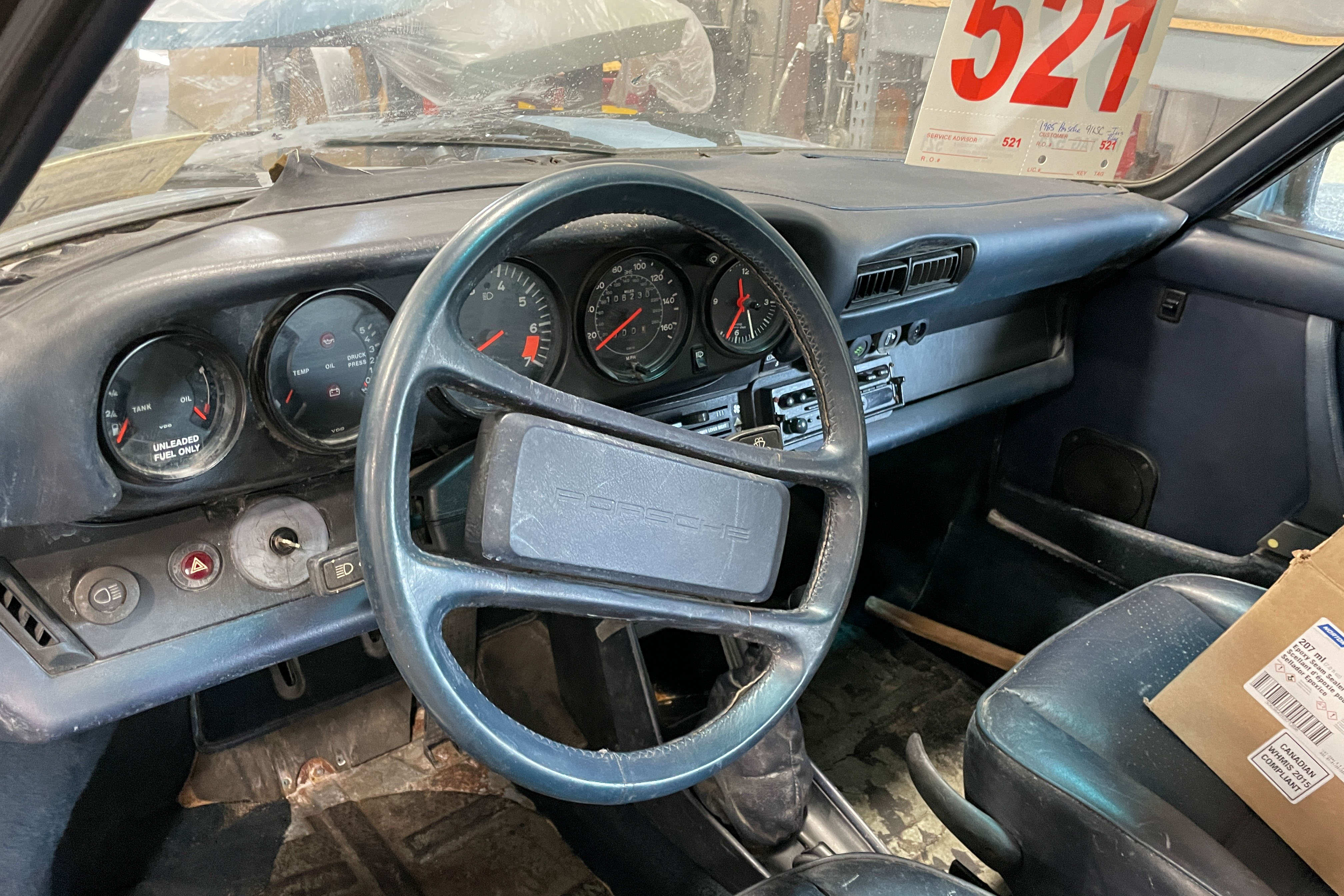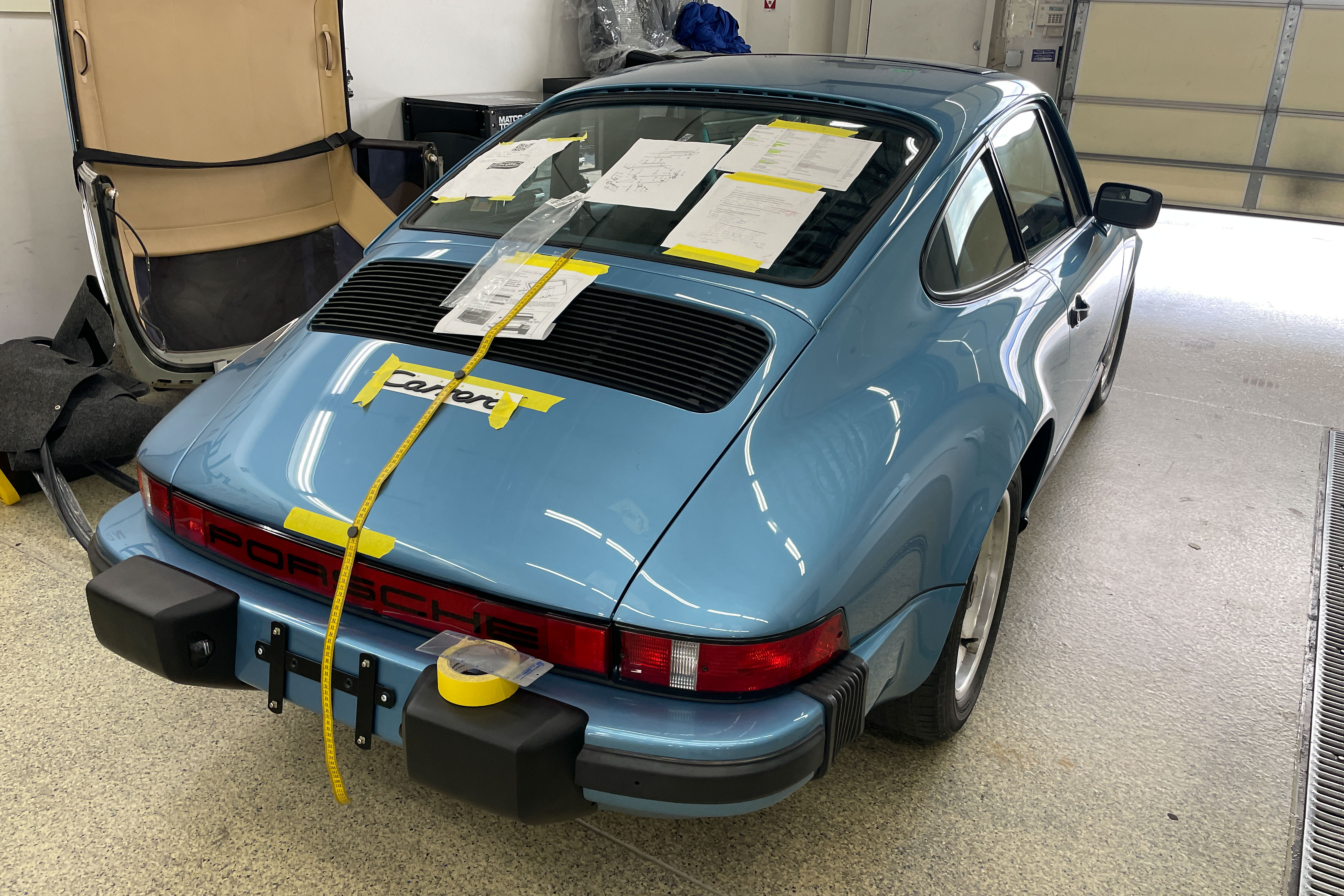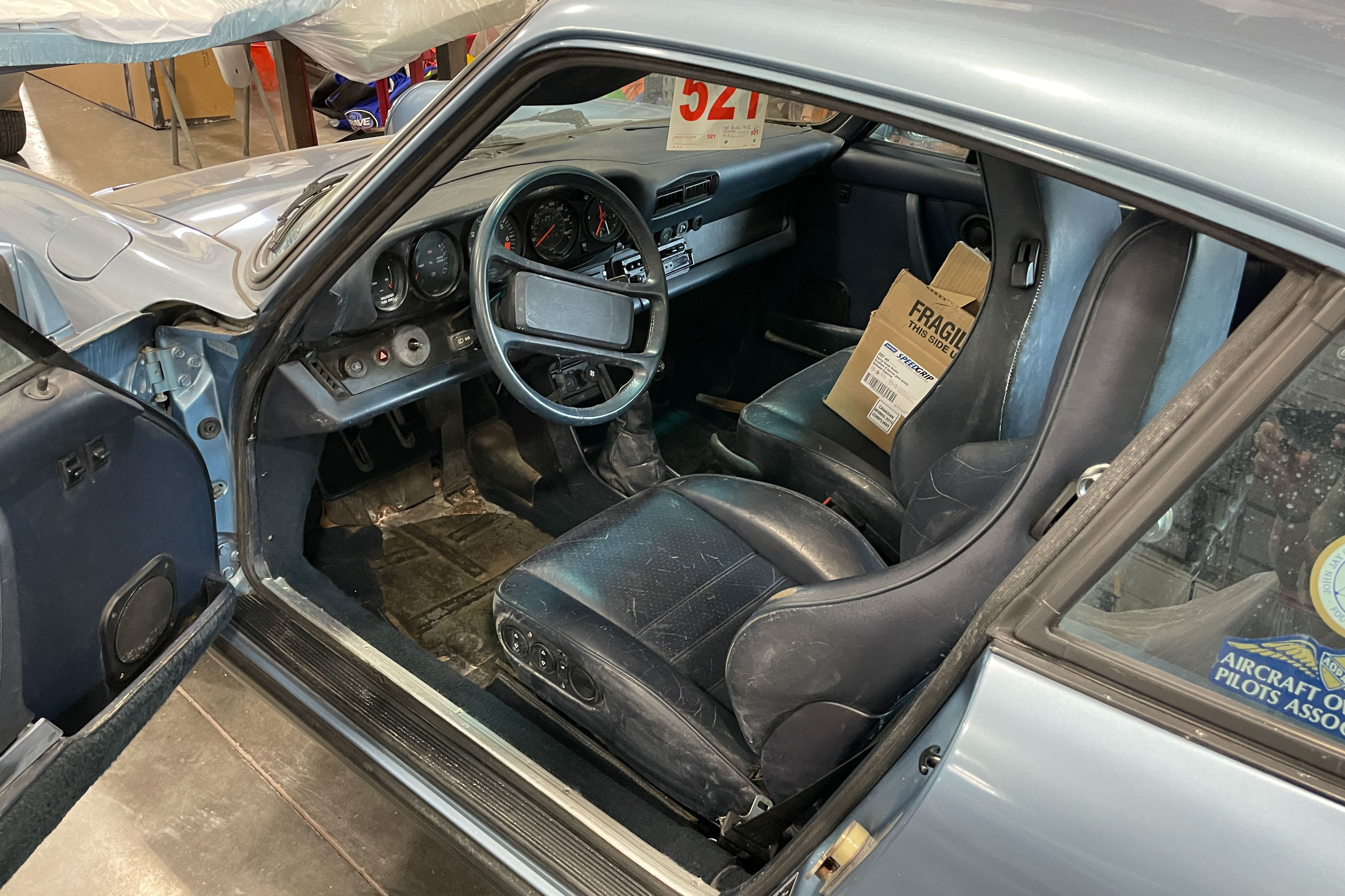 This is a car we are restoring before electric conversion at our partners at Moment Motors. Over the past couple of years, we’ve been stepping into the classic car electric conversion game. Of course, we have our pair of classic 1966 Porsche 912’s, one for a private customer, and one we’re building in the shop as our first electric Porsche conversion. Another example is this single-family owned 1985 Porsche Carrera 3.2. While it wears the badges of a proud owner, the car was caught in a hurricane up in the northeast a few years ago.