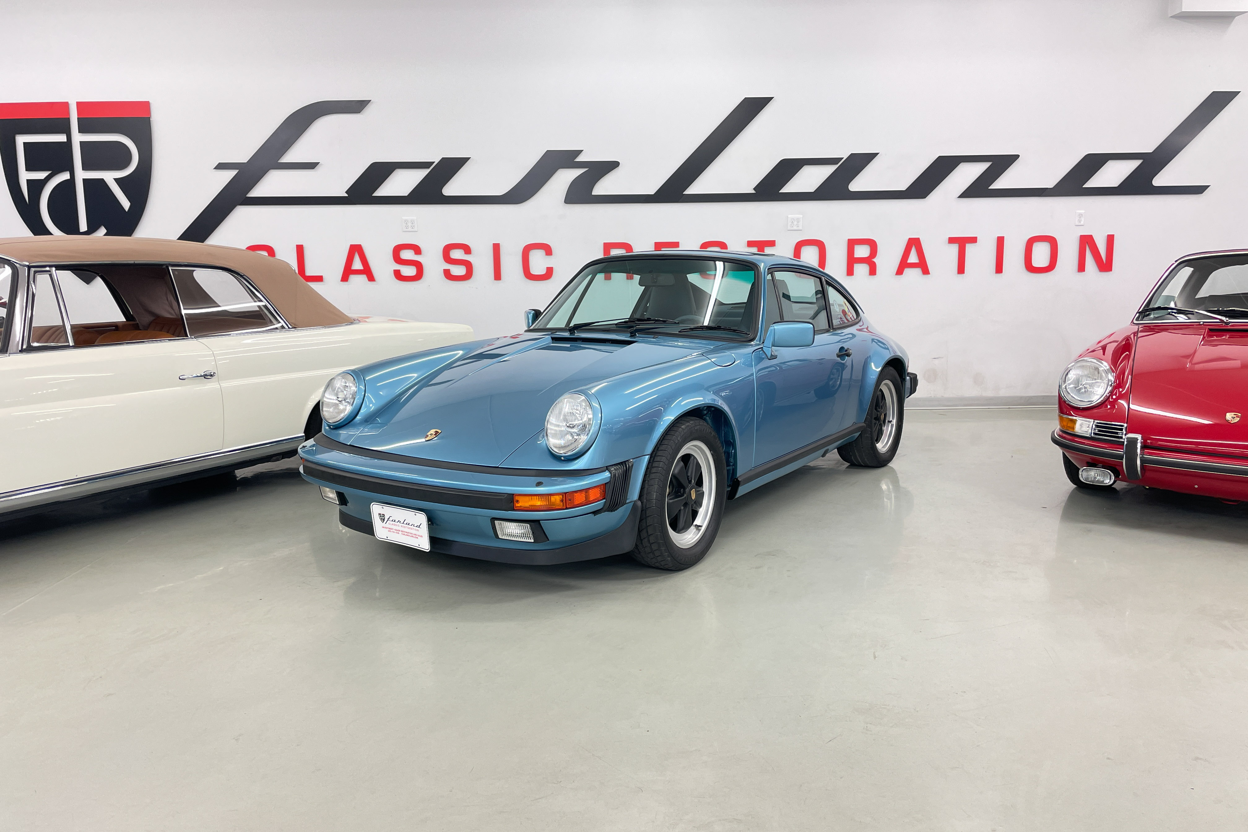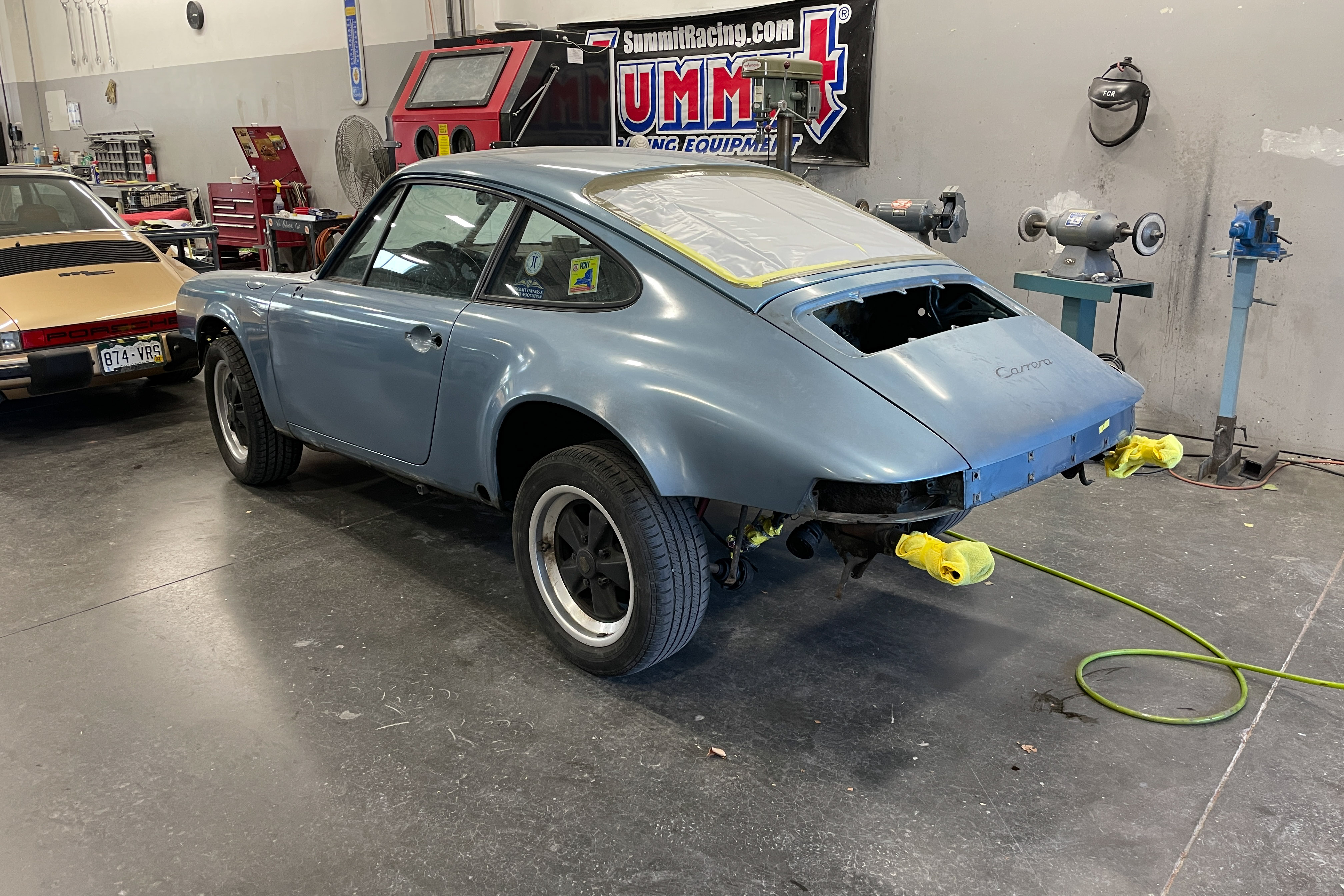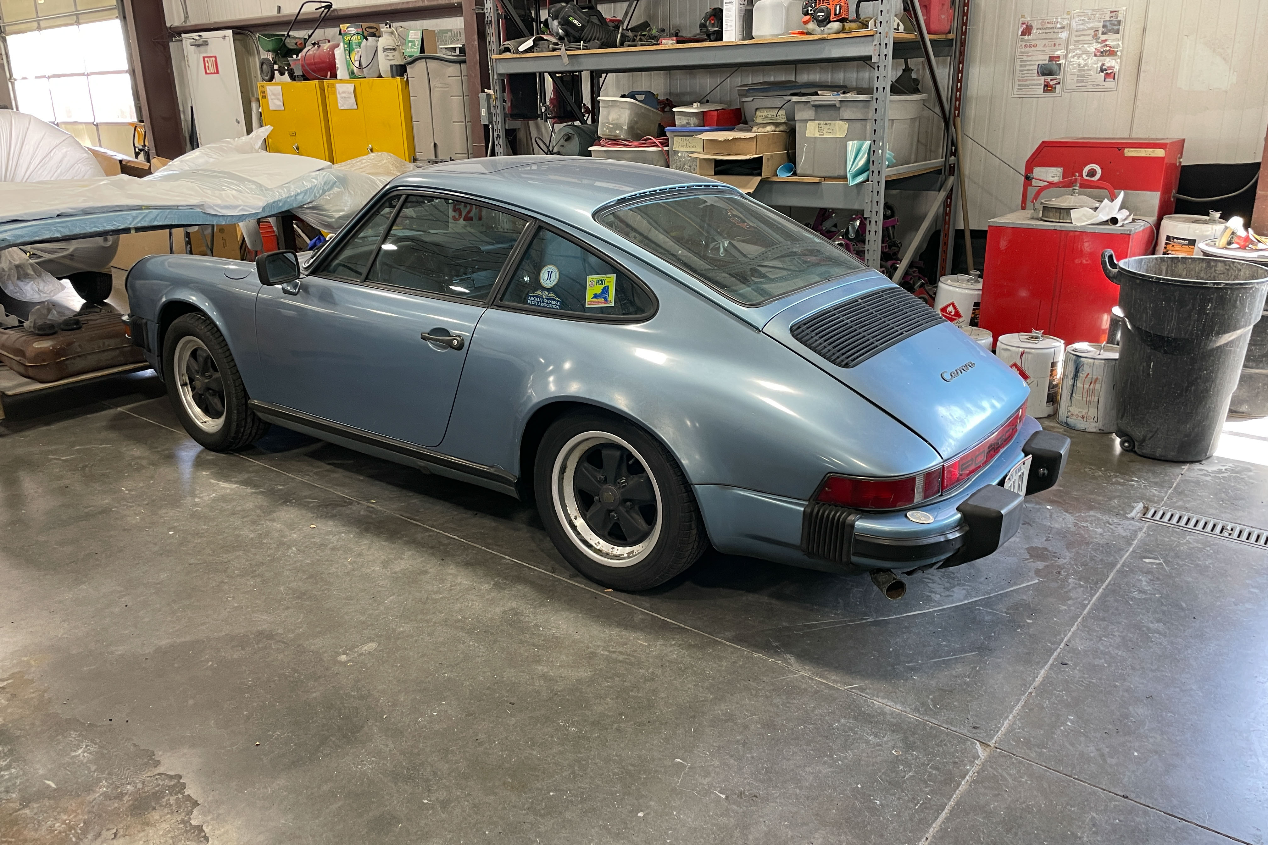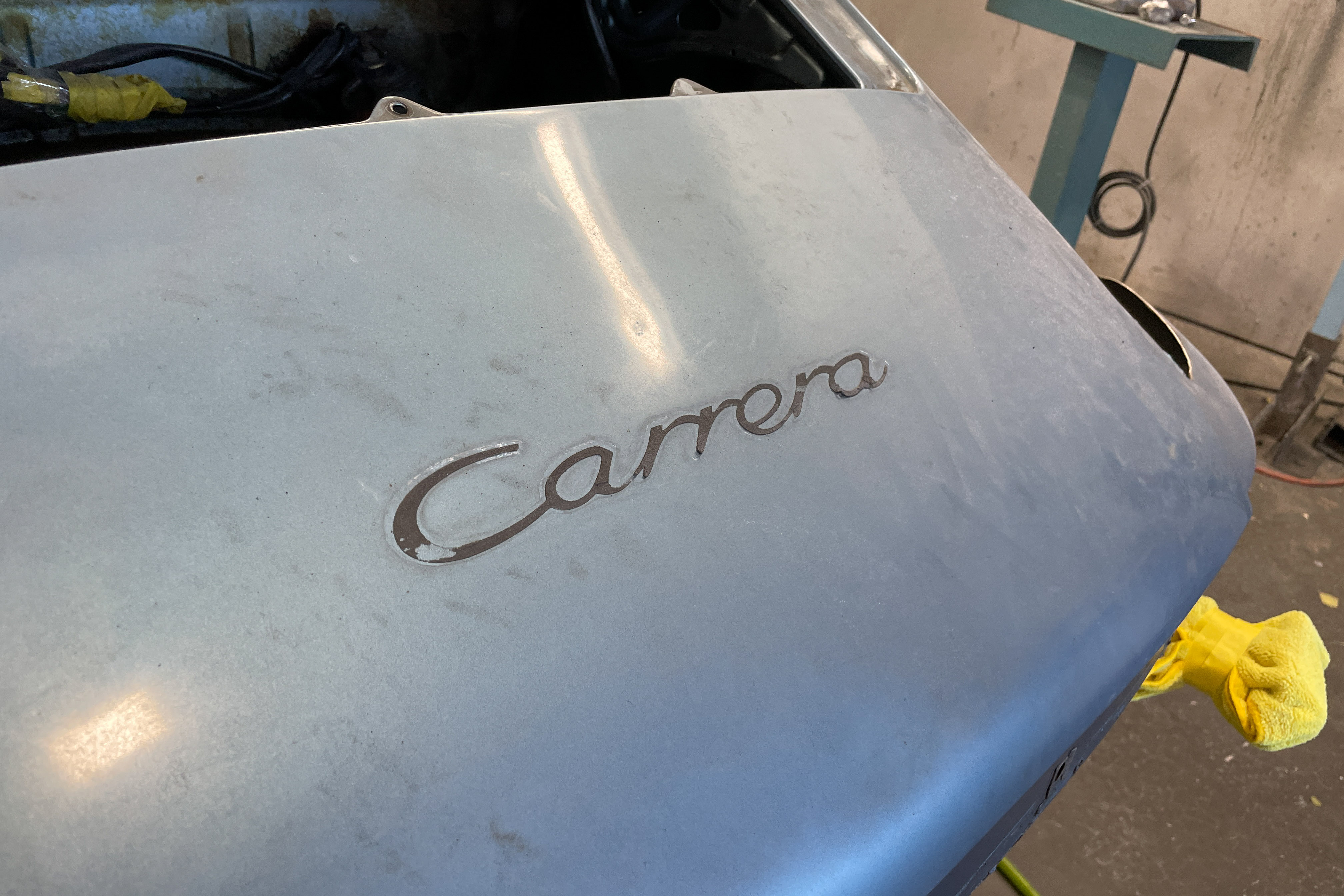 This is a car we are restoring before electric conversion at our partners at Moment Motors. Over the past couple of years, we’ve been stepping into the classic car electric conversion game. Of course, we have our pair of classic 1966 Porsche 912’s, one for a private customer, and one we’re building in the shop as our first electric Porsche conversion. Another example is this single-family owned 1985 Porsche Carrera 3.2. While it wears the badges of a proud owner, the car was caught in a hurricane up in the northeast a few years ago.