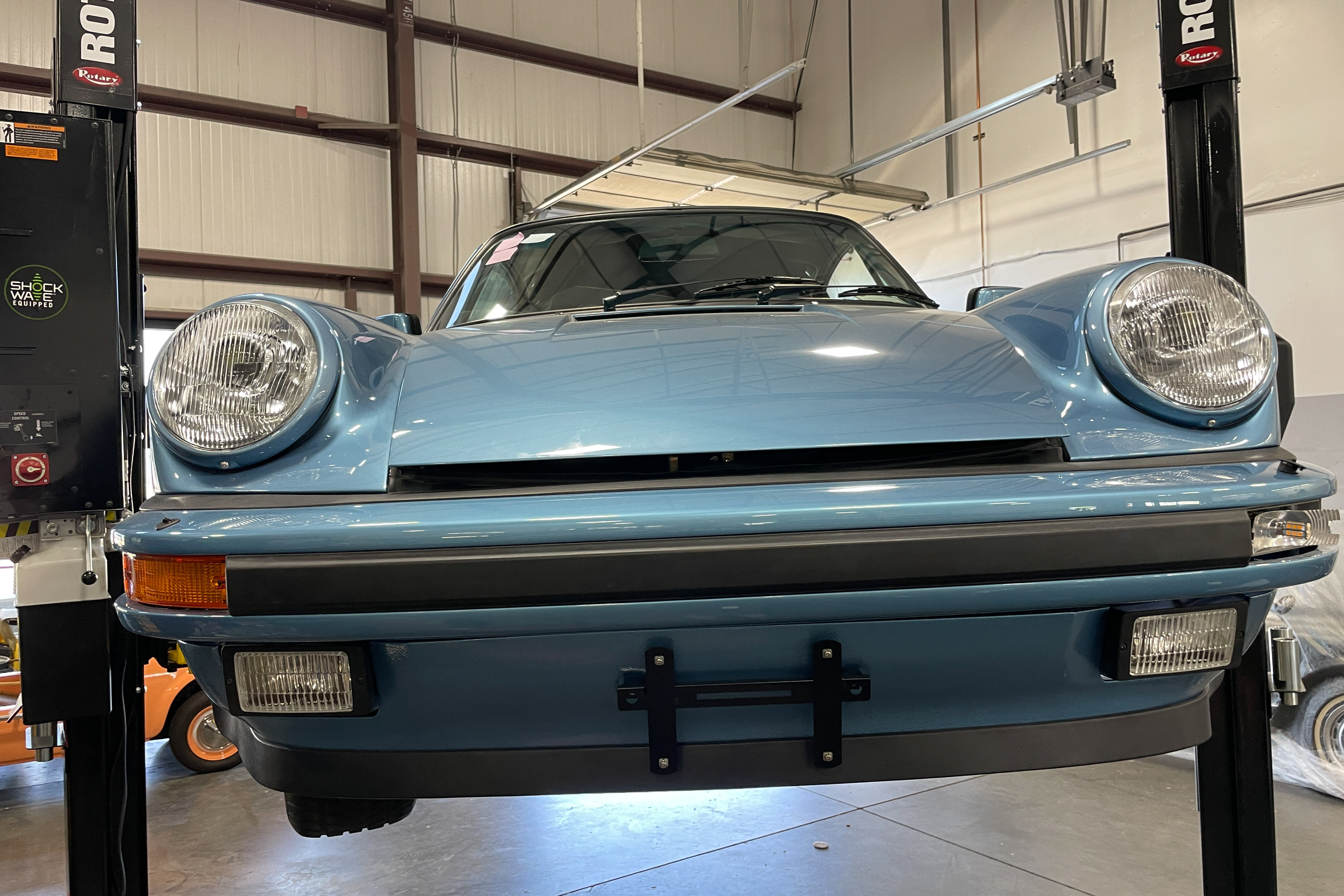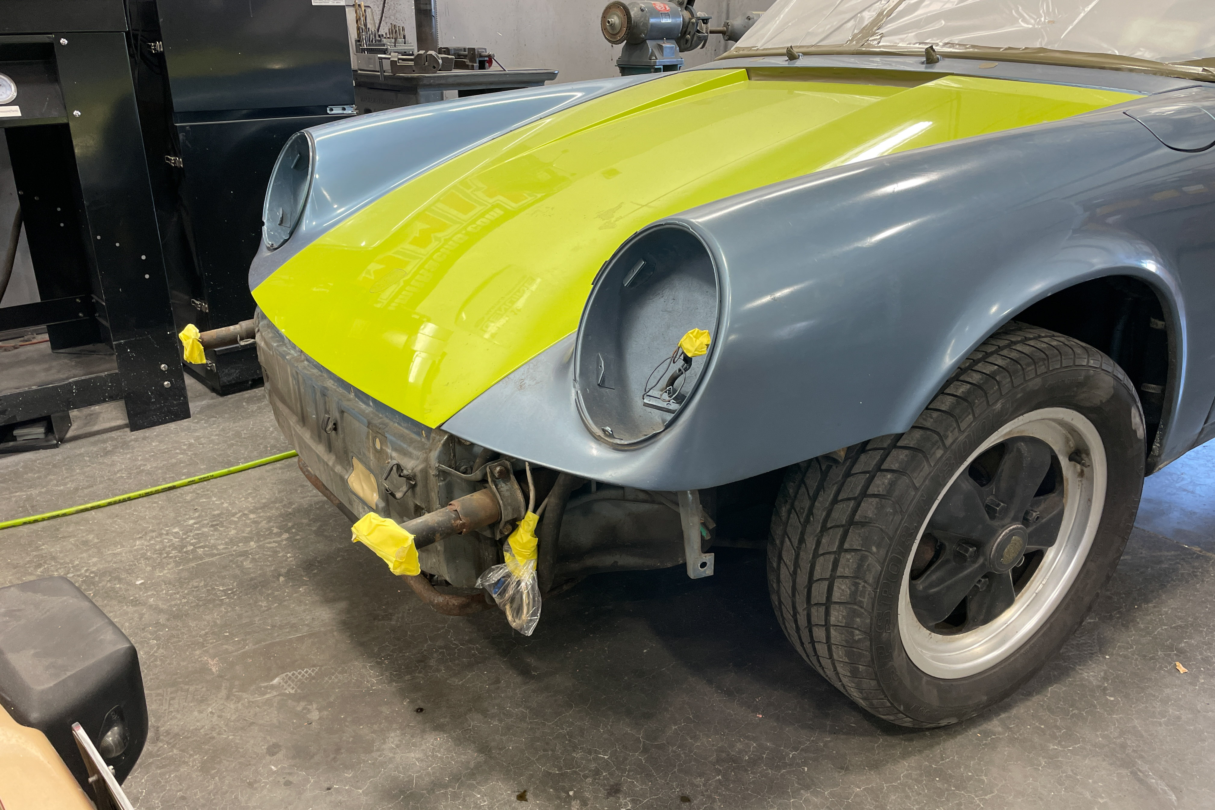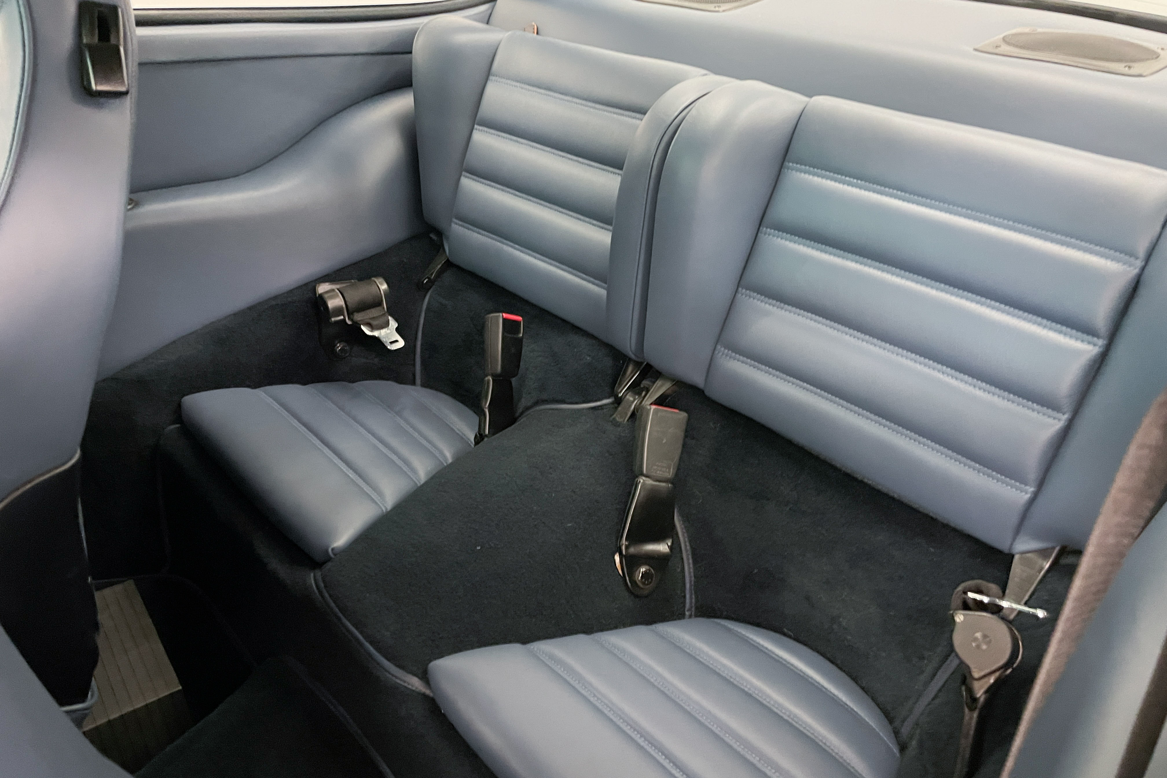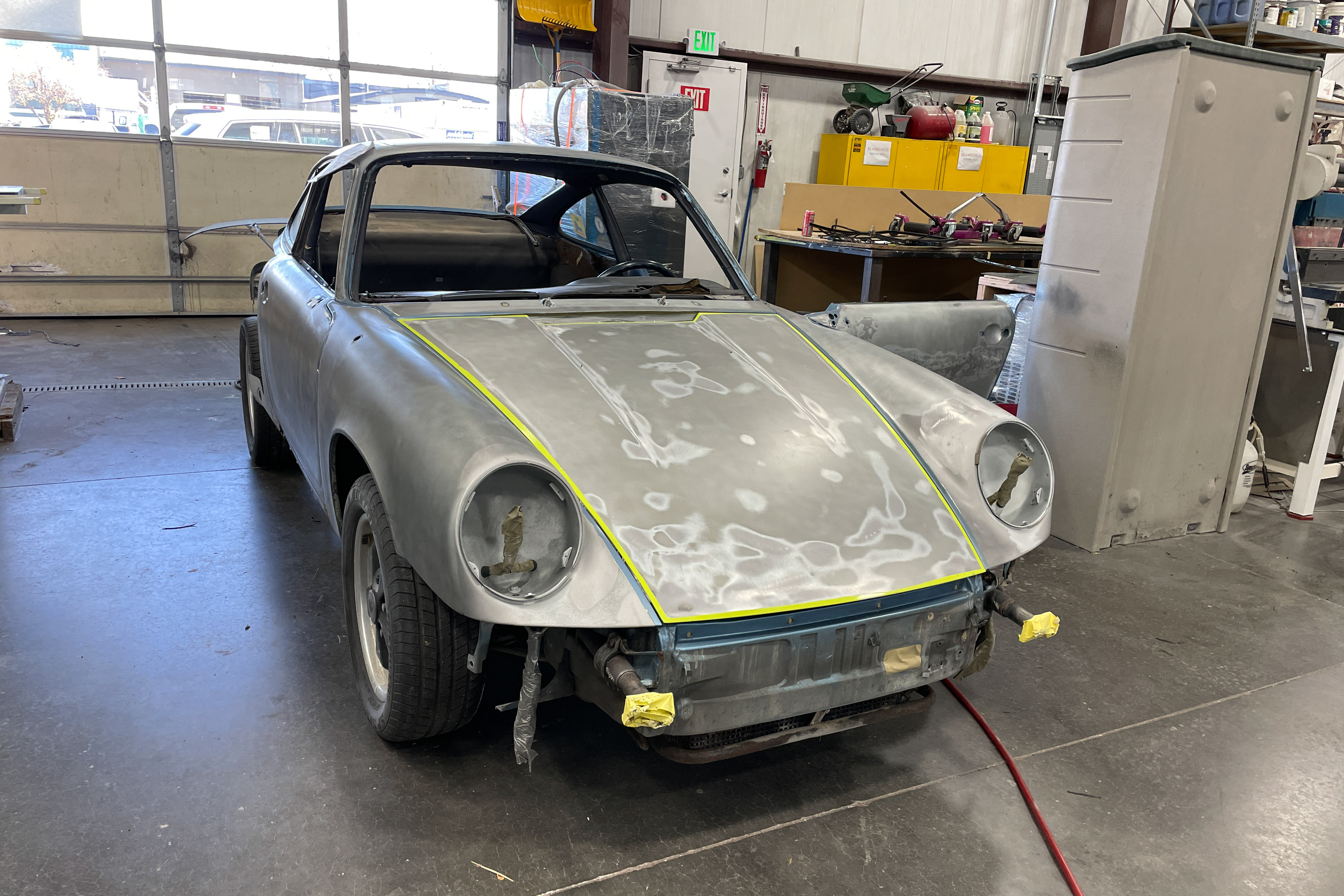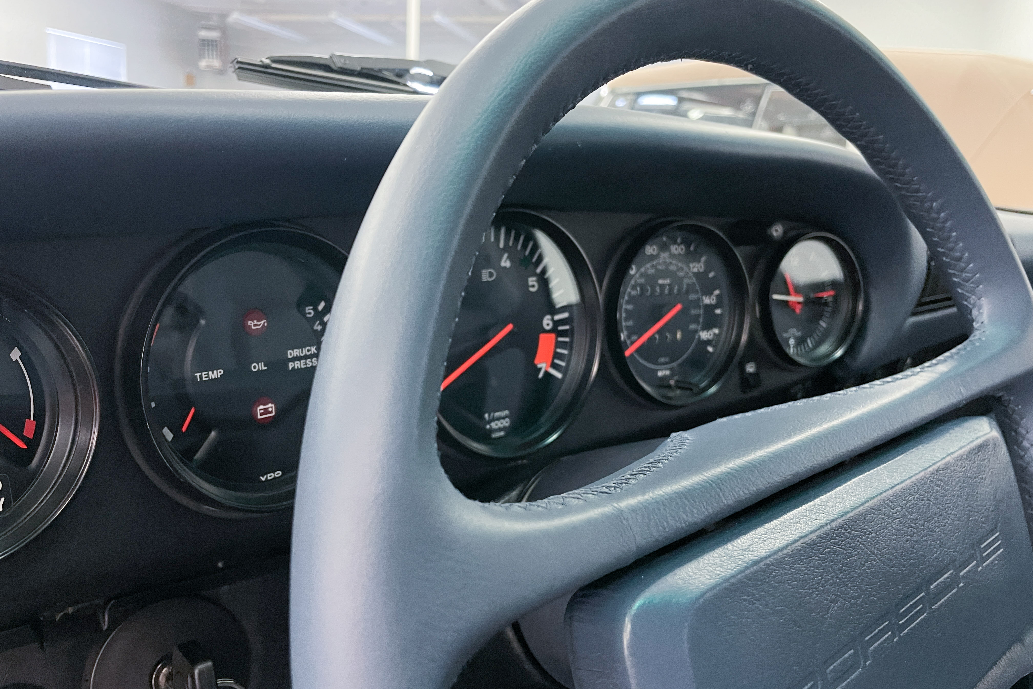 Next was extensive bodywork and metal. Followed by primer, paint, sanding, clear and more sanding. The Porsche factory Iris Blue came out great. Matching the exterior is a Porsche blue leather interior. Every last bit factory correct. There is endless detail work, especially on classic Porsche restorations. Also, remember that this car is going to Moment Motors in Texas to be converted to electric battery and motor. It’s already been there once – getting wiring in place and a lot more.