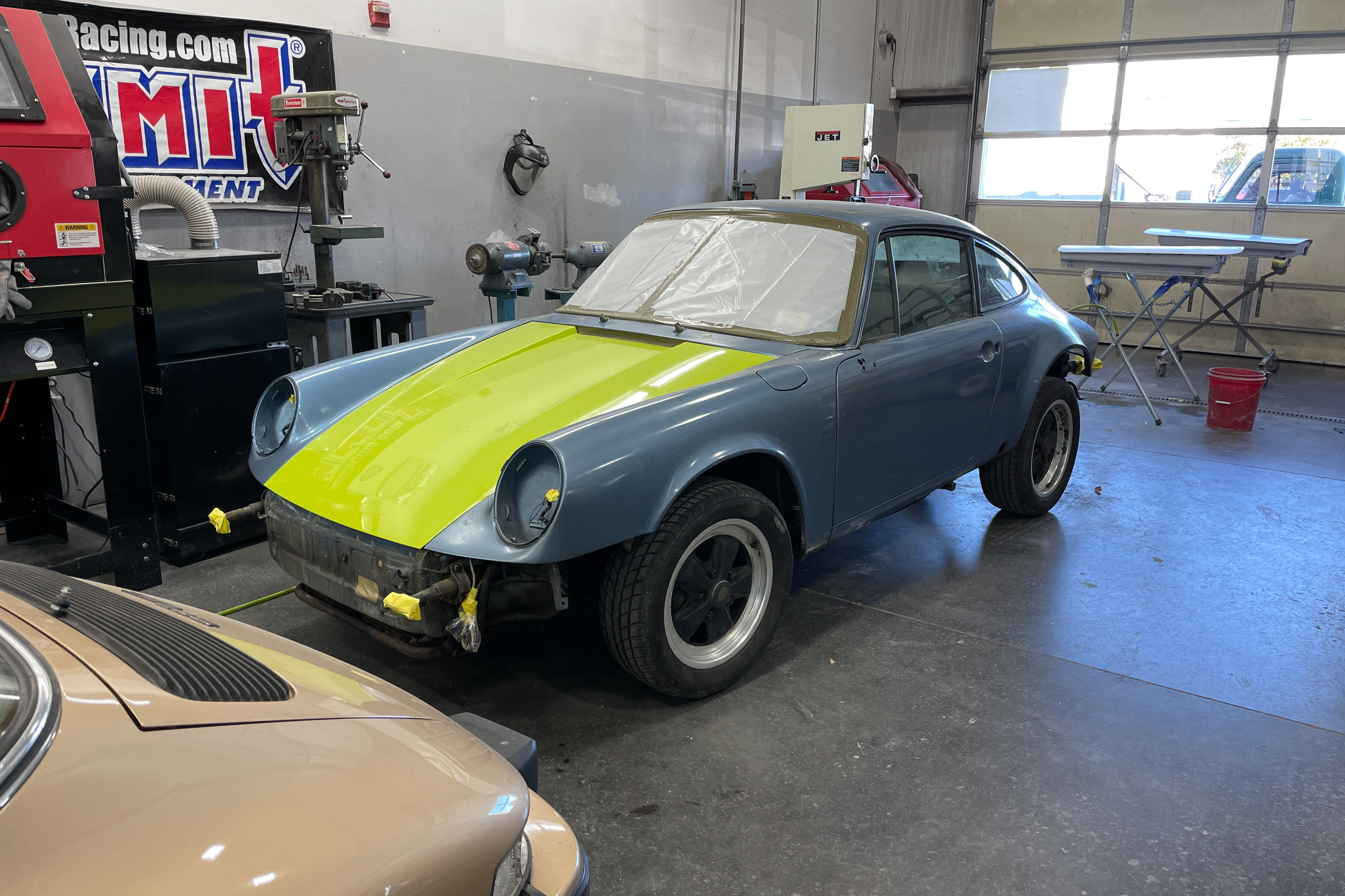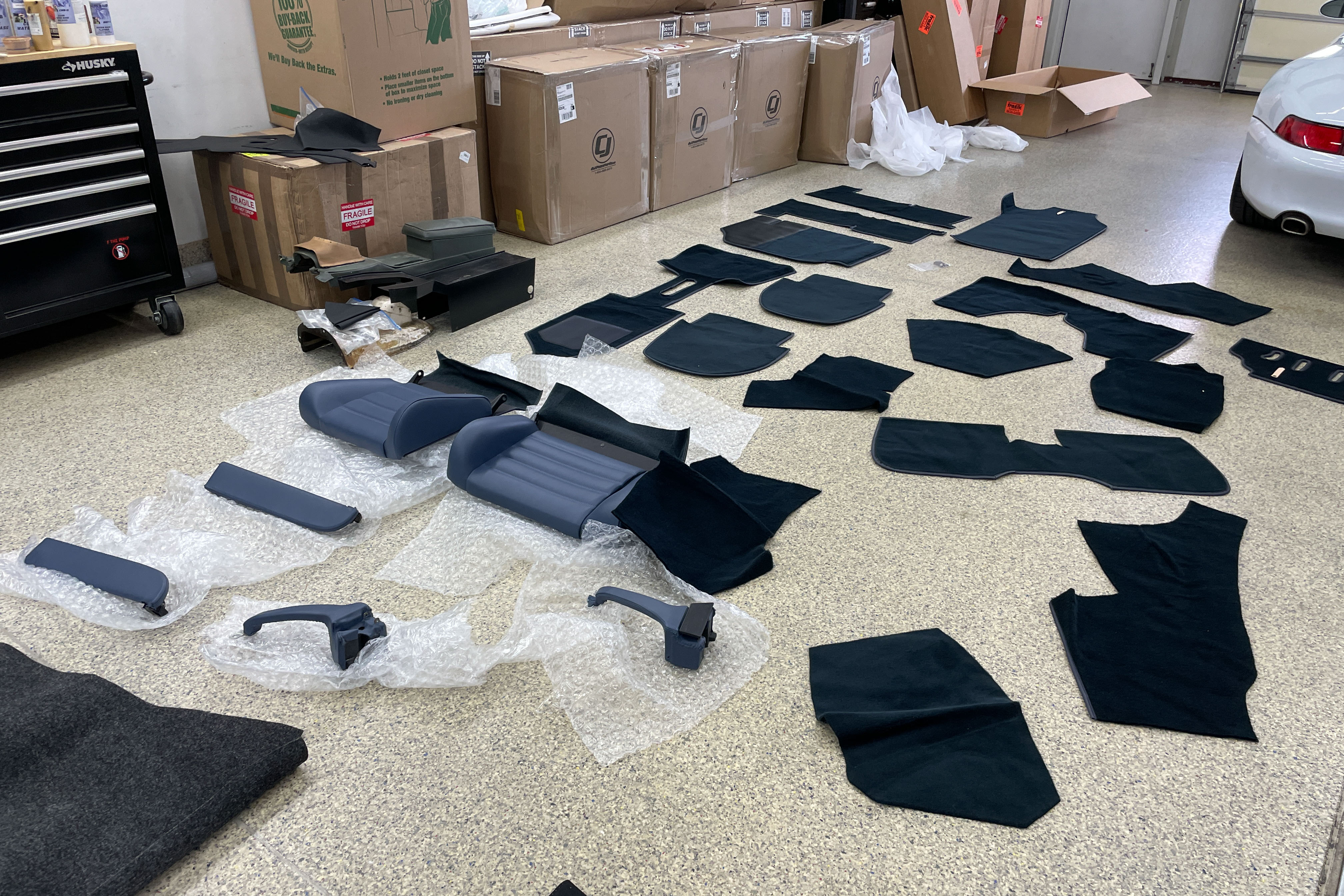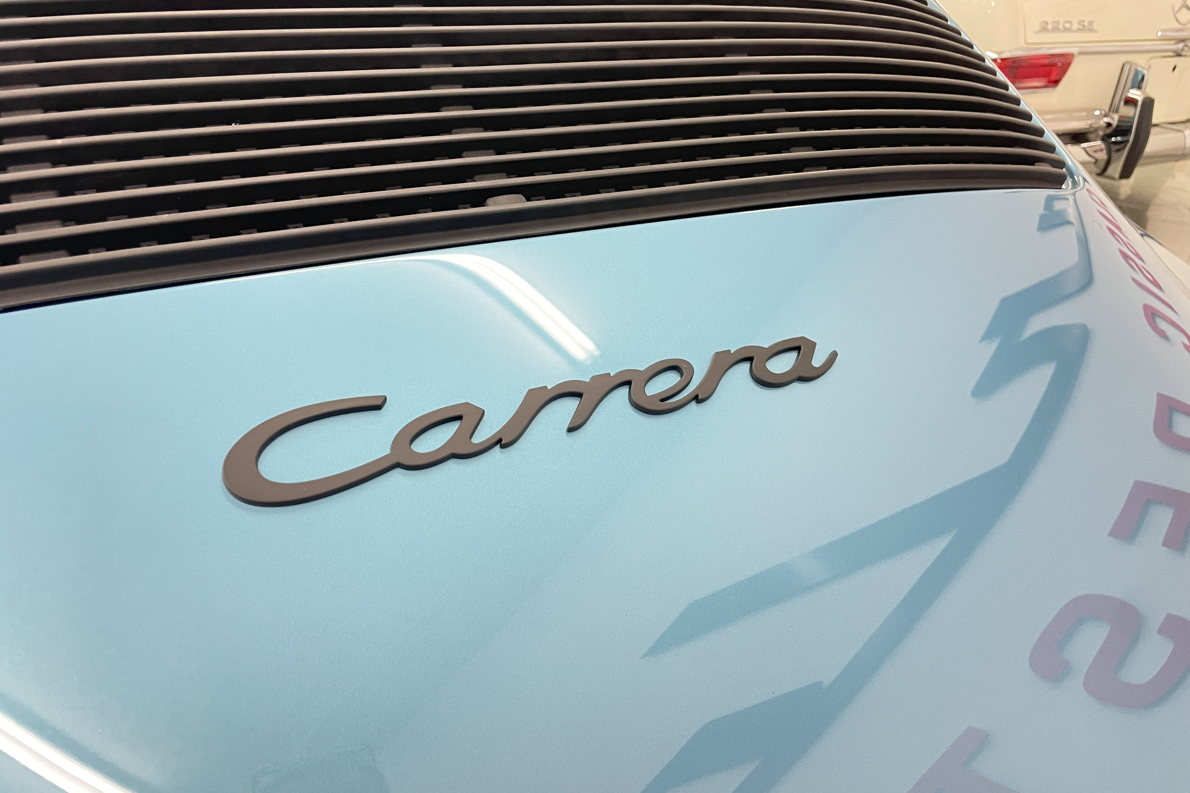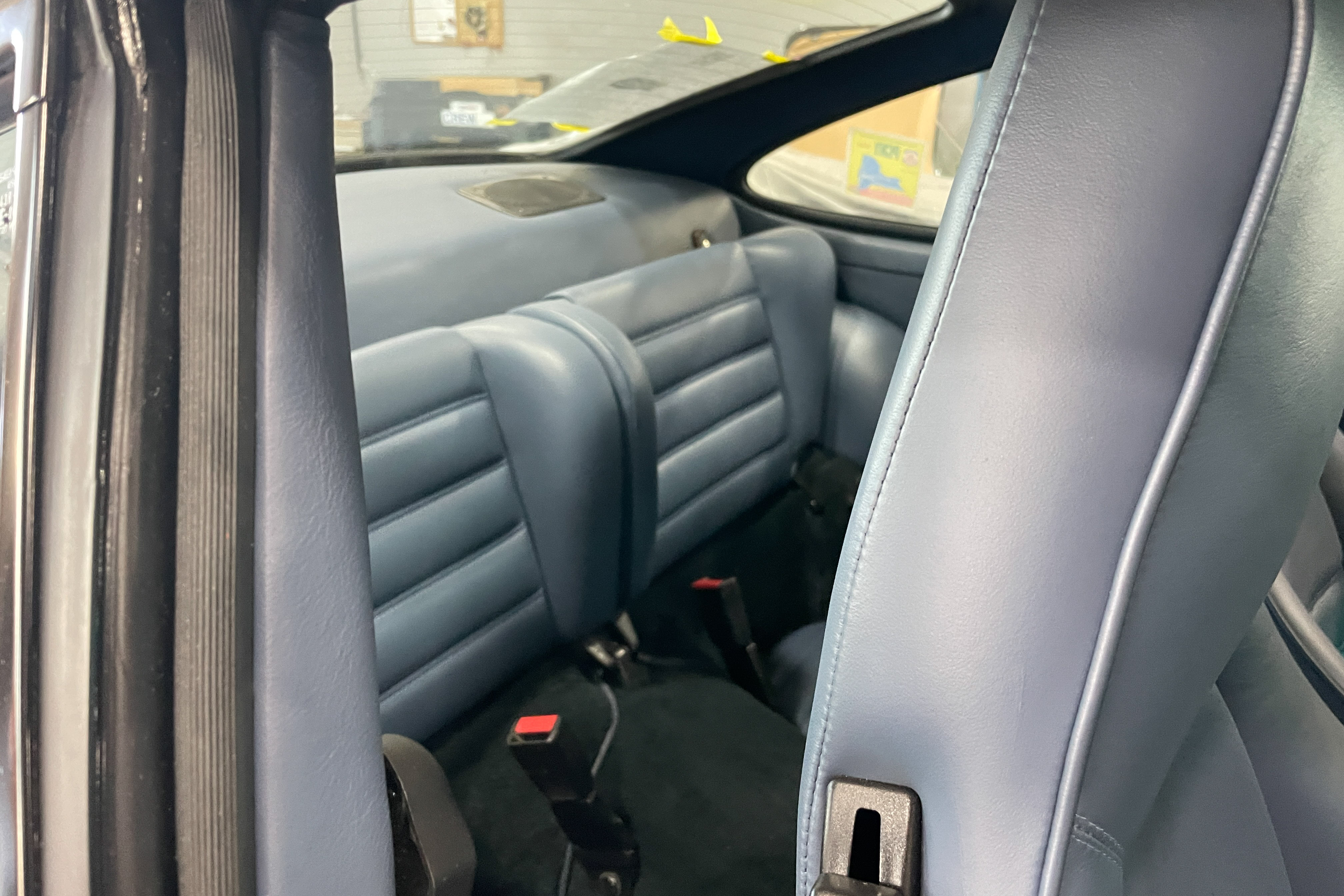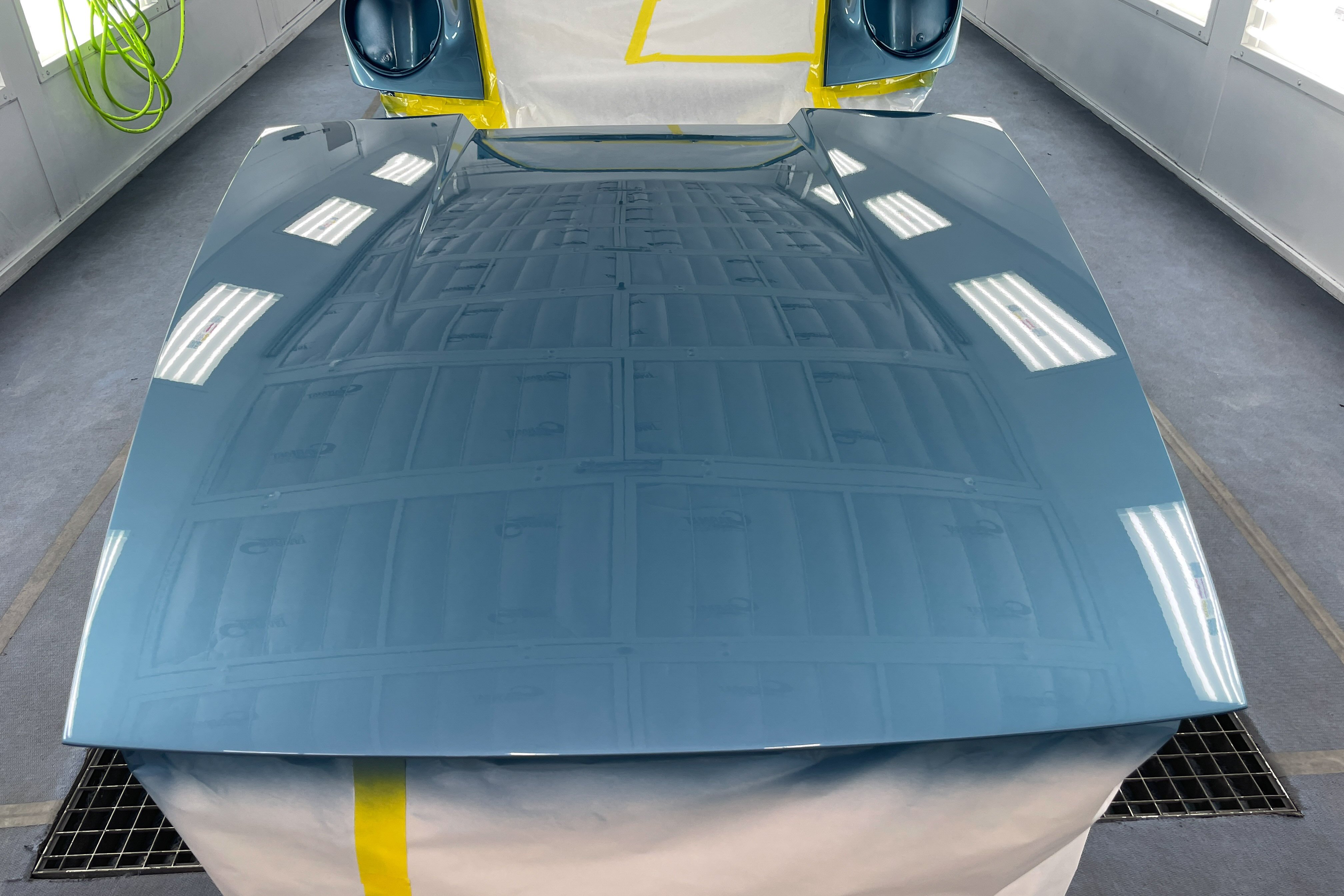 Next was extensive bodywork and metal. Followed by primer, paint, sanding, clear and more sanding. The Porsche factory Iris Blue came out great. Matching the exterior is a Porsche blue leather interior. Every last bit factory correct. There is endless detail work, especially on classic Porsche restorations. Also, remember that this car is going to Moment Motors in Texas to be converted to electric battery and motor. It’s already been there once – getting wiring in place and a lot more.