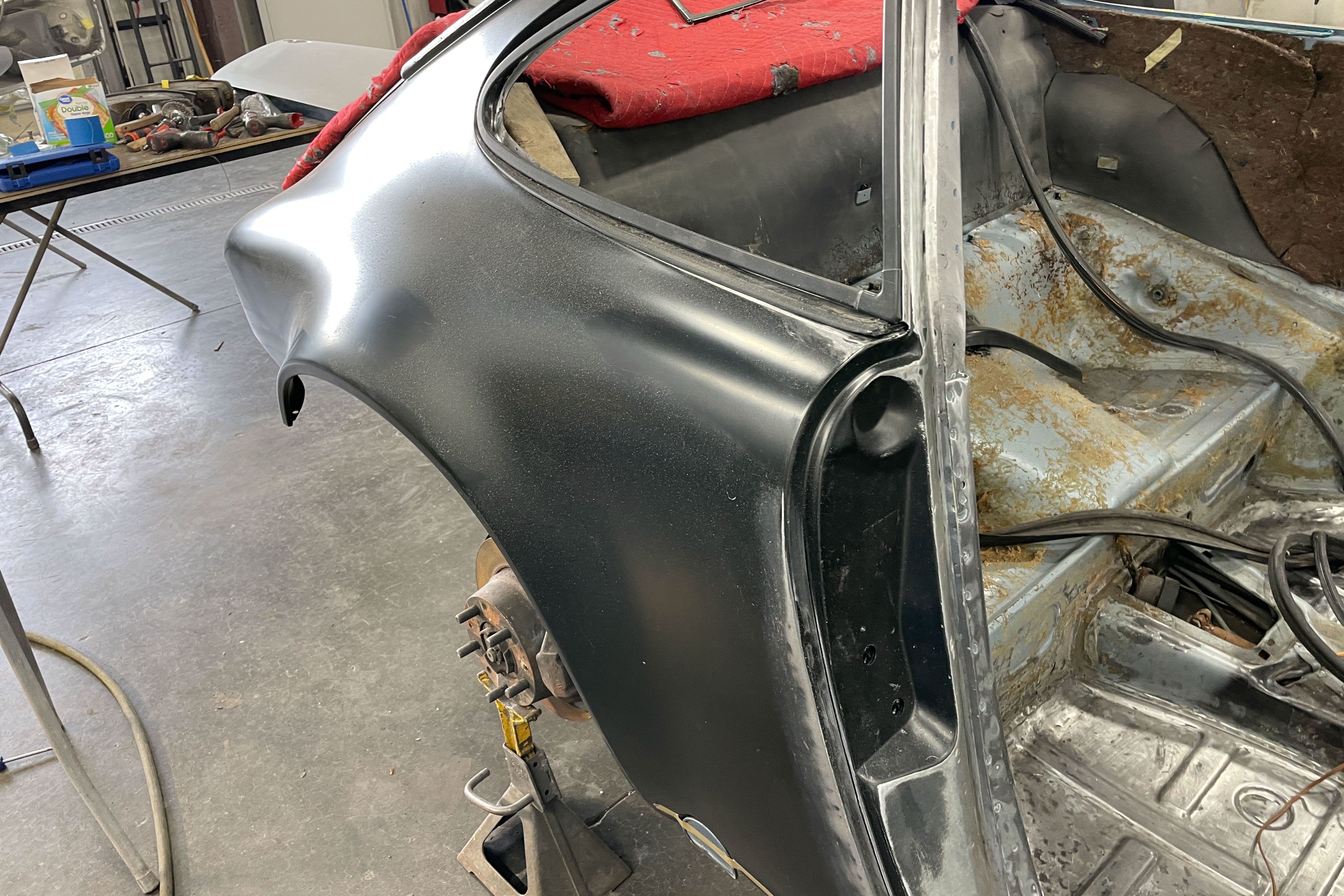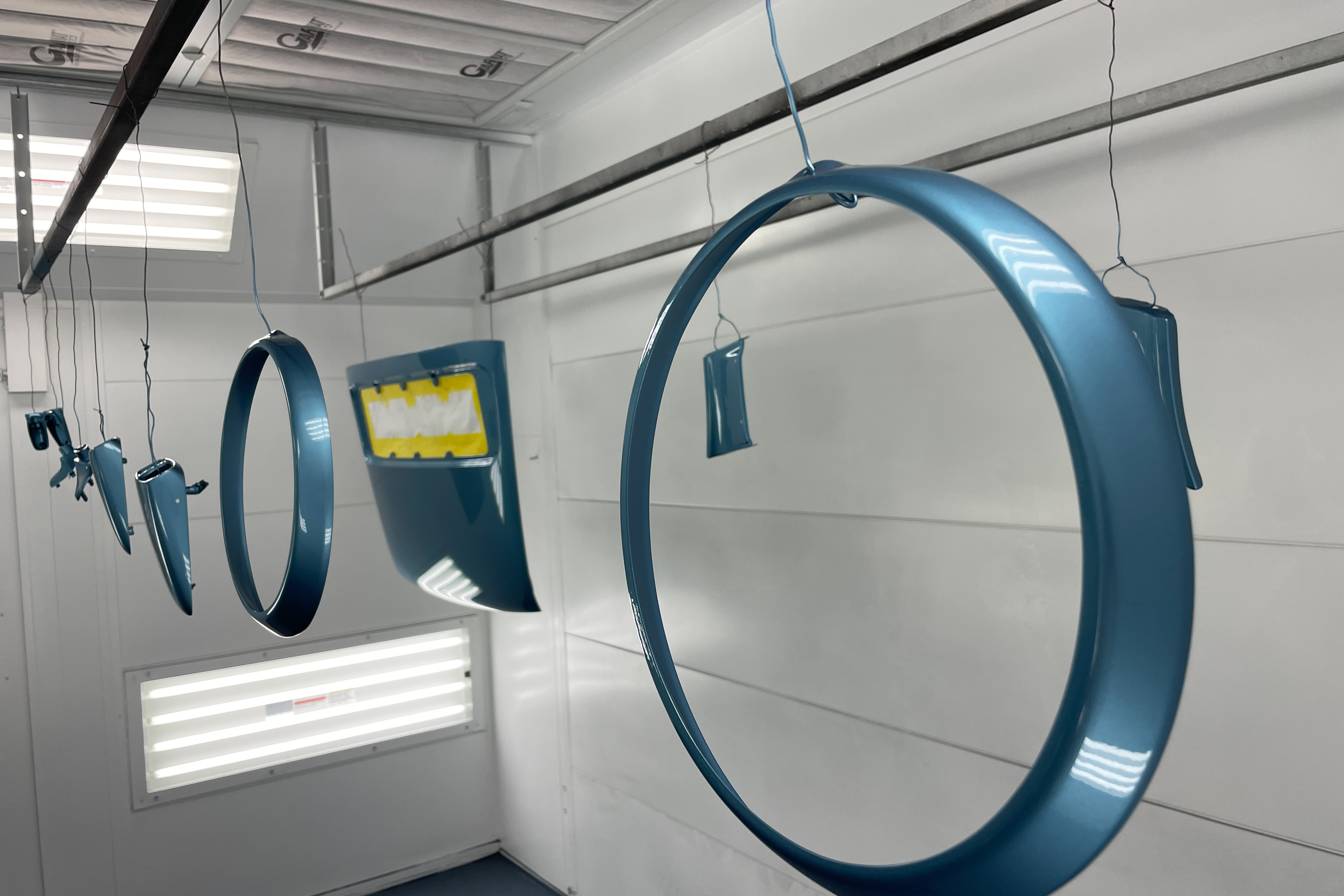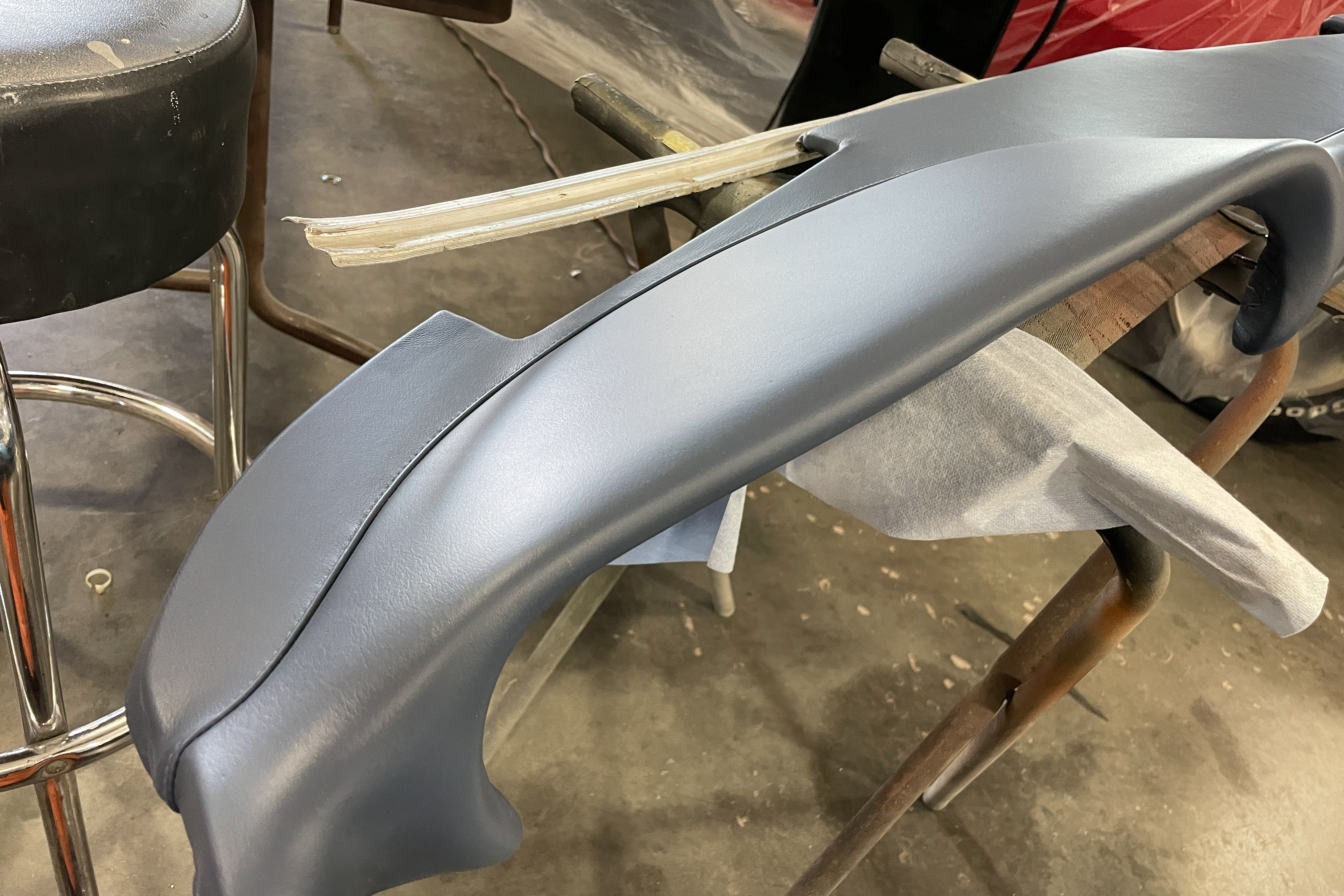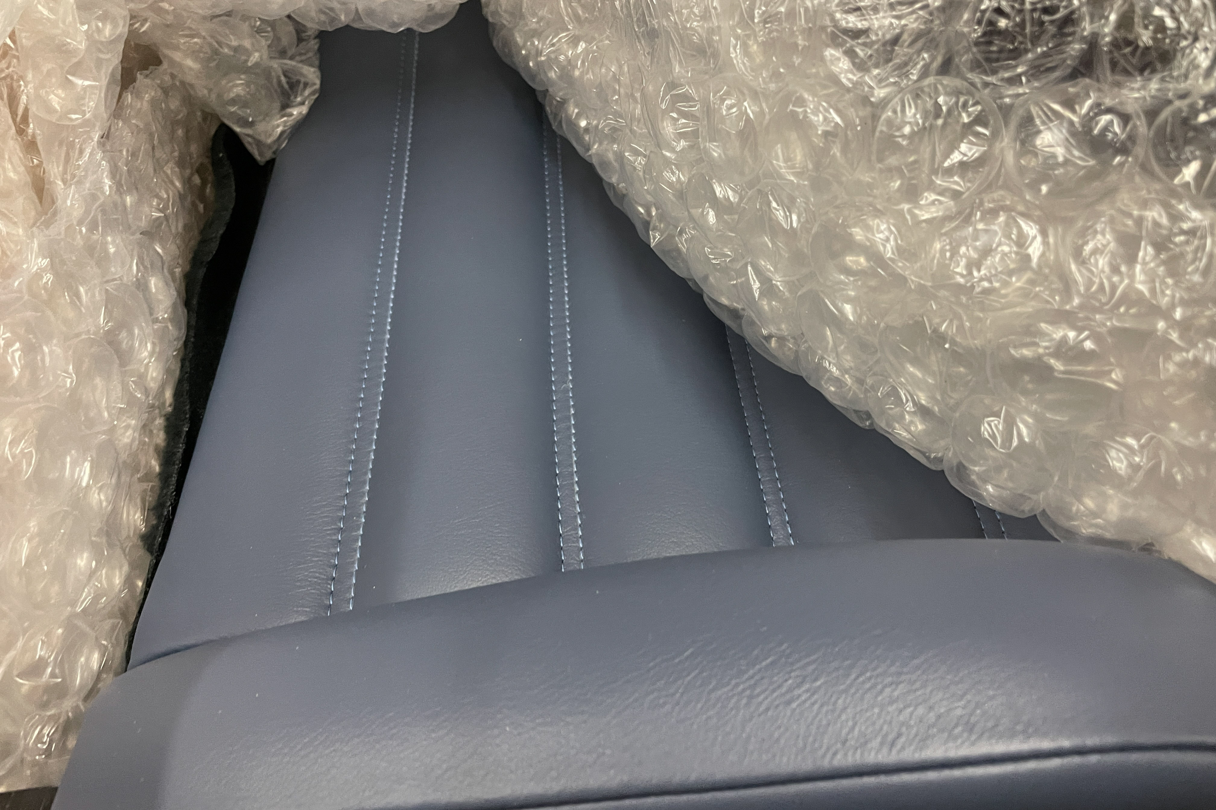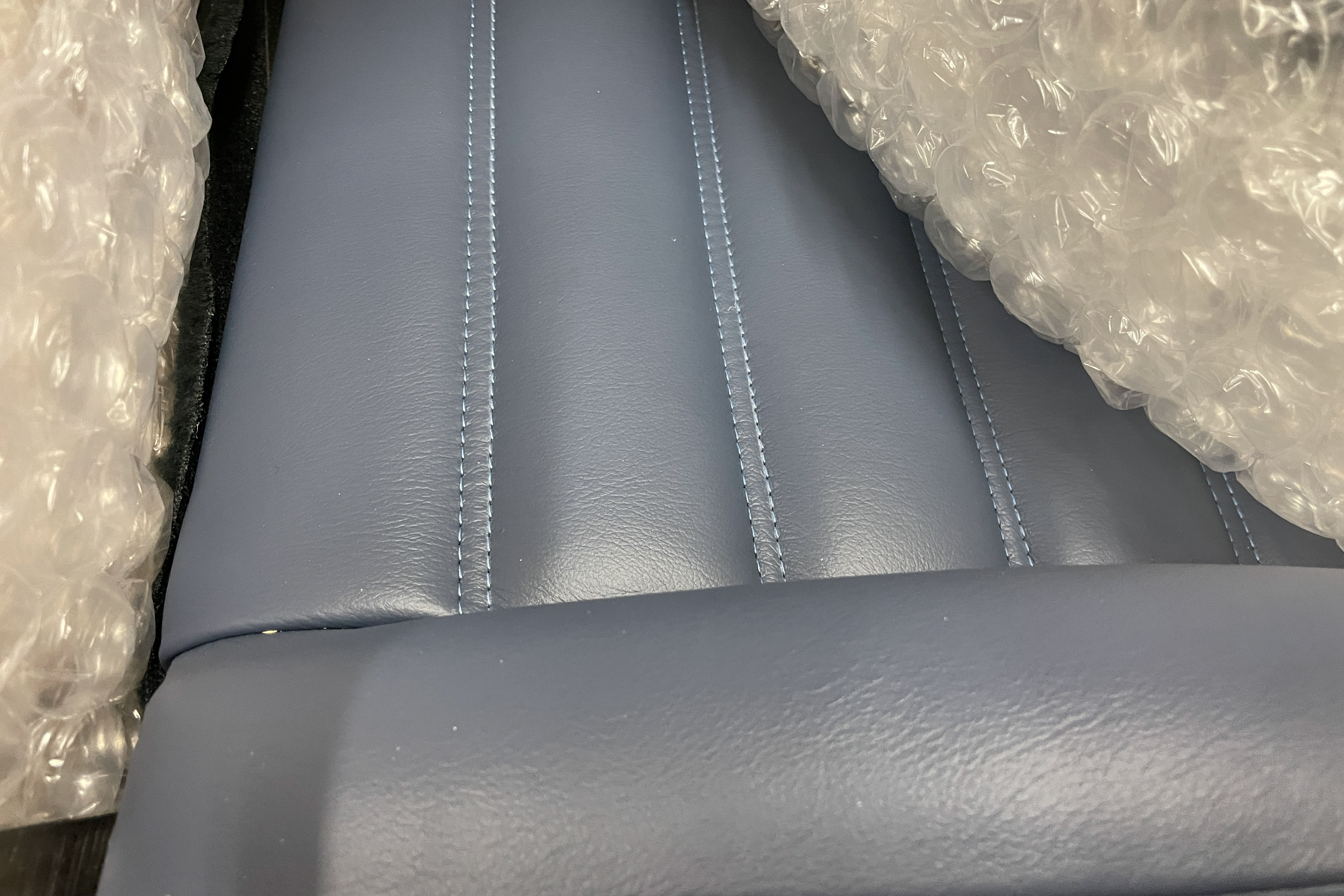 Next was extensive bodywork and metal. Followed by primer, paint, sanding, clear and more sanding. The Porsche factory Iris Blue came out great. Matching the exterior is a Porsche blue leather interior. Every last bit factory correct. There is endless detail work, especially on classic Porsche restorations. Also, remember that this car is going to Moment Motors in Texas to be converted to electric battery and motor. It’s already been there once – getting wiring in place and a lot more.