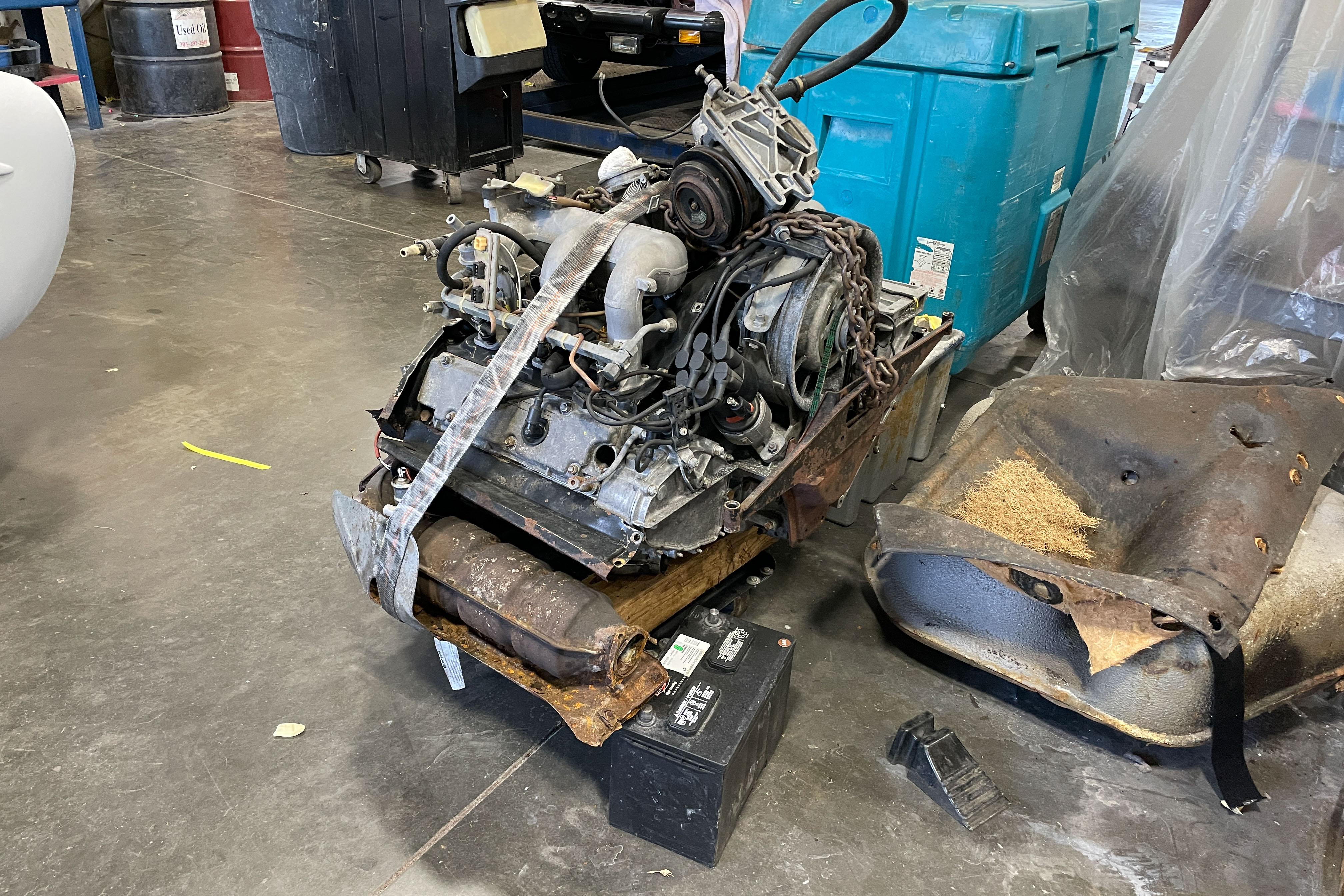 Unfortunately, the car was caught in the water and had a heavily degraded interior. Since the flood, the car had not been driven and showed a buildup of cobwebs and heavy dust on the exterior. Then, it came to us to be reborn. We disassembled the classic Porsche to begin with, including the interior and the engine compartment. The engine is likely not salvageable because of the flood conditions. That doesn’t matter with an electric conversion of course.