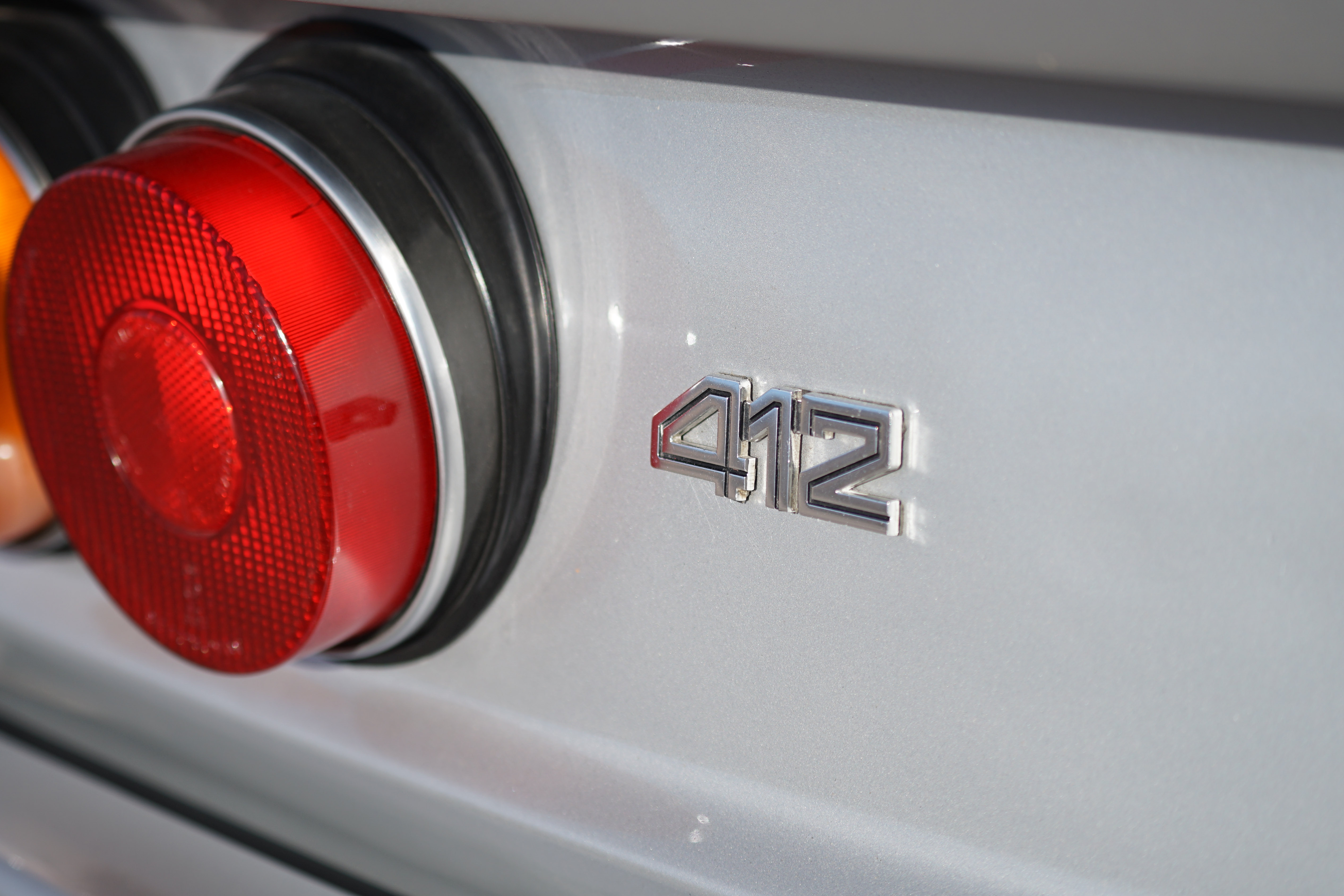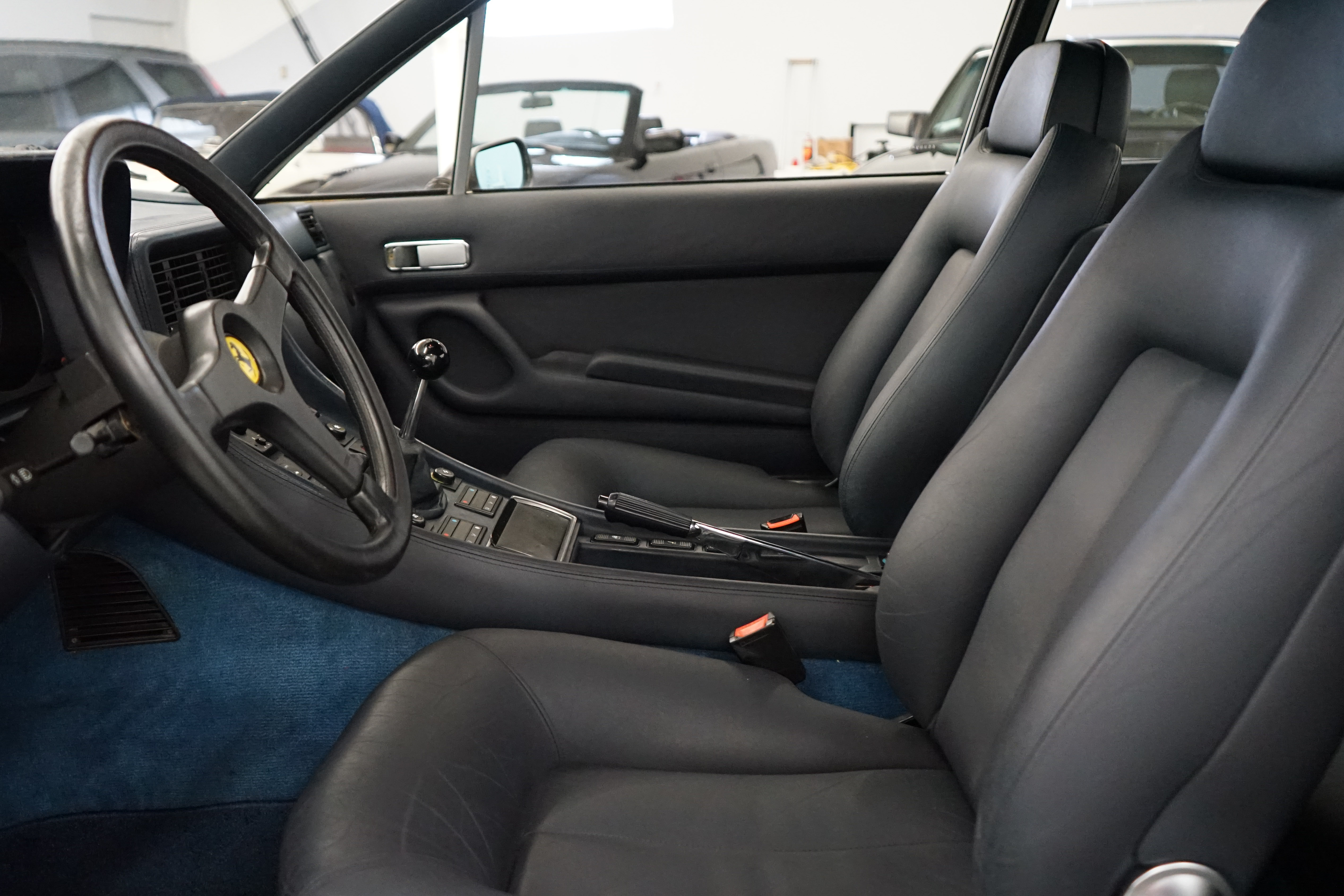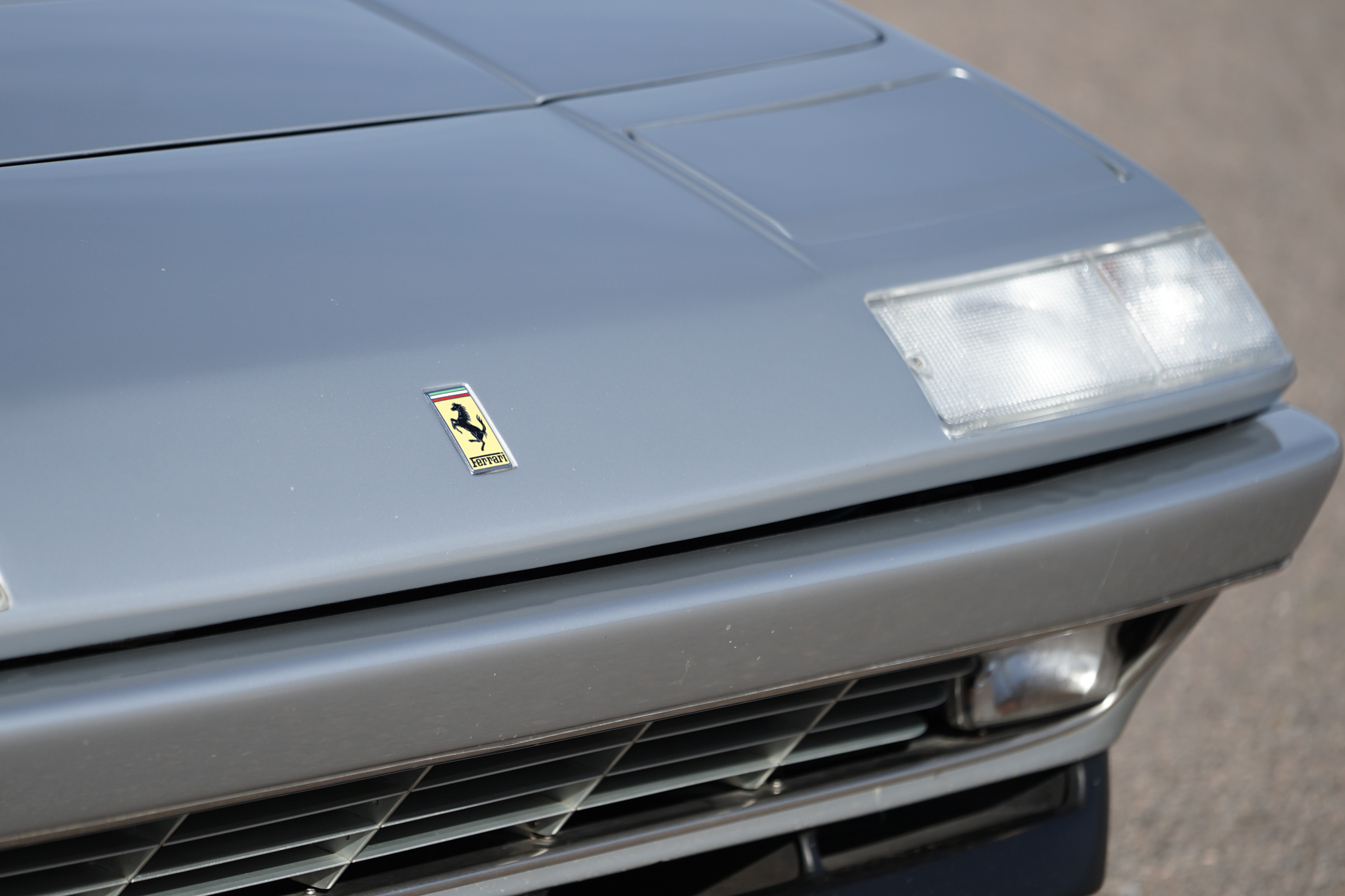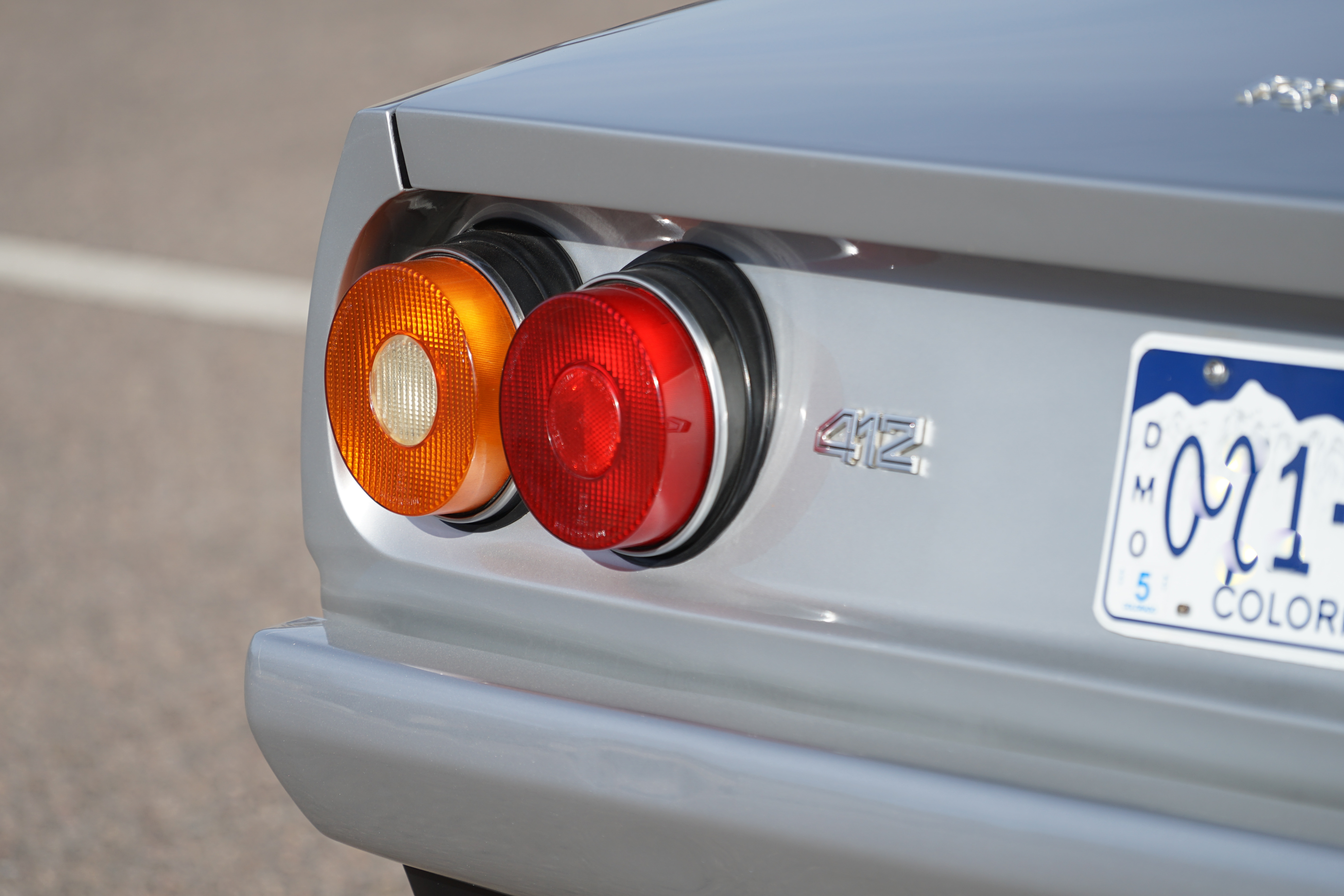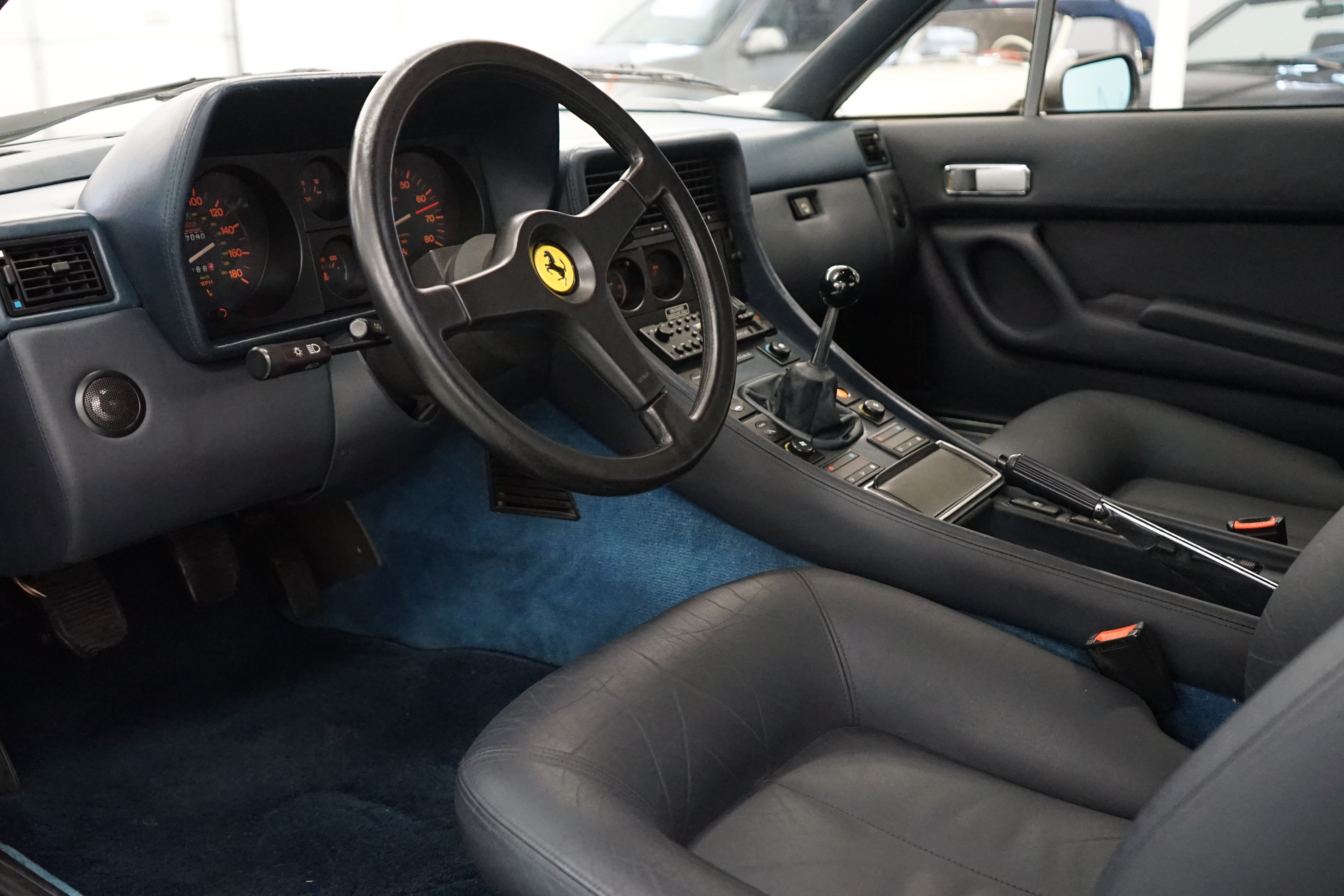 The 412s also offer ABS brakes, full power seat adjustments, load-leveling suspension and a truly luxury ambiance with the panache of a true Enzo-era V12 experience. This particular car was fully federalized when imported as a new car, lived its life in Texas and Arizona avoiding any salty roads, and was well cared for by enthusiast owners. It has been refinished once in its original Argento silver paint and the original deep blue leather interior is spectacular. It is complete with its original books, pouch and tools and only has 46K miles. The car has recently had a full servicing, the rear height control system rebuilt and new Michelins mounted. It runs great, drives superbly and today only costs half as much as a 330GT!