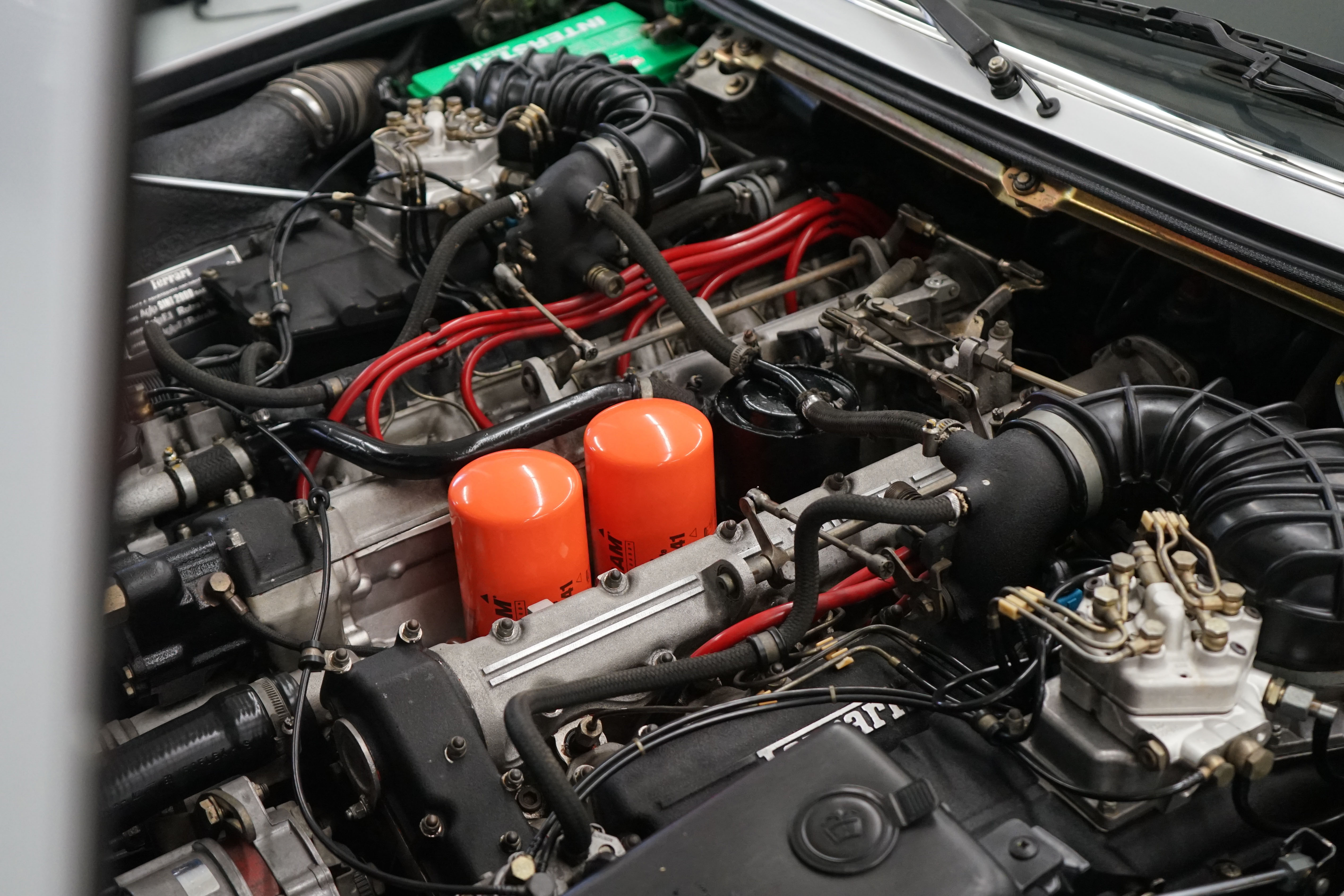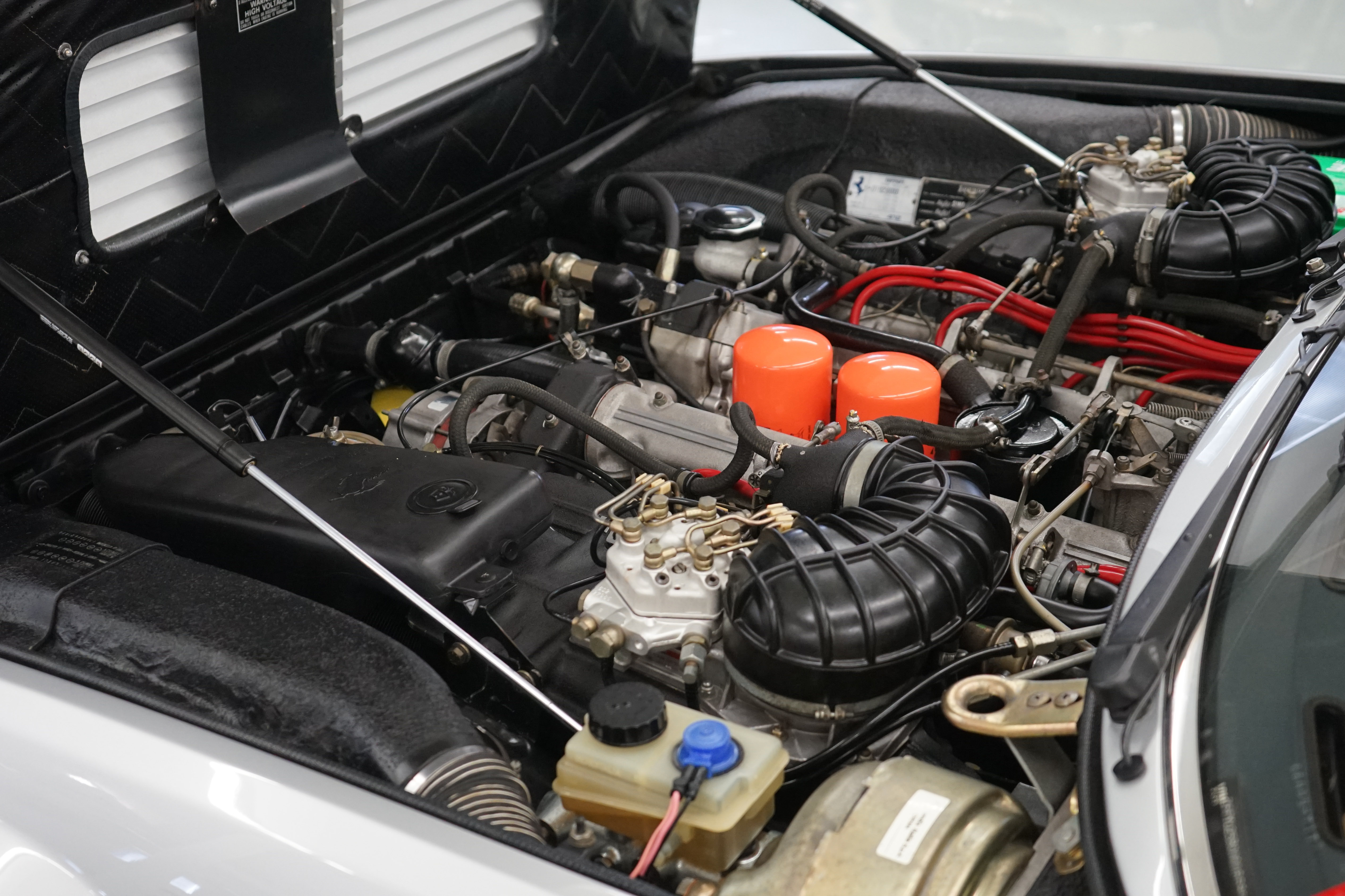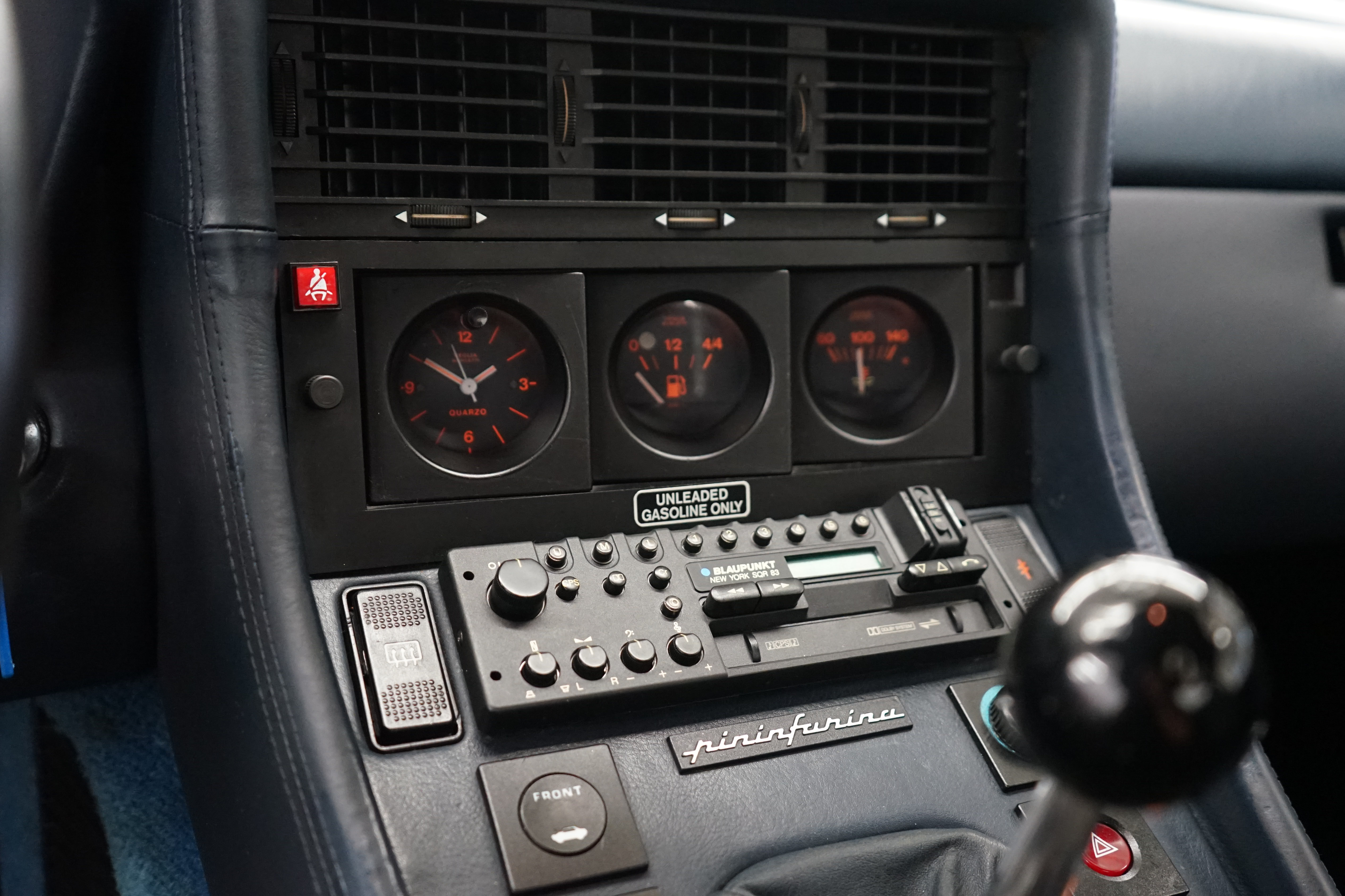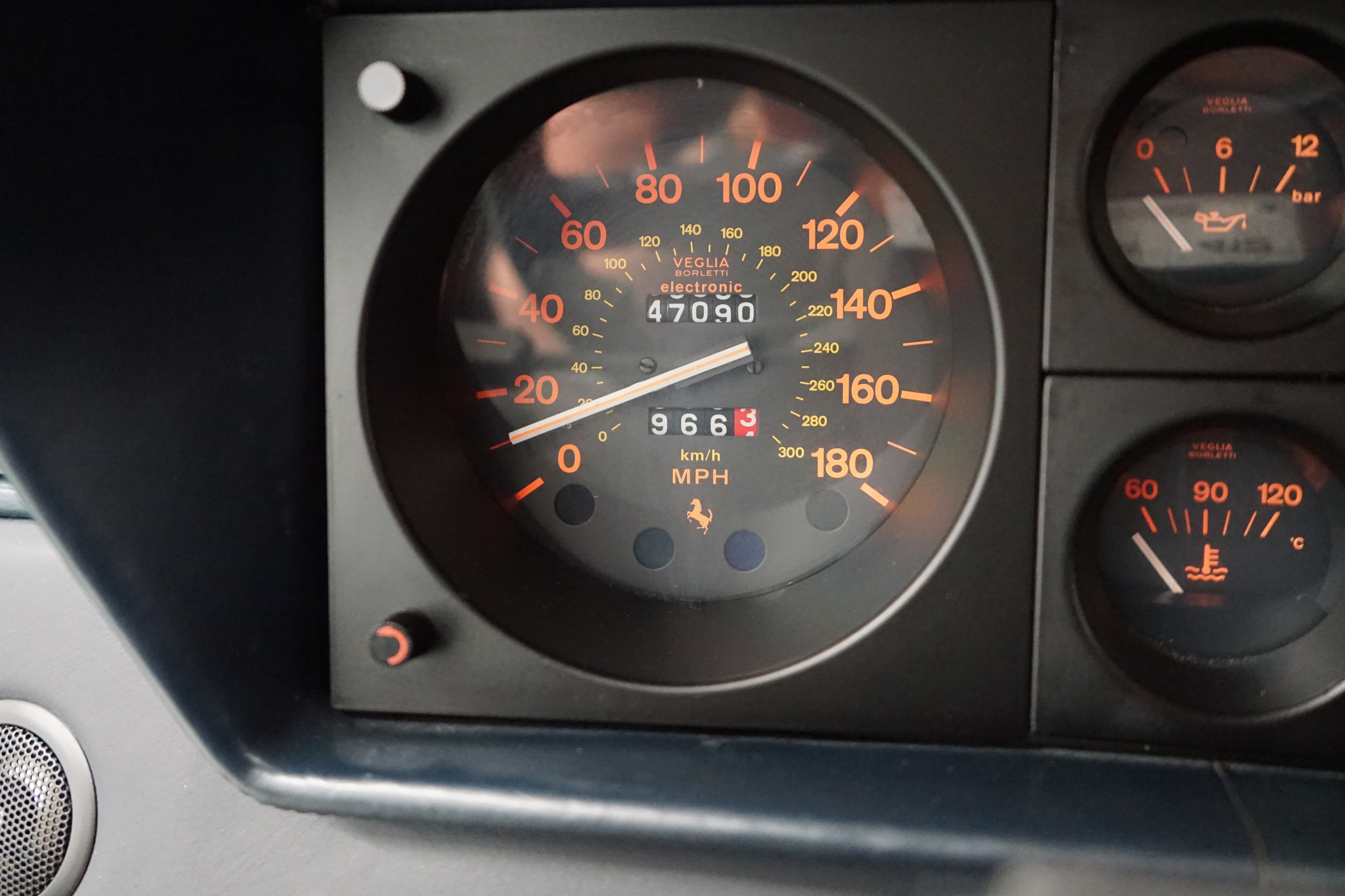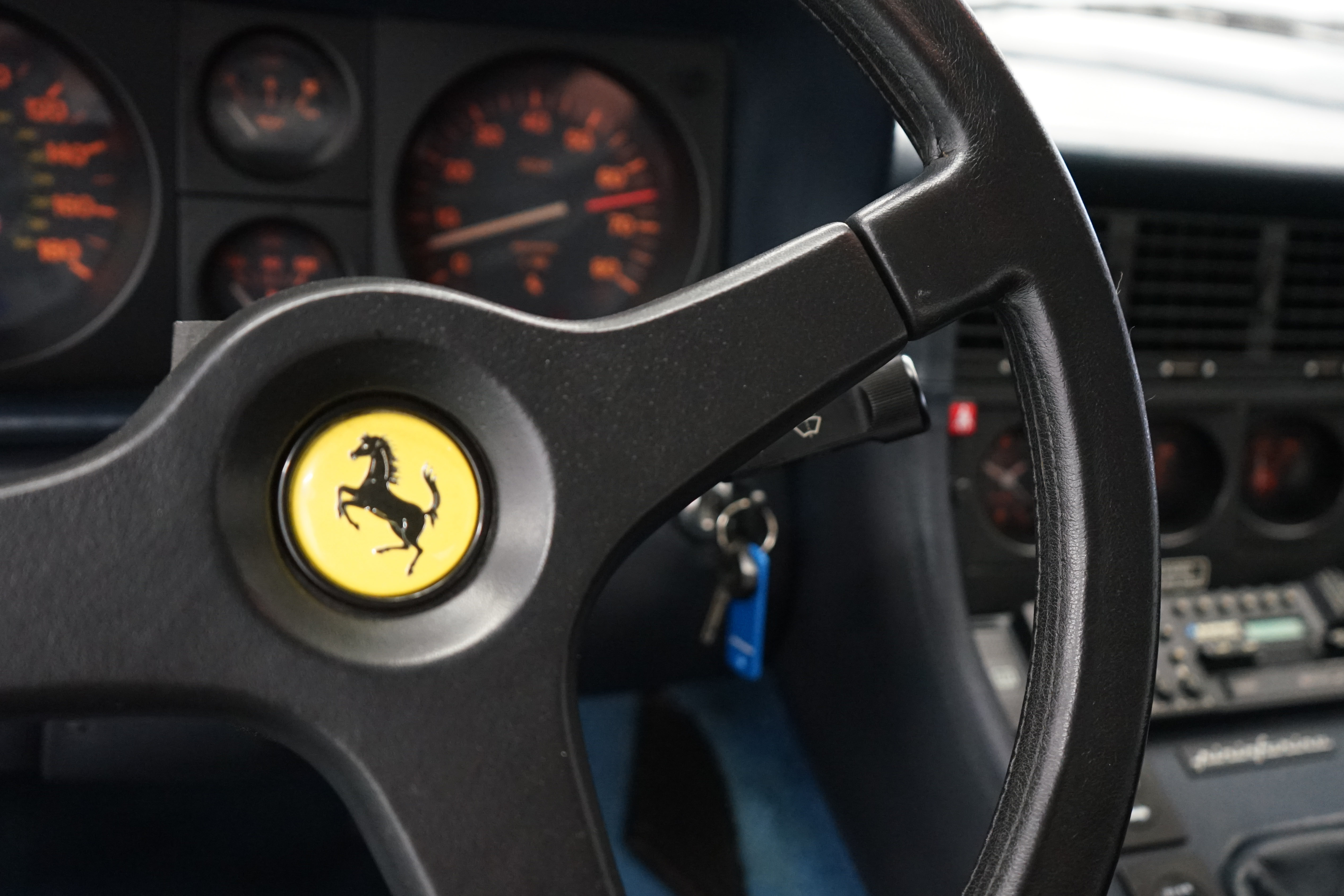 The 412s also offer ABS brakes, full power seat adjustments, load-leveling suspension and a truly luxury ambiance with the panache of a true Enzo-era V12 experience. This particular car was fully federalized when imported as a new car, lived its life in Texas and Arizona avoiding any salty roads, and was well cared for by enthusiast owners. It has been refinished once in its original Argento silver paint and the original deep blue leather interior is spectacular. It is complete with its original books, pouch and tools and only has 46K miles. The car has recently had a full servicing, the rear height control system rebuilt and new Michelins mounted. It runs great, drives superbly and today only costs half as much as a 330GT!