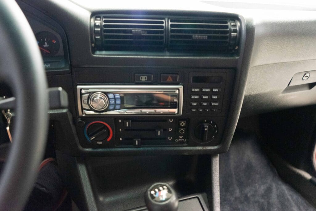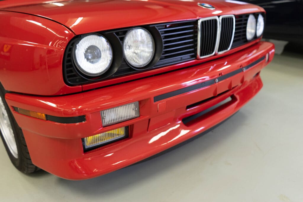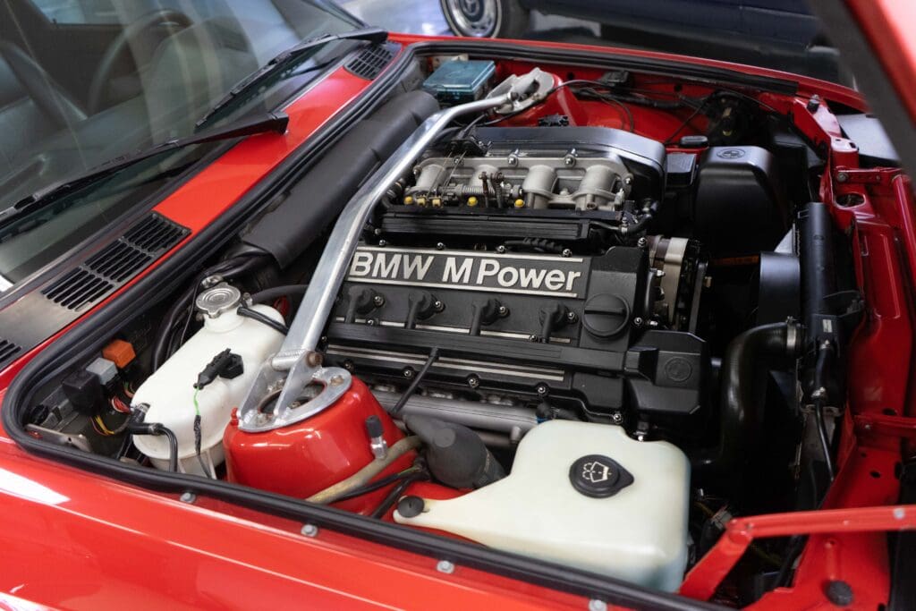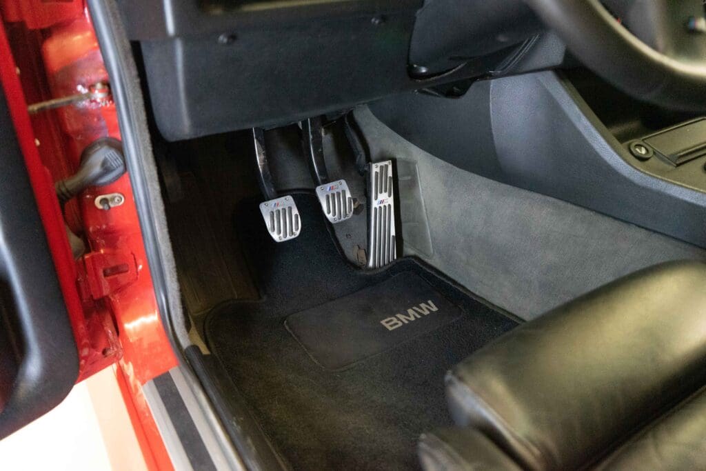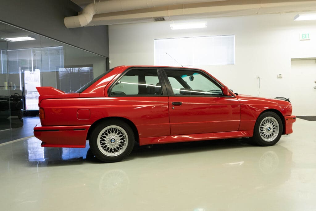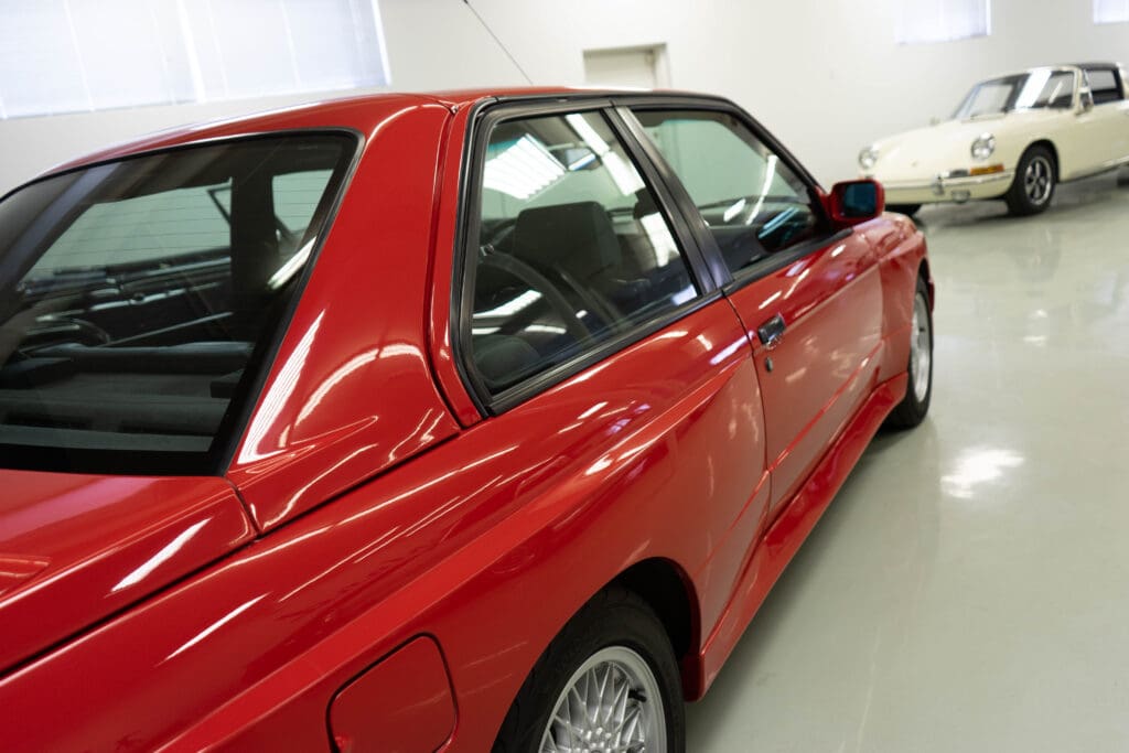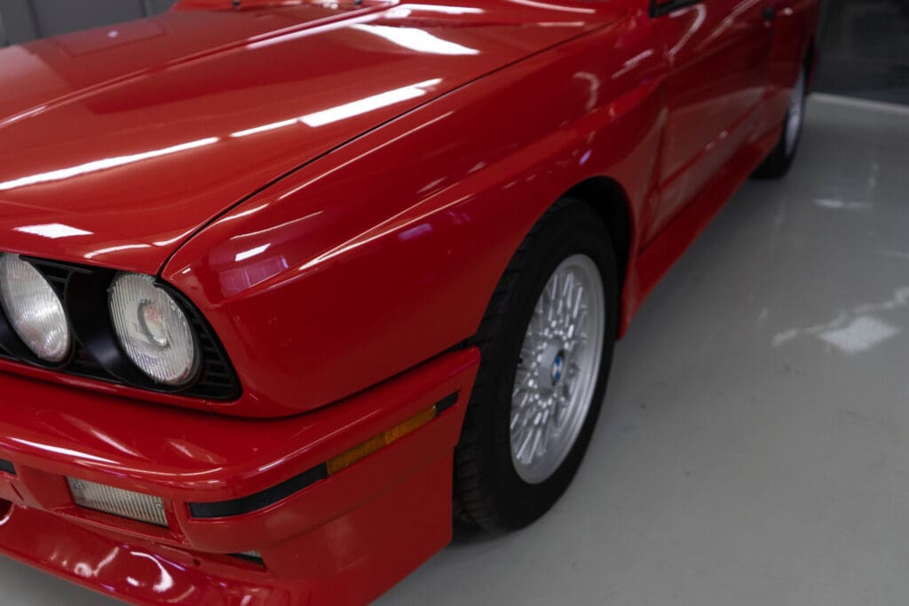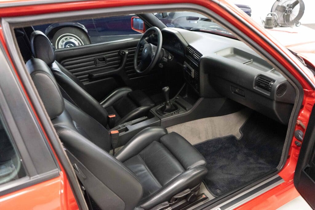This example is a 1989 E30 M3 finished in Cinnabar Red with a black leather interior. This M3 currently shows just over 108,000 miles on the odometer and is a great ‘drivers’ example. The car has minor bolt-on modifications including a front strut crossmember, an aftermarket cat-back exhaust, and an Alpine radio. The paint is consistent throughout the car and shows minor indications of a previous repaint. Inside, the leather interior is consistent with only minor signs of use.