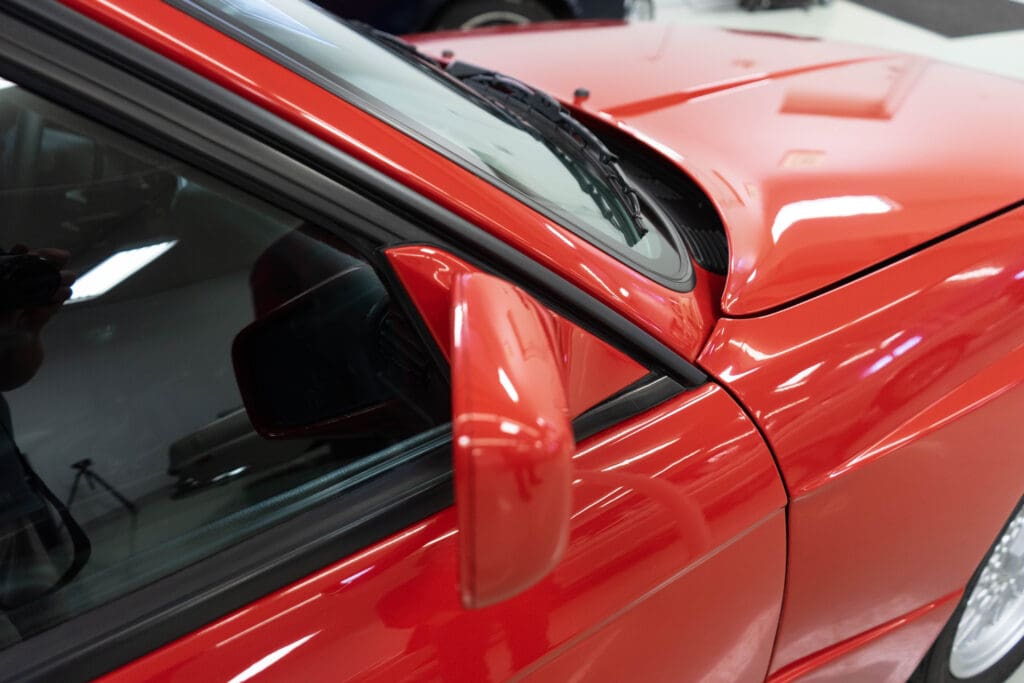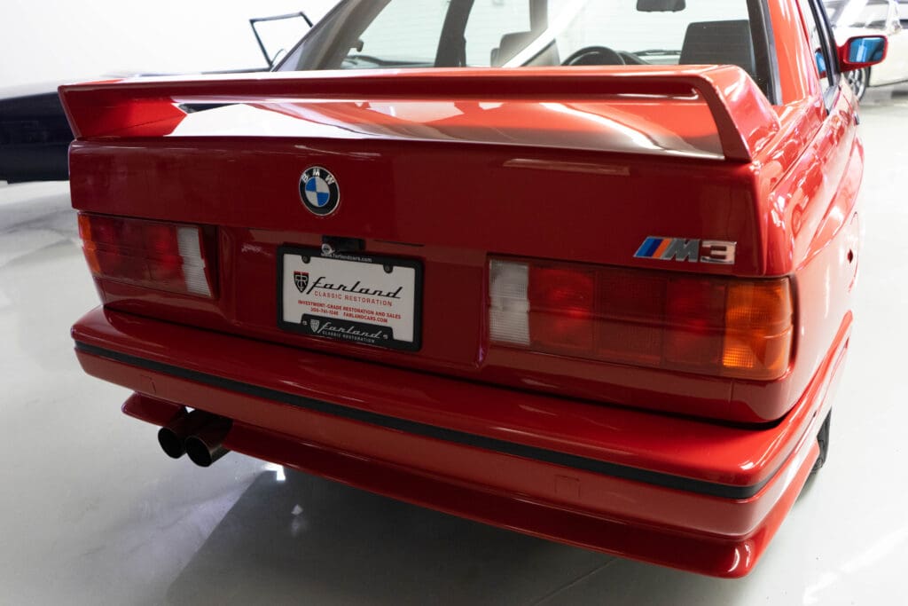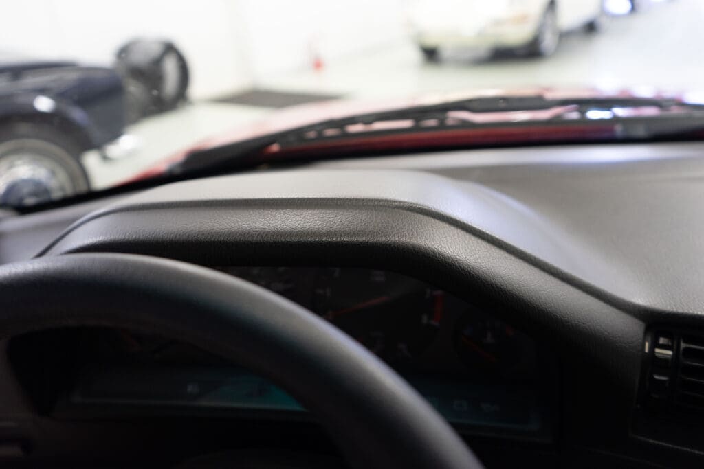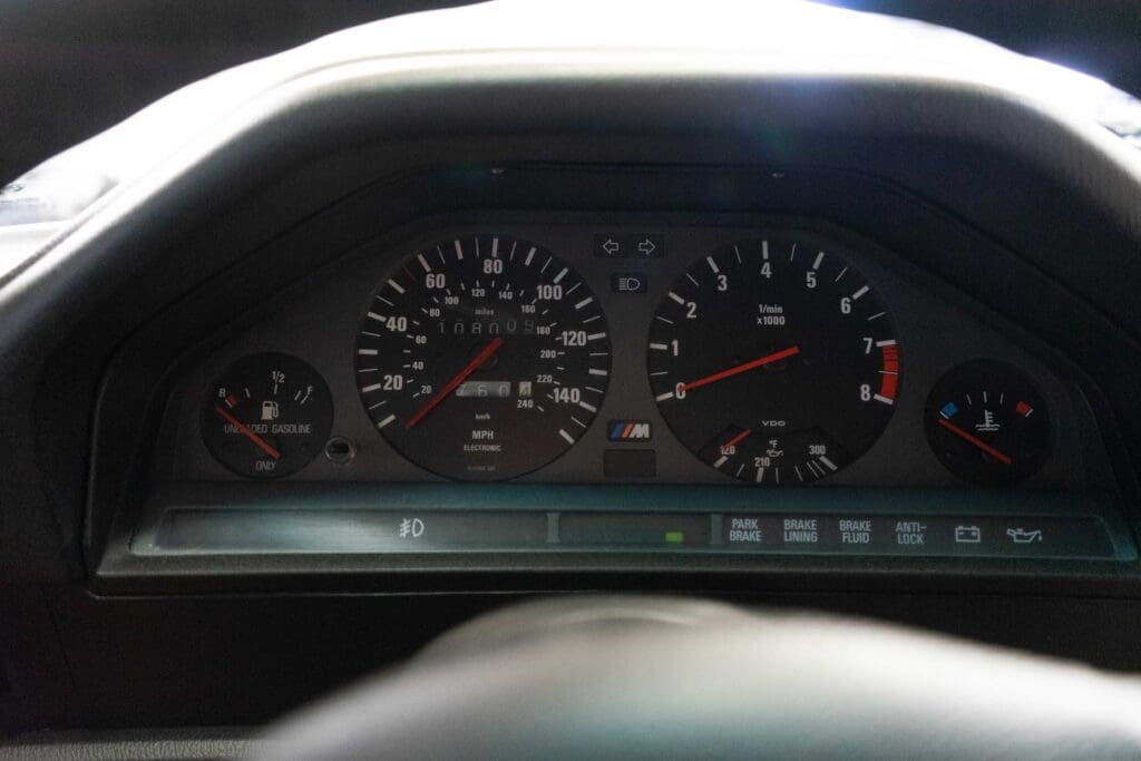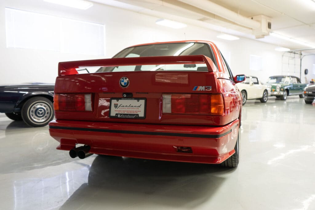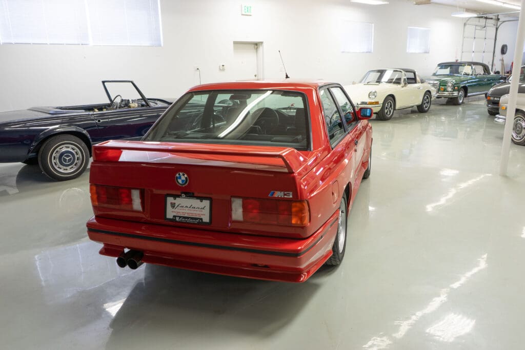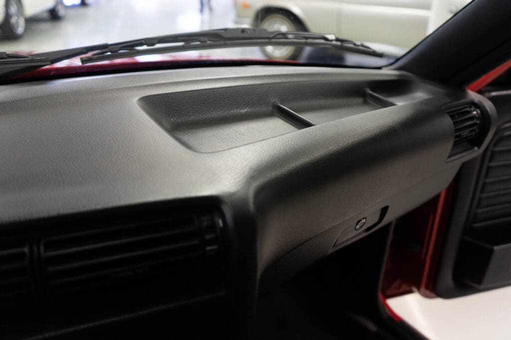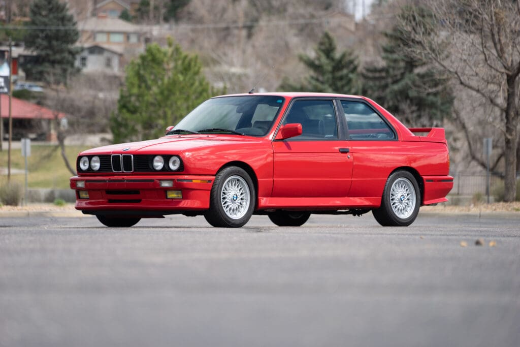 This example is a 1989 E30 M3 finished in Cinnabar Red with a black leather interior. This M3 currently shows just over 108,000 miles on the odometer and is a great ‘drivers’ example. The car has minor bolt-on modifications including a front strut crossmember, an aftermarket cat-back exhaust, and an Alpine radio. The paint is consistent throughout the car and shows minor indications of a previous repaint. Inside, the leather interior is consistent with only minor signs of use.
