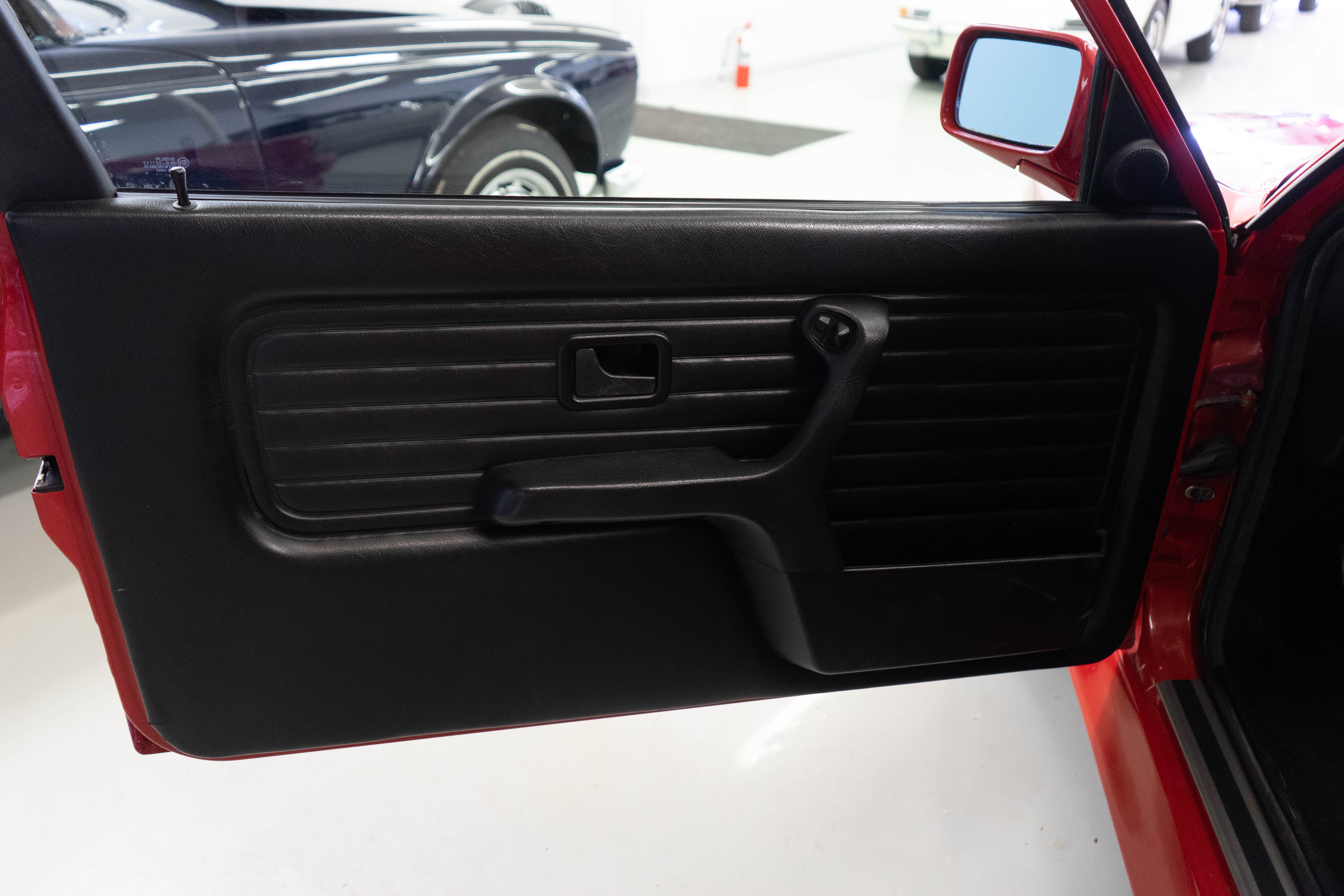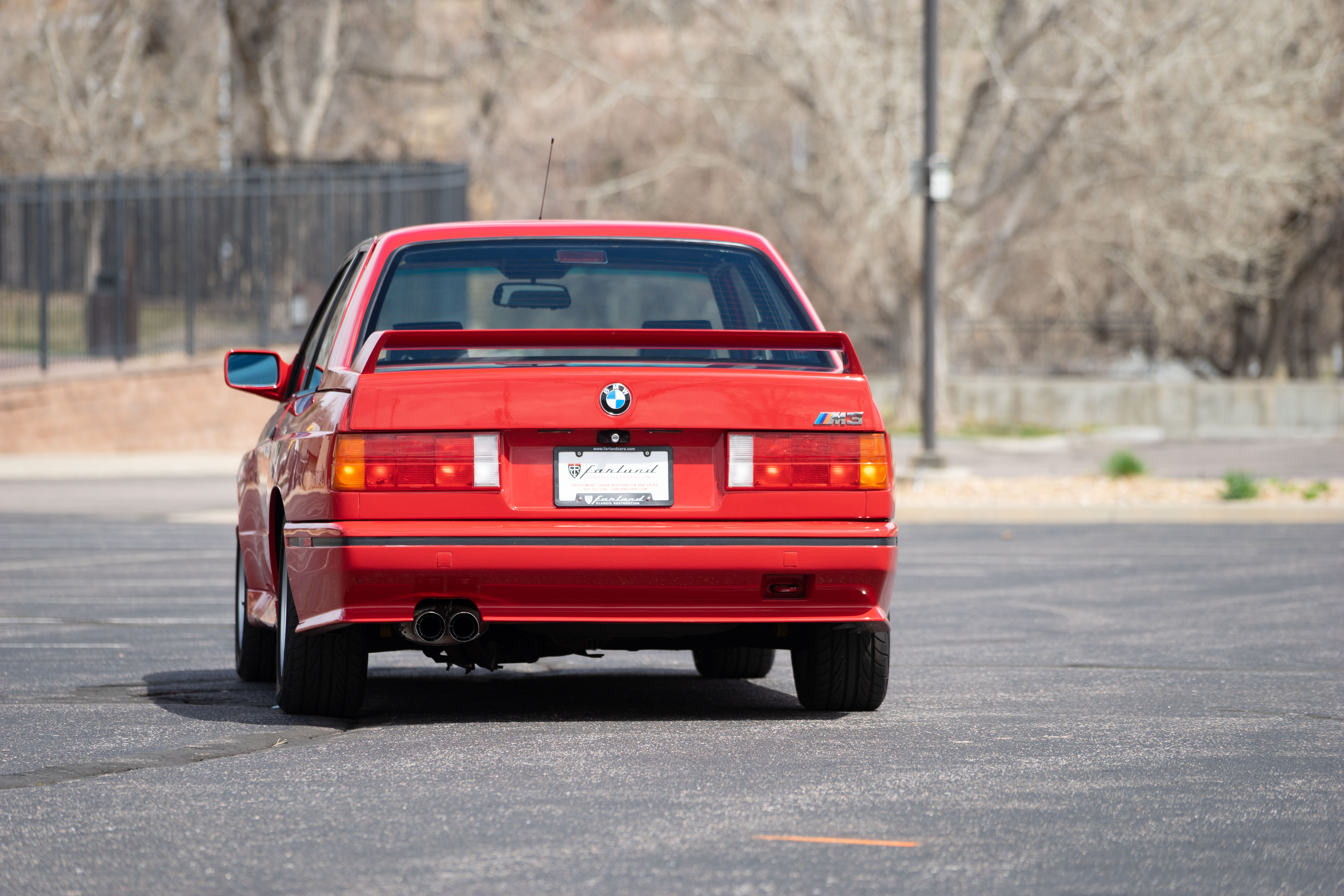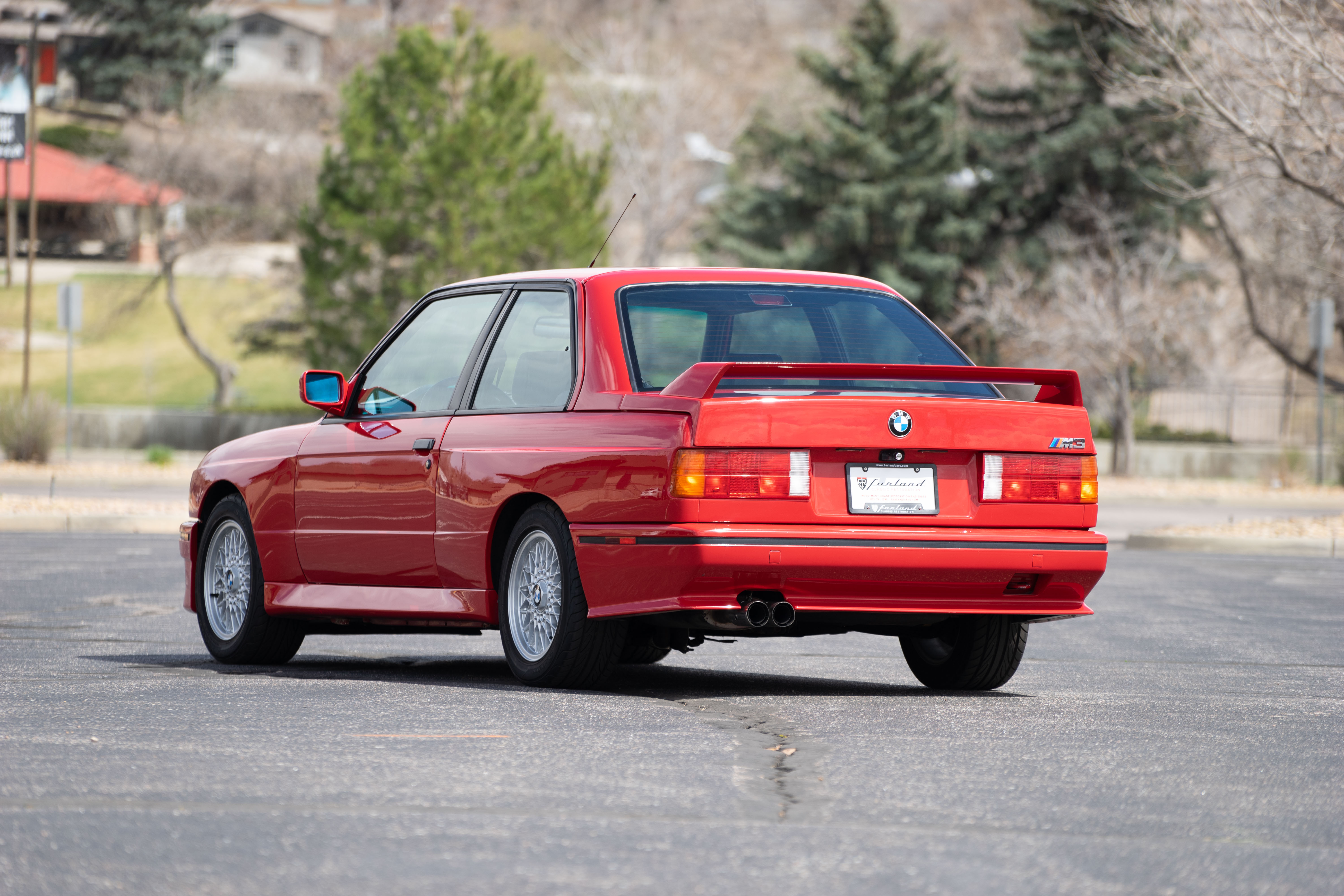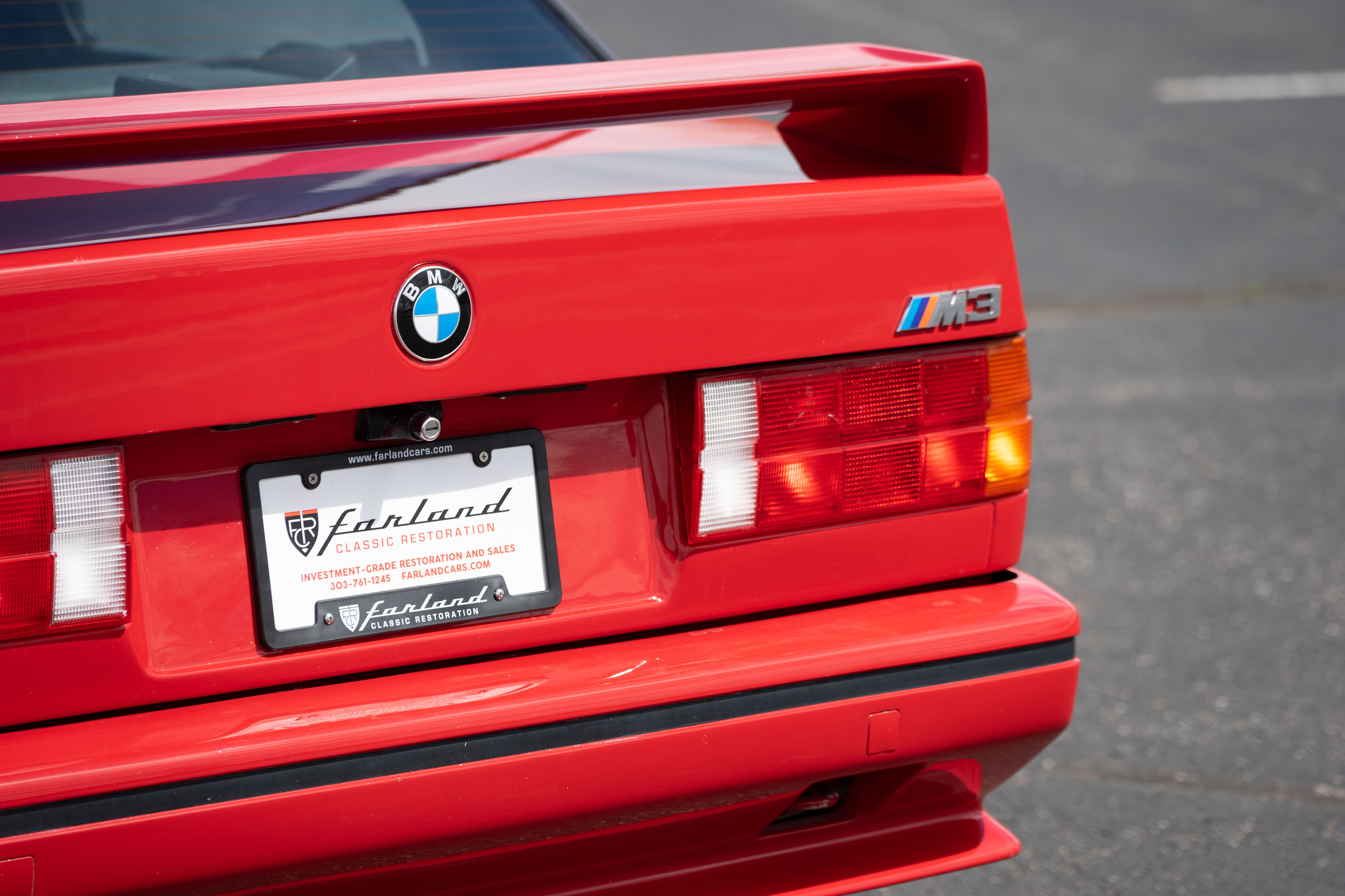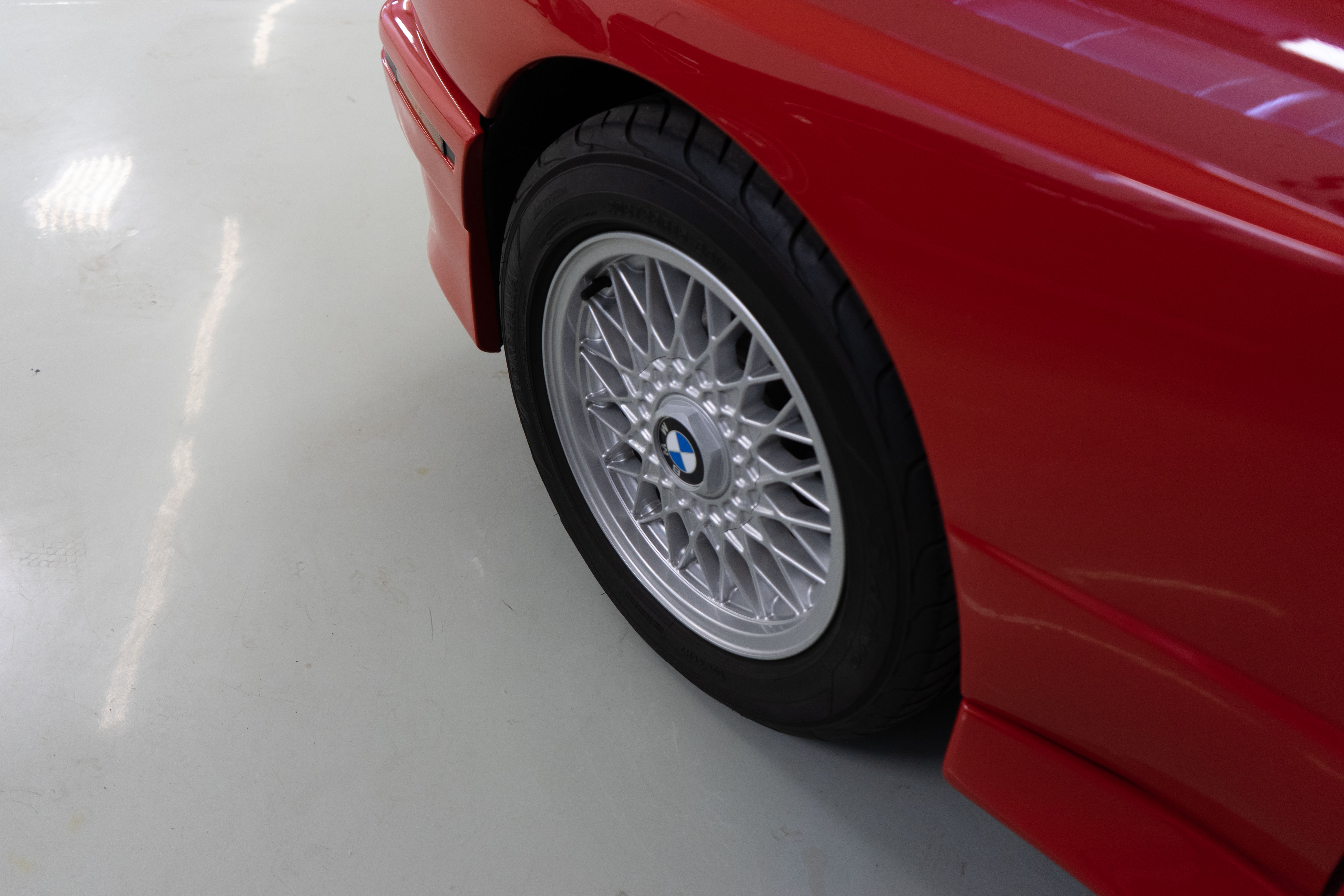 This example is a 1989 E30 M3 finished in Cinnabar Red with a black leather interior. This M3 currently shows just over 108,000 miles on the odometer and is a great ‘drivers’ example. The car has minor bolt-on modifications including a front strut crossmember, an aftermarket cat-back exhaust, and an Alpine radio. The paint is consistent throughout the car and shows minor indications of a previous repaint. Inside, the leather interior is consistent with only minor signs of use.