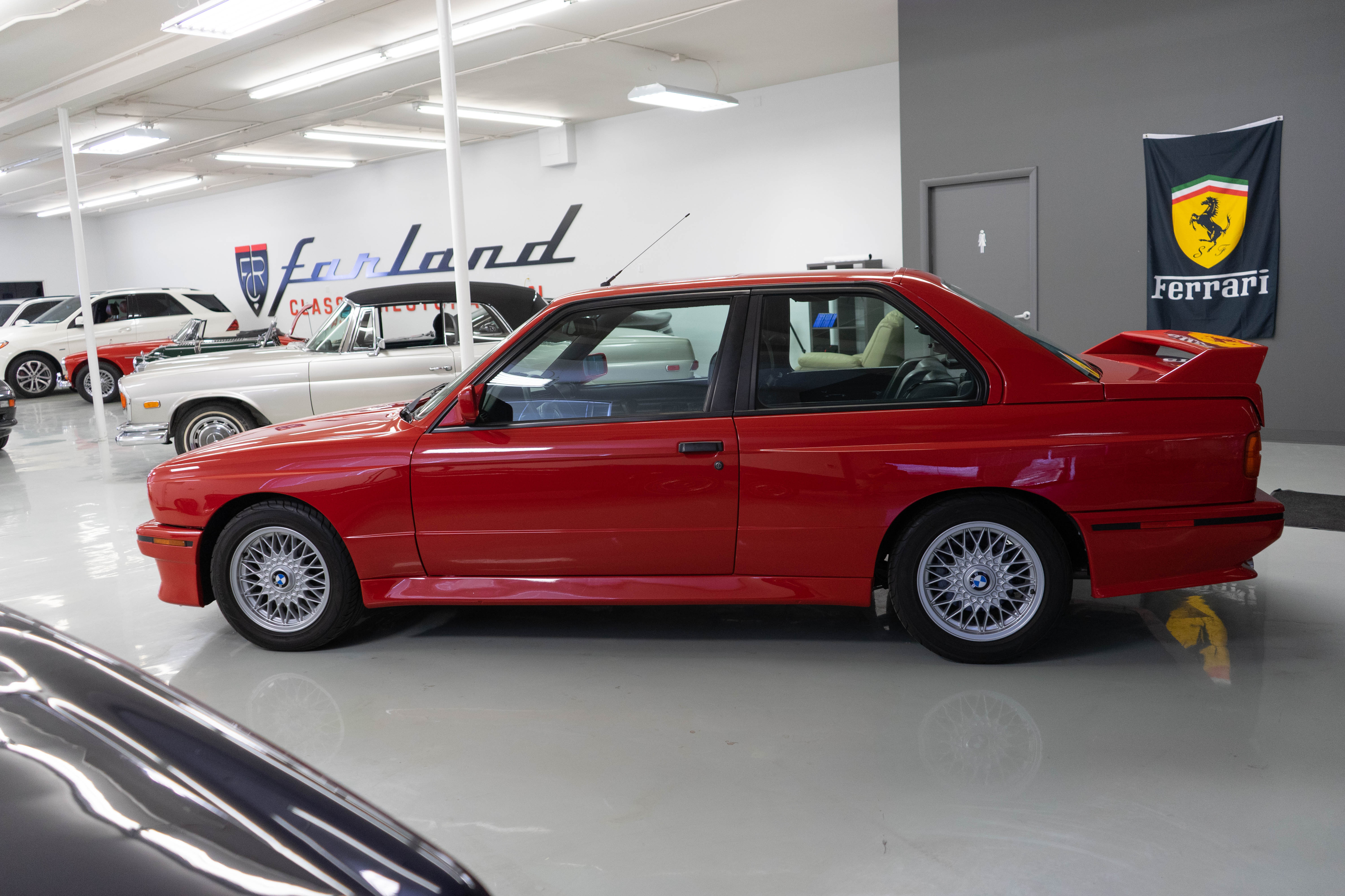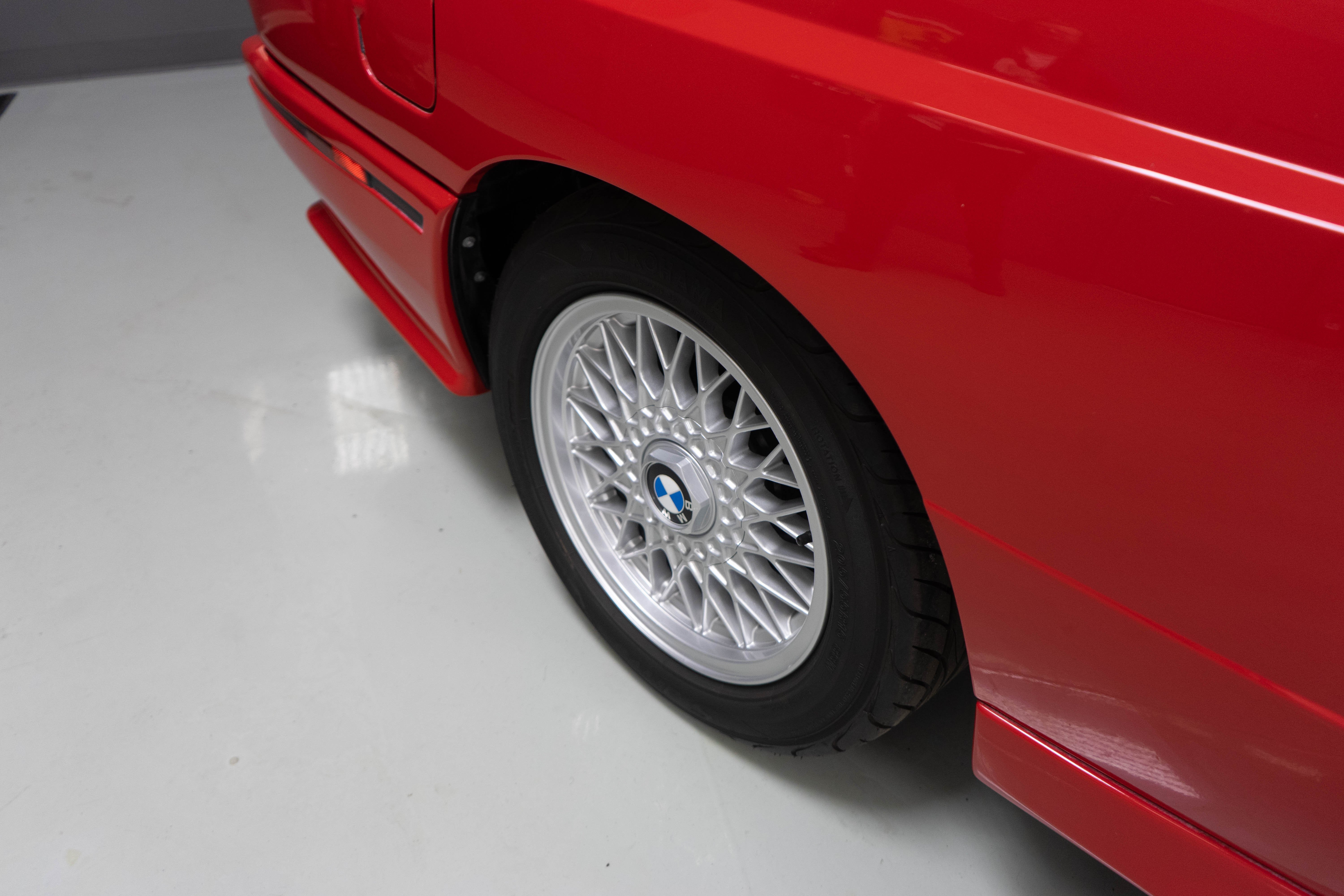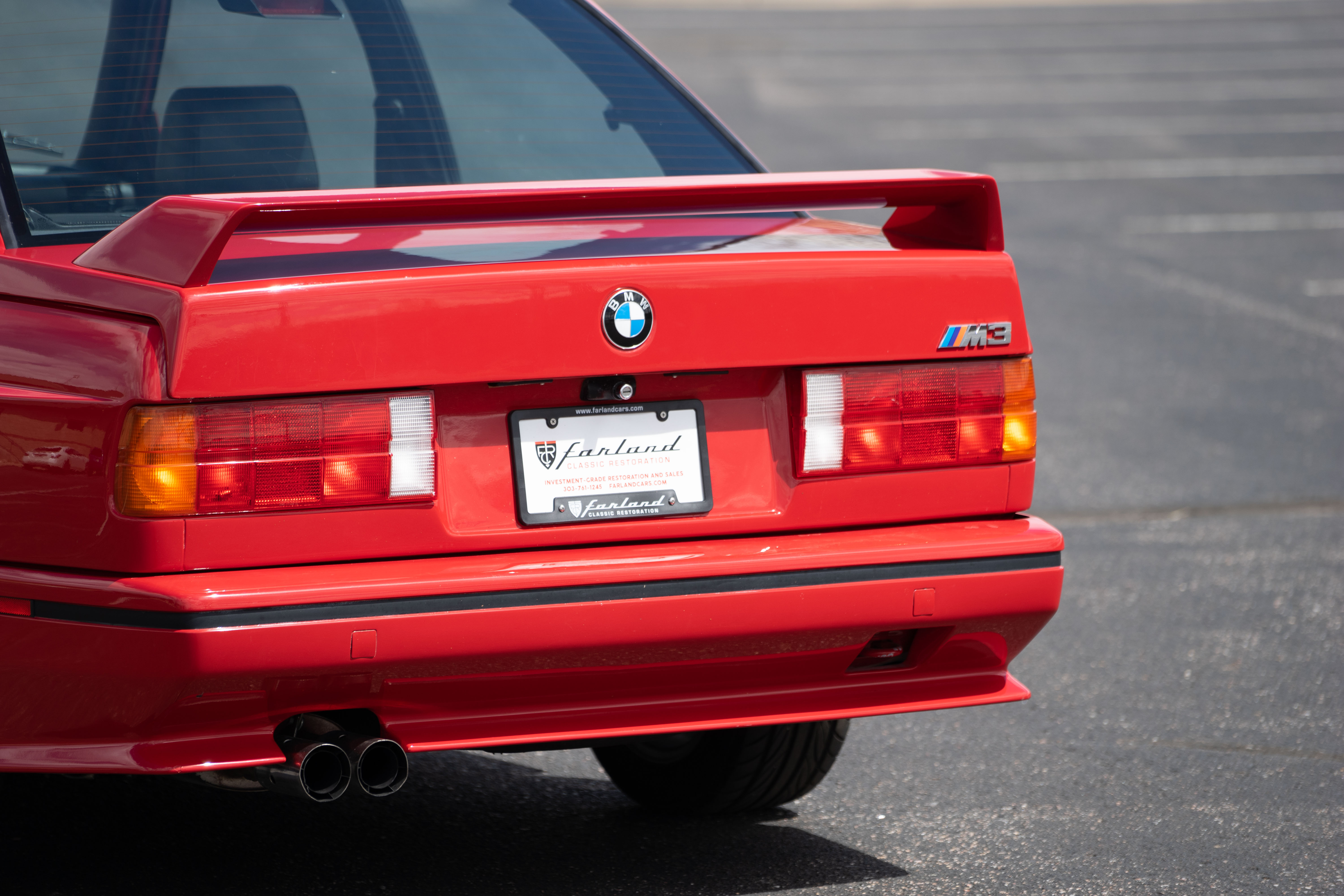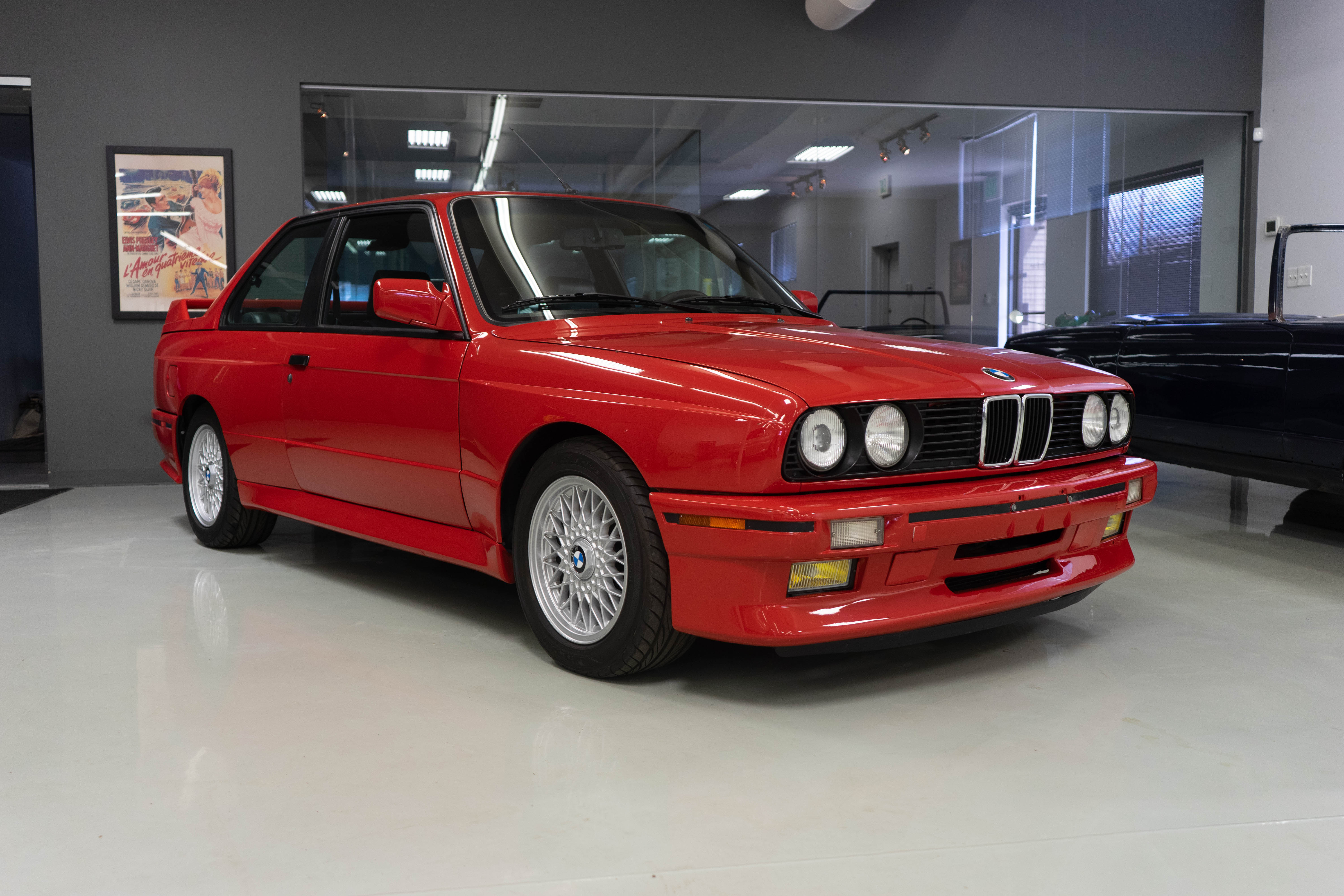 This example is a 1989 E30 M3 finished in Cinnabar Red with a black leather interior. This M3 currently shows just over 108,000 miles on the odometer and is a great ‘drivers’ example. The car has minor bolt-on modifications including a front strut crossmember, an aftermarket cat-back exhaust, and an Alpine radio. The paint is consistent throughout the car and shows minor indications of a previous repaint. Inside, the leather interior is consistent with only minor signs of use.