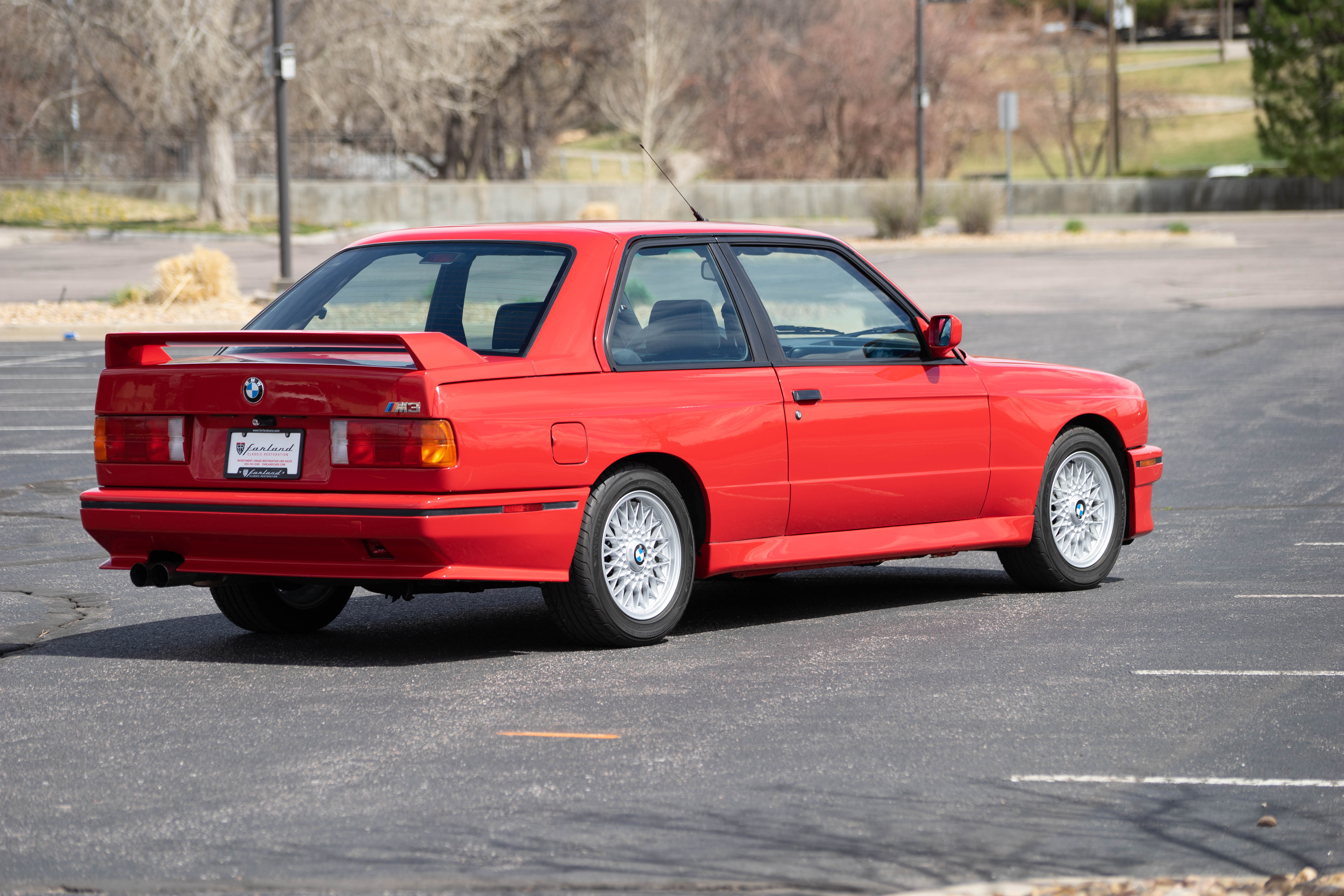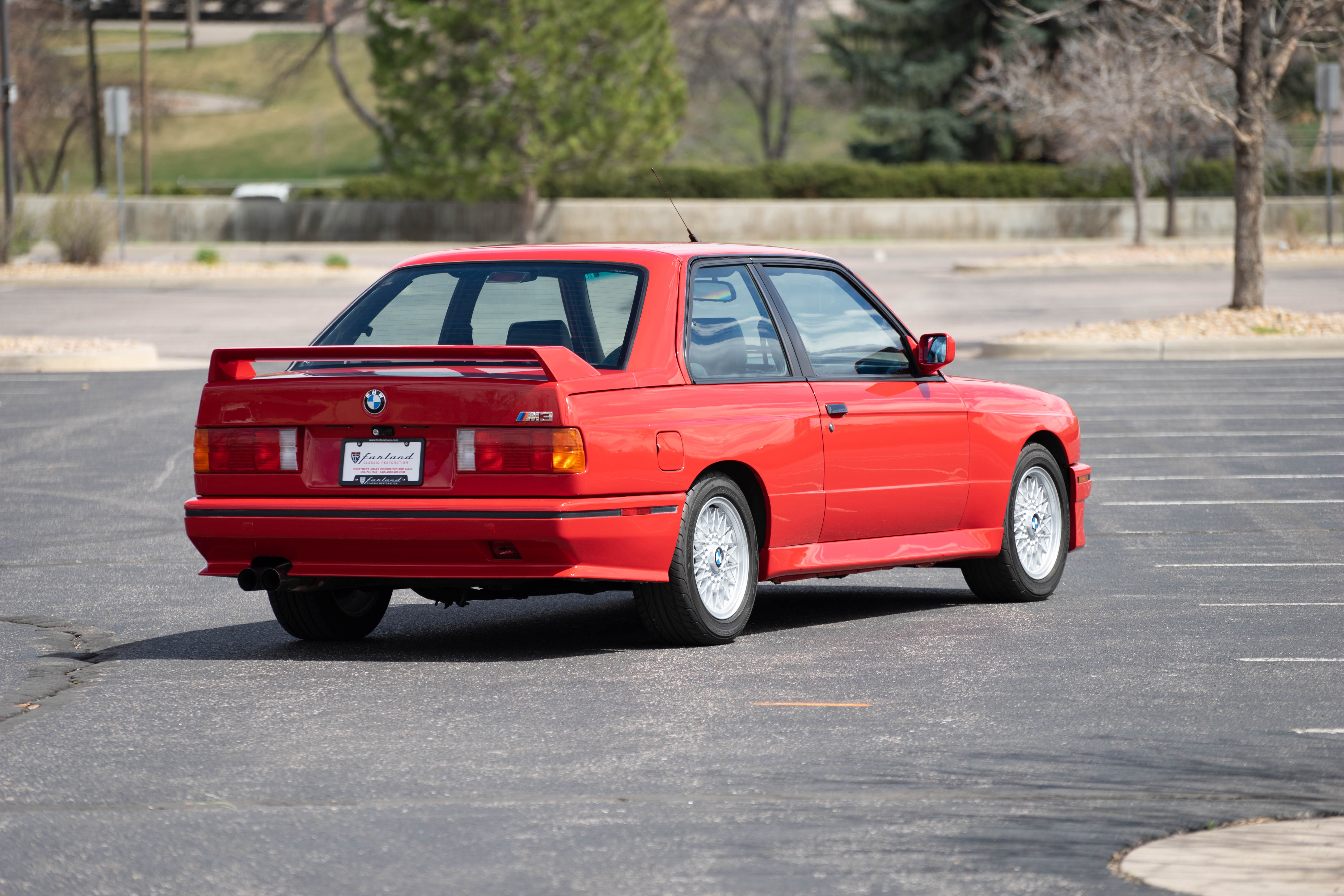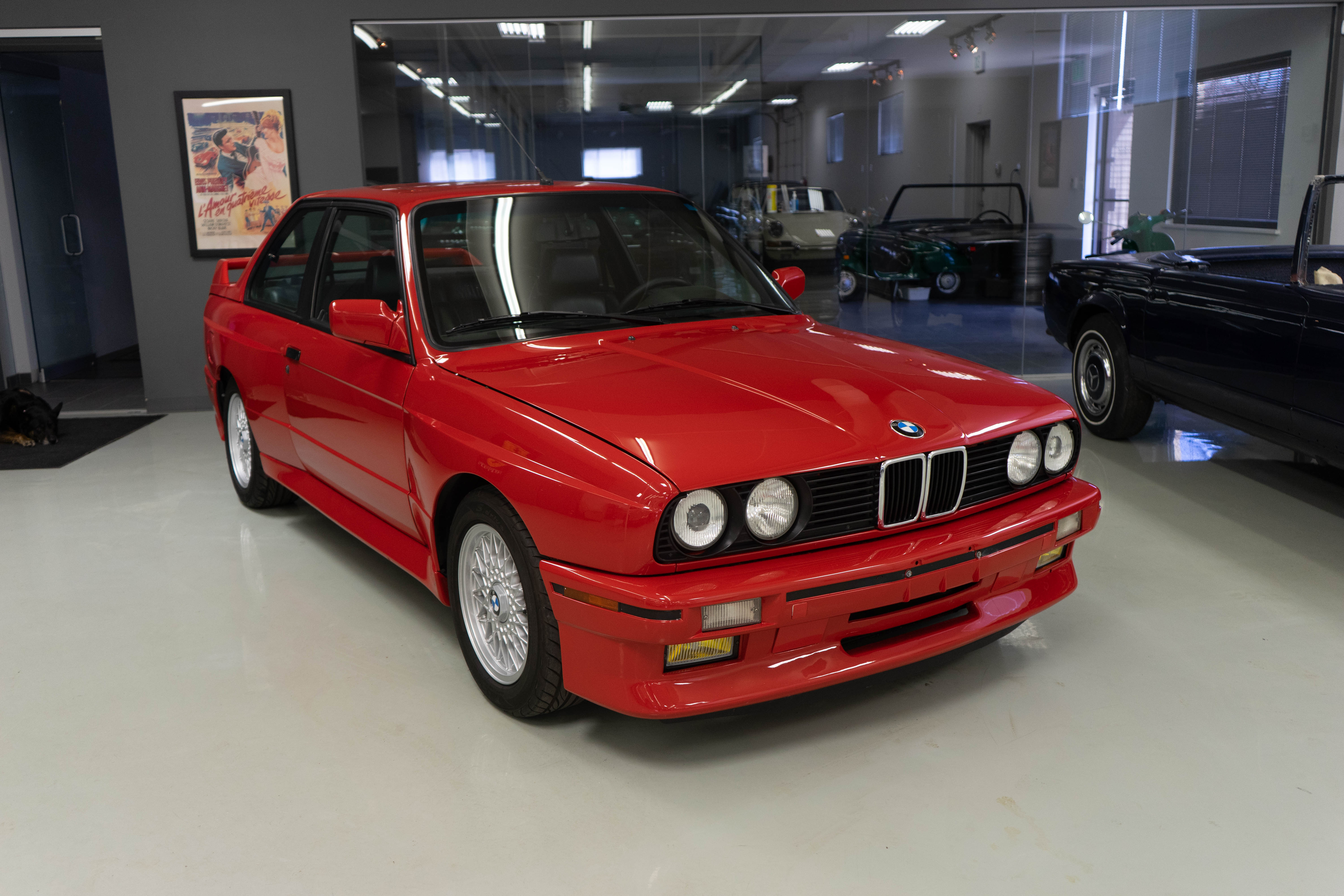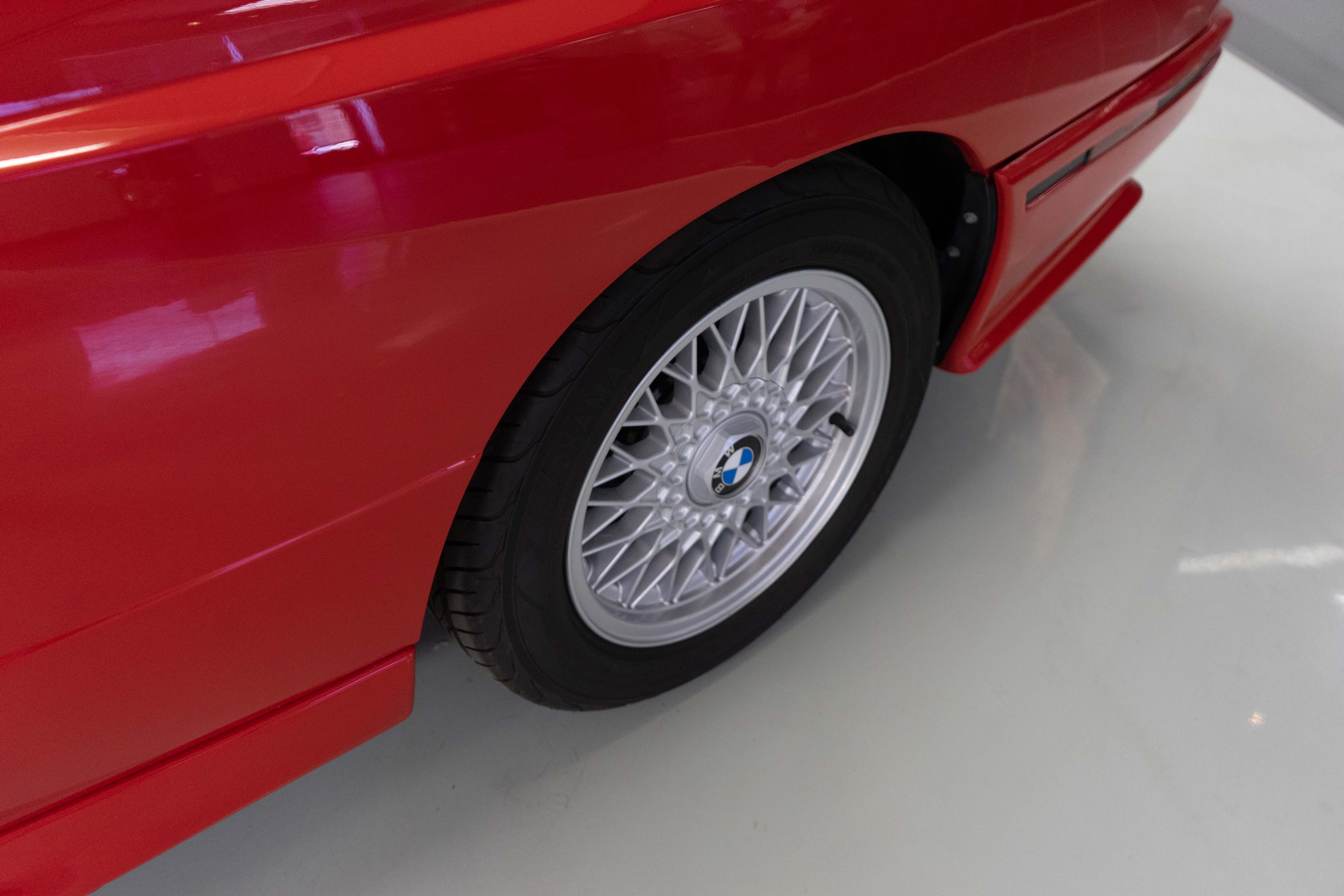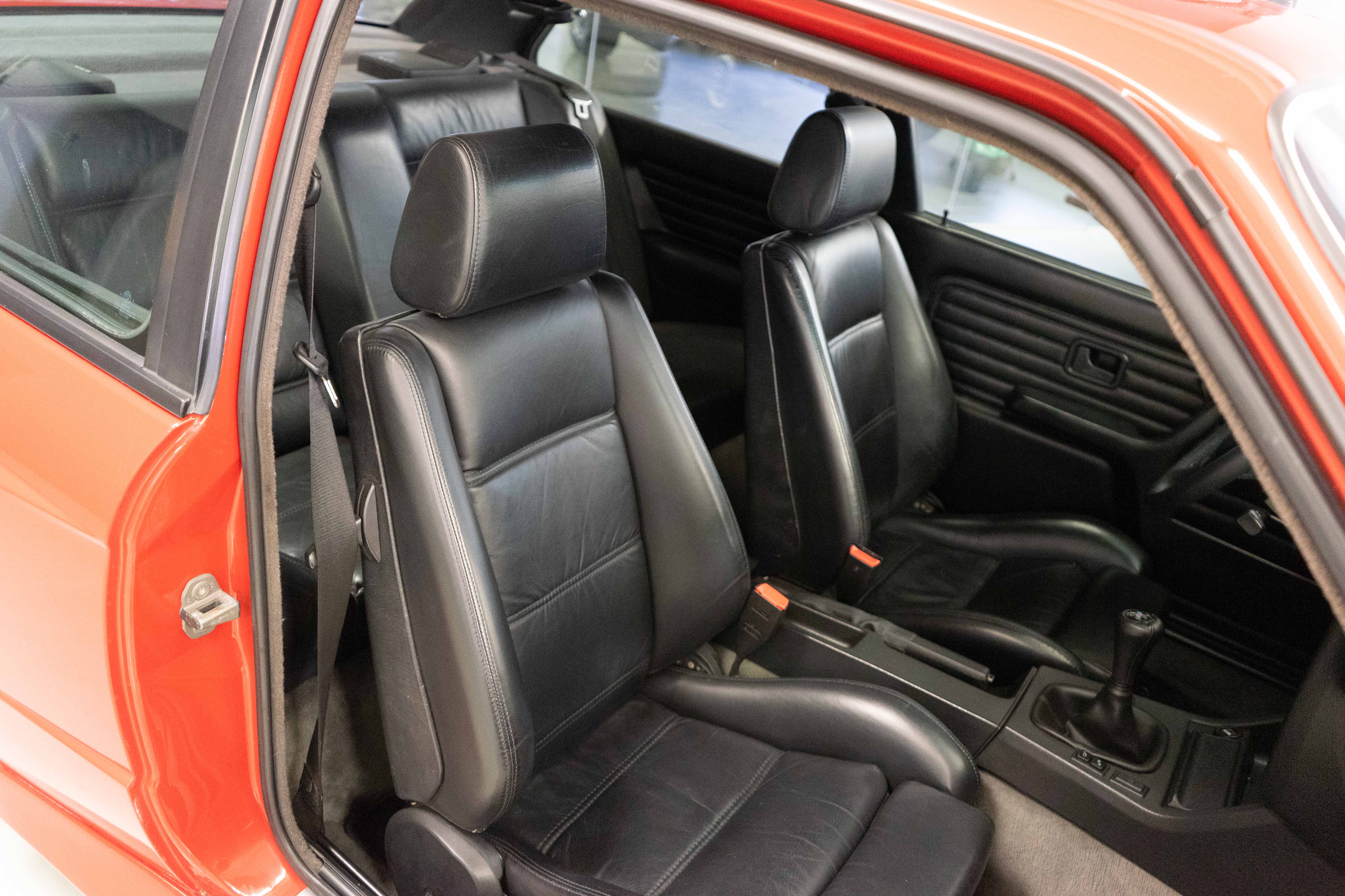 This example is a 1989 E30 M3 finished in Cinnabar Red with a black leather interior. This M3 currently shows just over 108,000 miles on the odometer and is a great ‘drivers’ example. The car has minor bolt-on modifications including a front strut crossmember, an aftermarket cat-back exhaust, and an Alpine radio. The paint is consistent throughout the car and shows minor indications of a previous repaint. Inside, the leather interior is consistent with only minor signs of use.