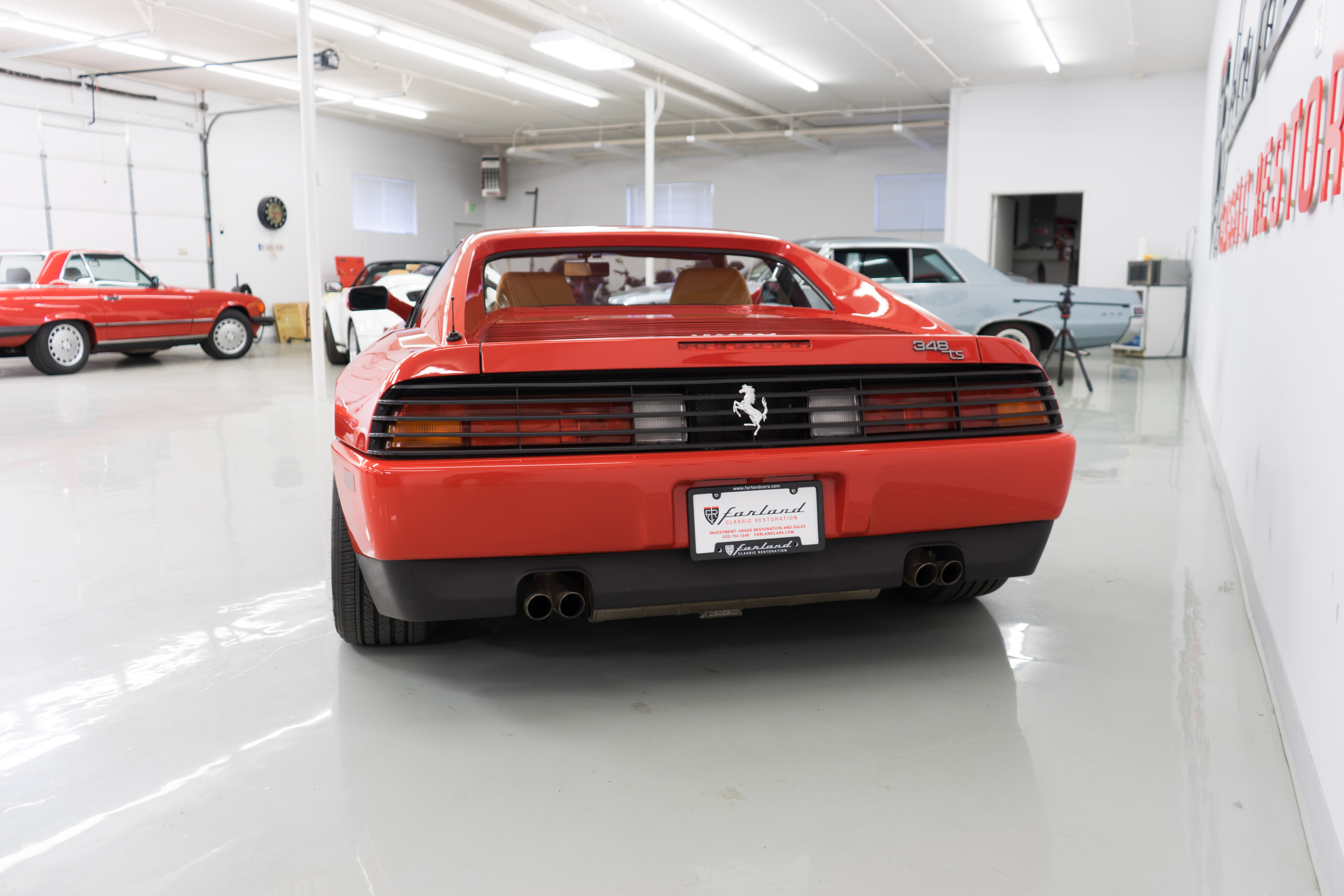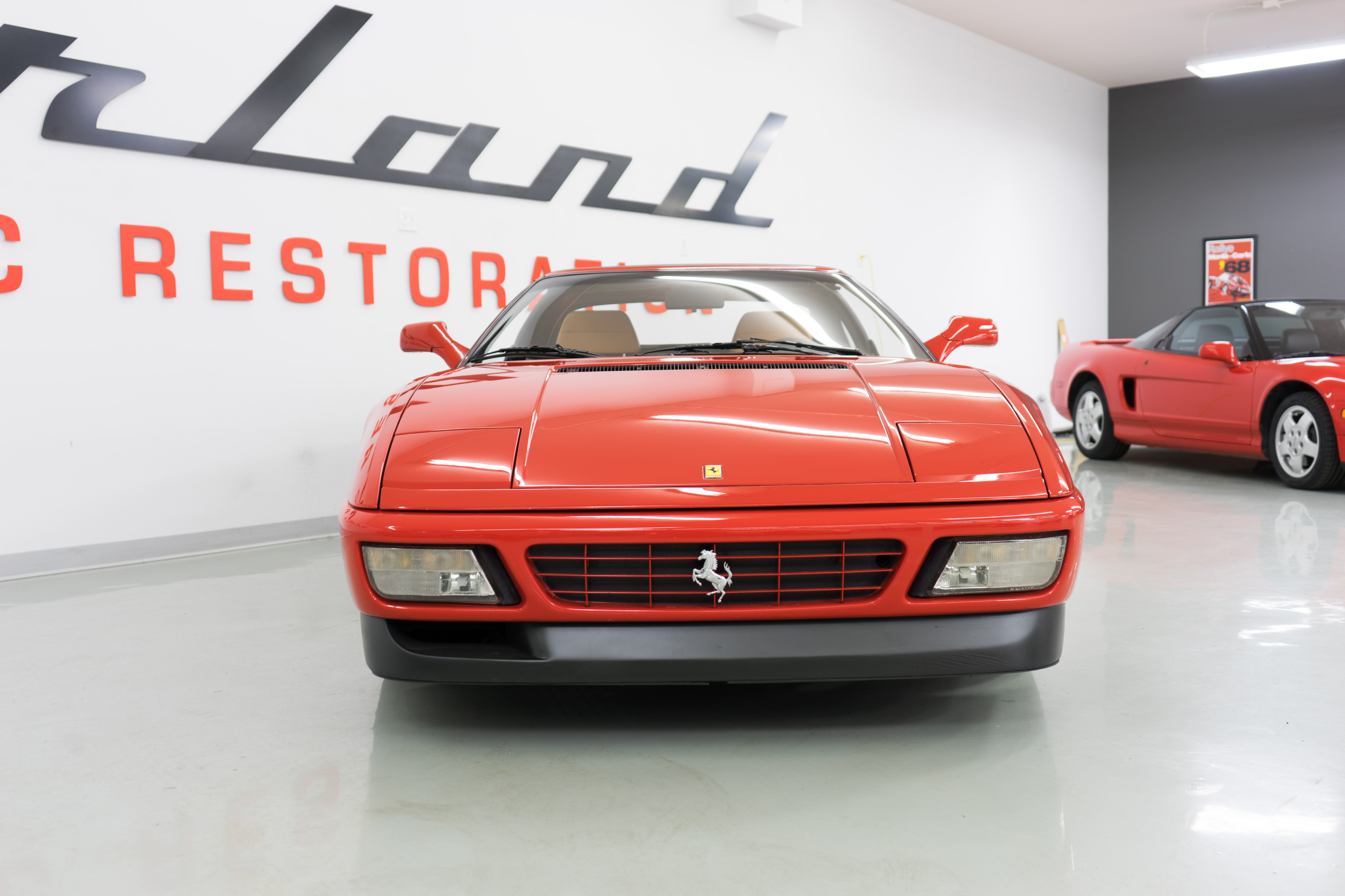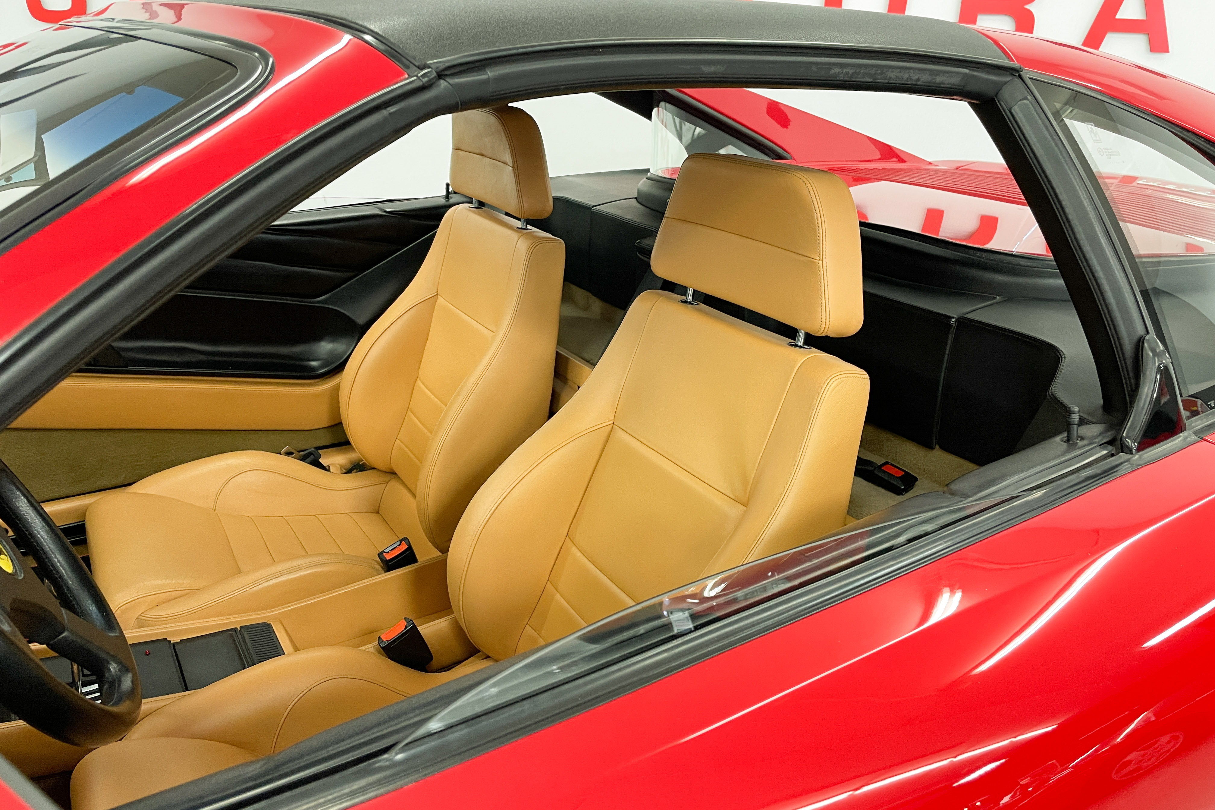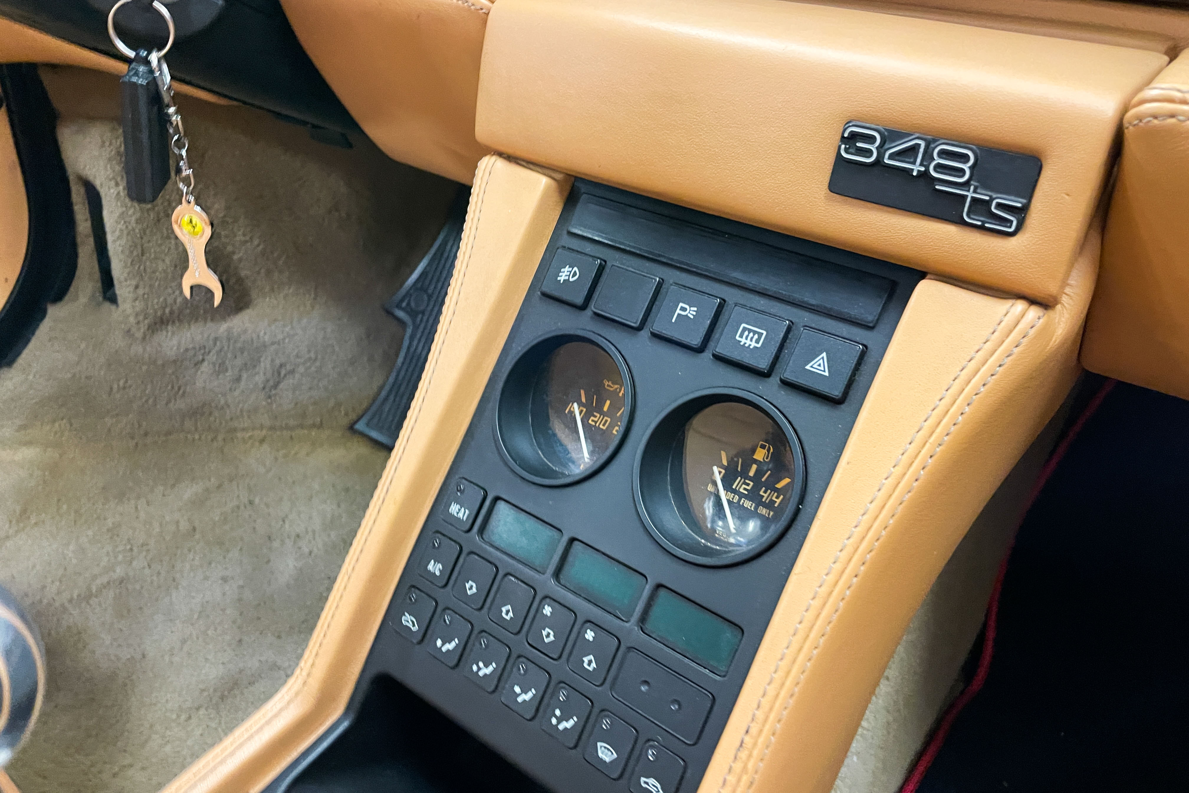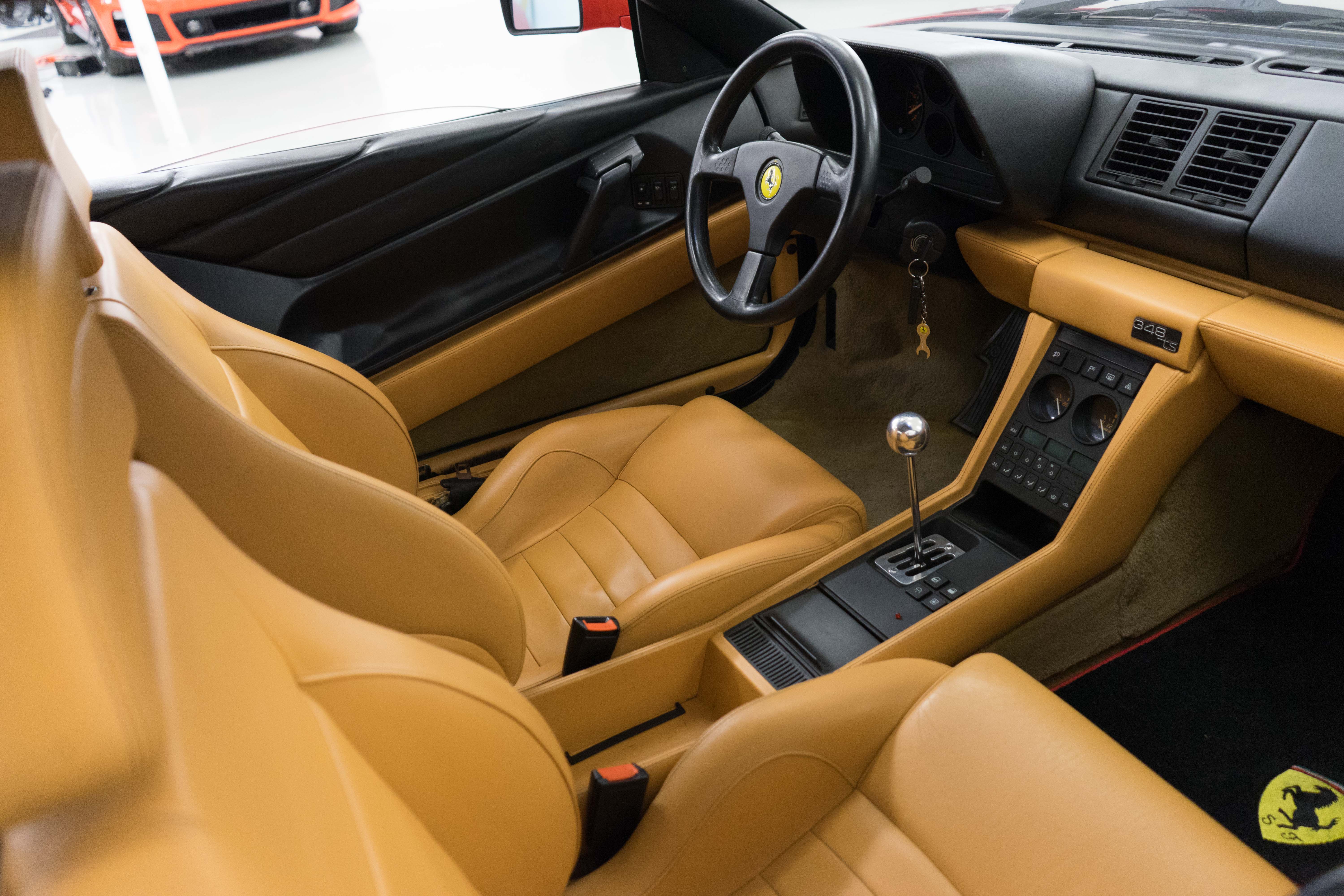 A car cover is included, along with two different sets of floor mats. None of the wheels are curbed and it has a recent set of Michelin Pilots & new battery.The 348 model broke a lot of new ground for Ferrari after the analog 308 & 328 models, delivering 25% more horsepower, stronger ABS brakes and new Testarossa-inspired styling The redesign lowered the engine in the chassis seven inches, which with a wider track, dramatically improved handling. The side-mounted radiators meant 220* coolant was no longer being routed through the passenger compartment (!), making the A/C and driving comfort much better!As a brand-new design, there were some teething problems in the early ’89-’91 348s, but by 1992 all that was resolved and most pundits know a ’92 or newer is the one to have. But, for absolutely no logical reason, a 348 today is less expensive than a comparable 328!! Crazy, but you can certainly take advantage of this anomaly.