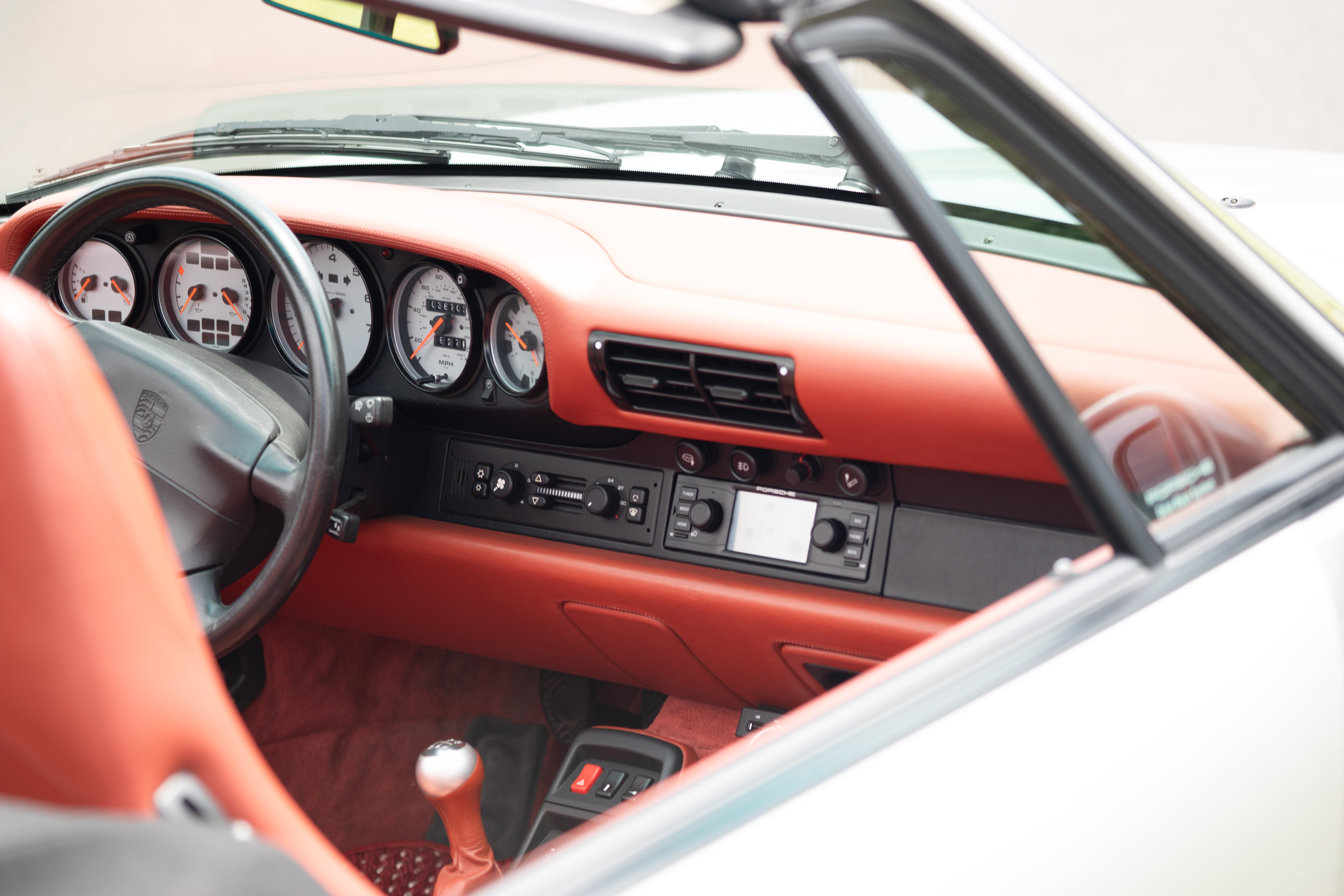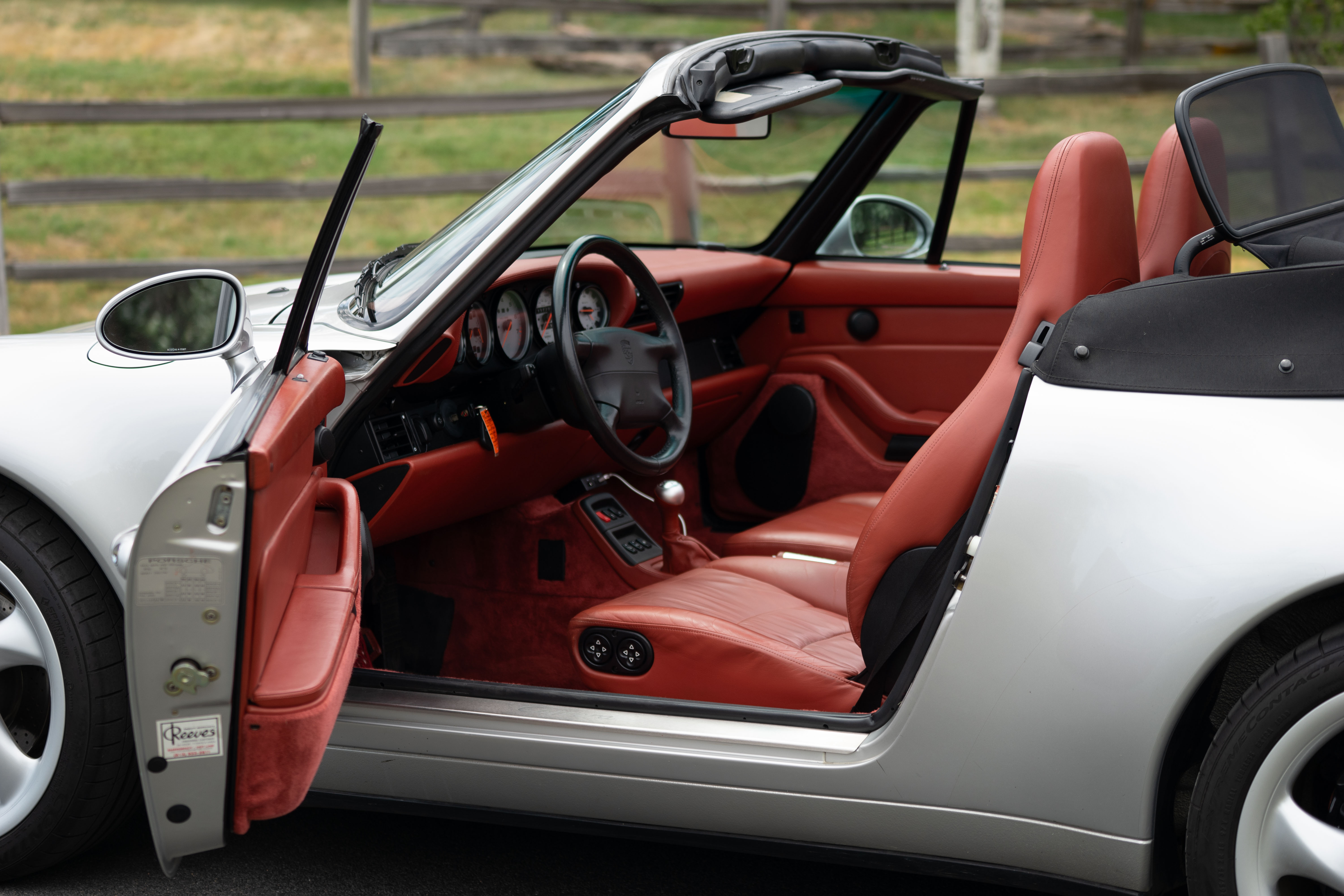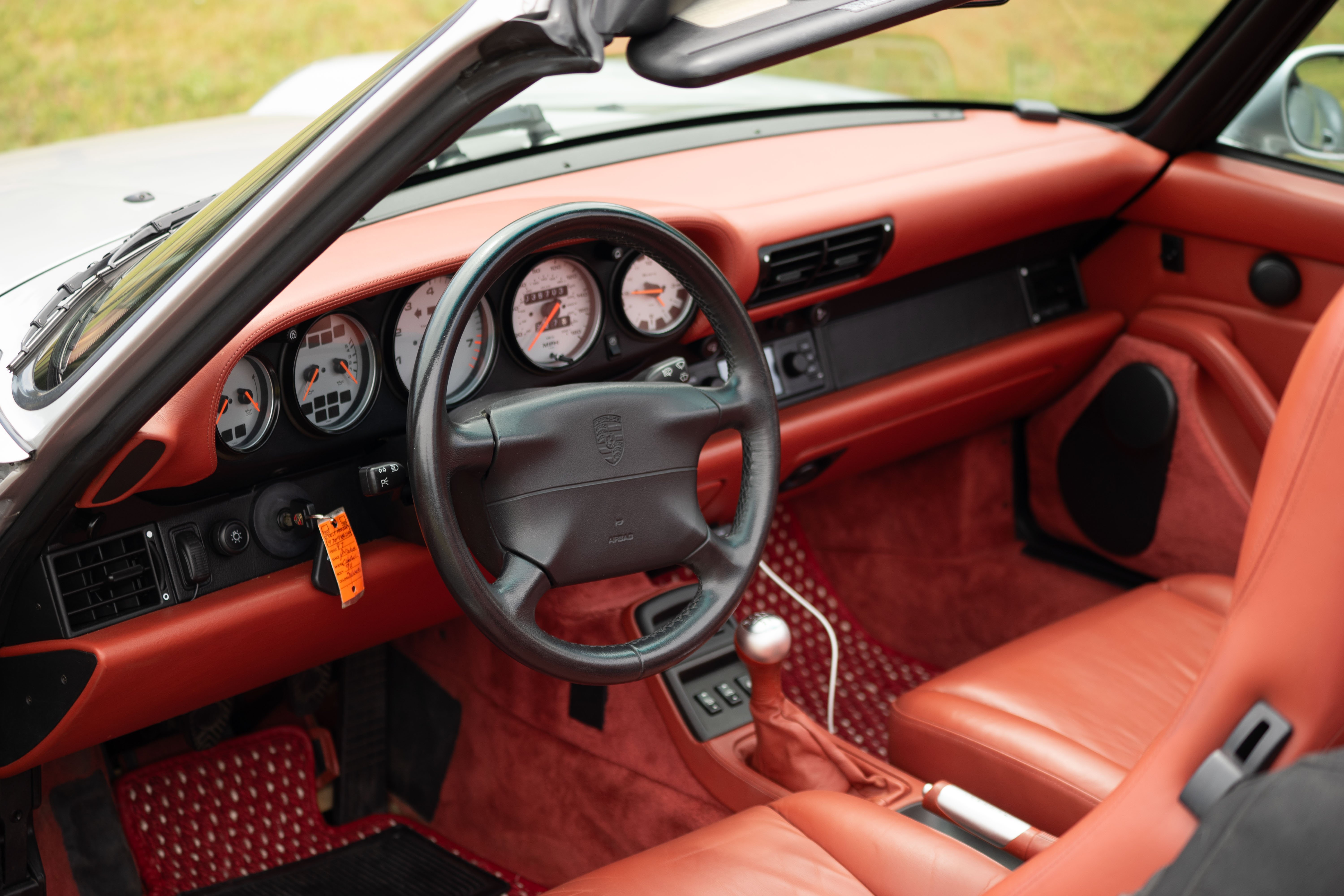 This 1997 Porsche 911 (993) Carrera Cabriolet is a rare blend of classic air-cooled purity and exclusive, special-order flair. Originally finished in Arctic Silver Metallic (code L92U), this car was custom-built through Porsche’s Exclusive program with a dramatic interior upgrade: special-order Boxster Red full leather, including dash, center console, door panels, and plush carpets — a $3,700+ bespoke option that transforms the cabin into a truly unique space.