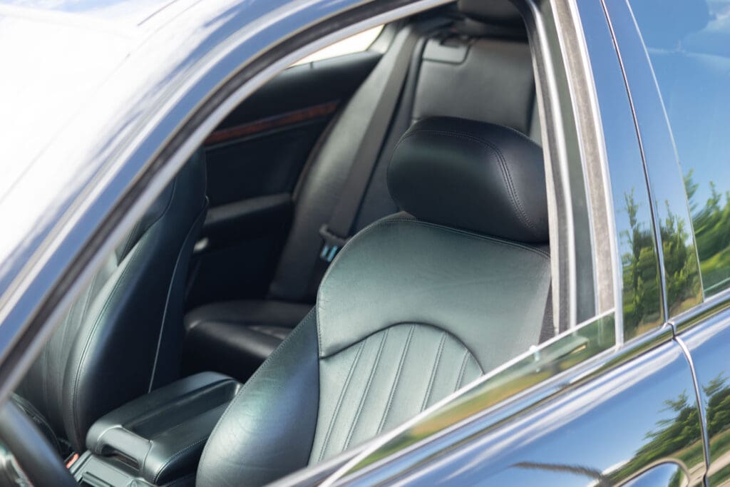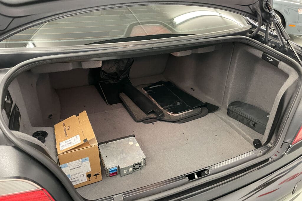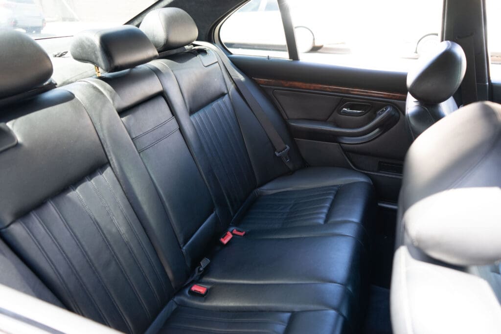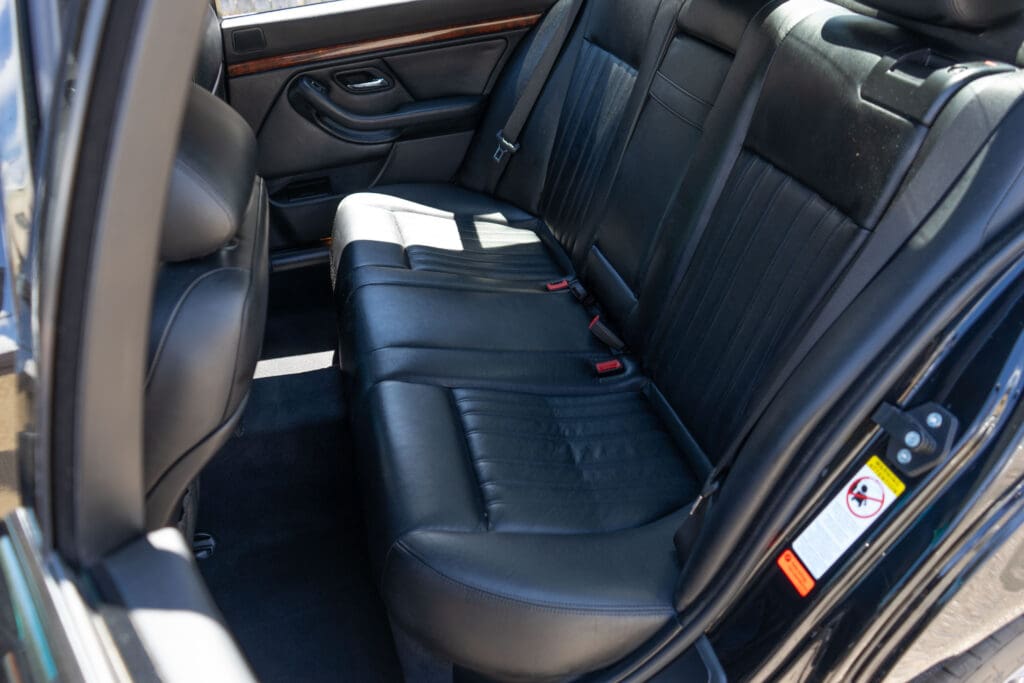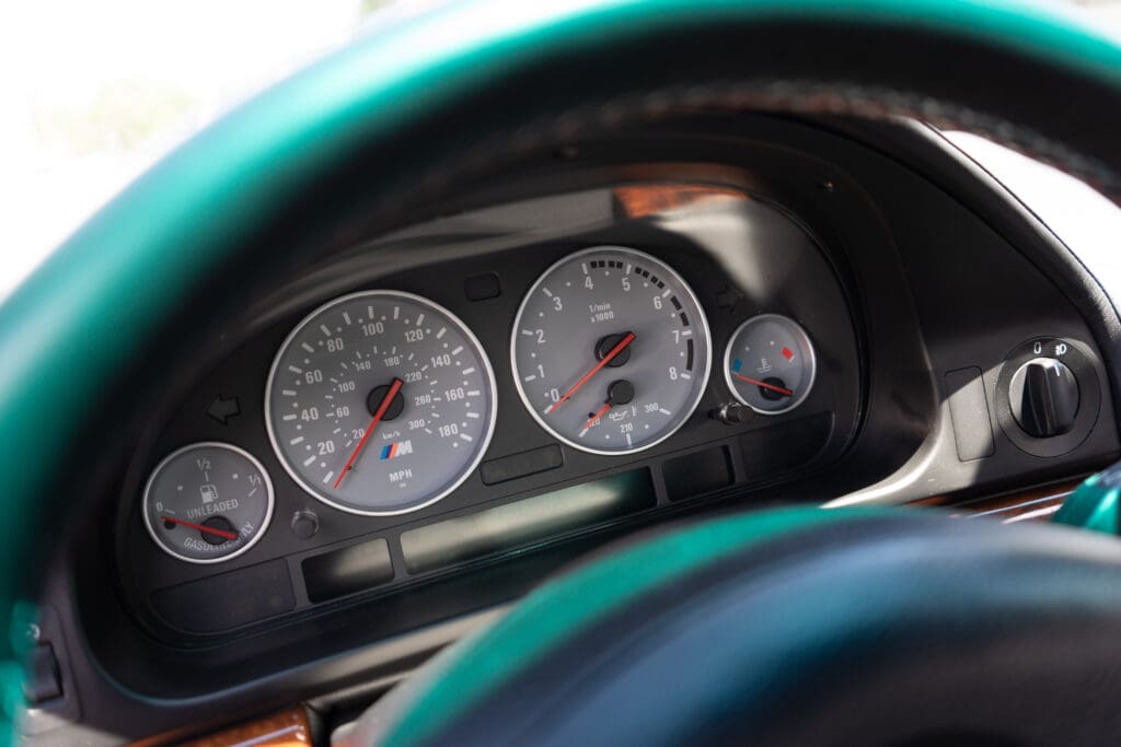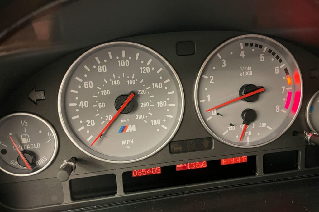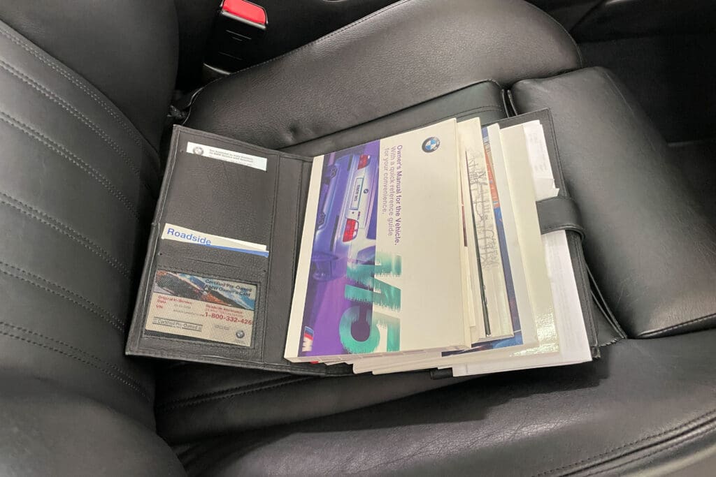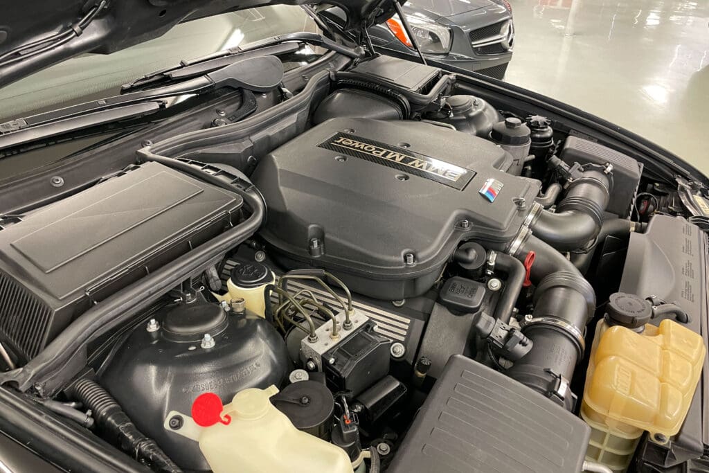 The E39 BMW M5 is one of the great European Autobahn blazers. This example, in Black II over Black interior is in excellent condition. Showing just over 85,000 miles, the interior and exterior have held up beautifully. Our shop just did a complete detail, so it’s looking its best. The 5-liter, 32 valve V8 DOHC engine brings 394hp and simply rips. The complete leather interior is in terrific shape and the exterior body and paint are excellent as well. Some chips appear along the front of the hood and bumper, and the headlight plastic covers are very, very slightly hazed. Wheels are all in very good shape. Some very light scuffs appear on a couple of them.