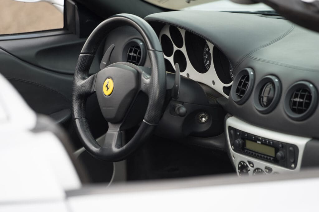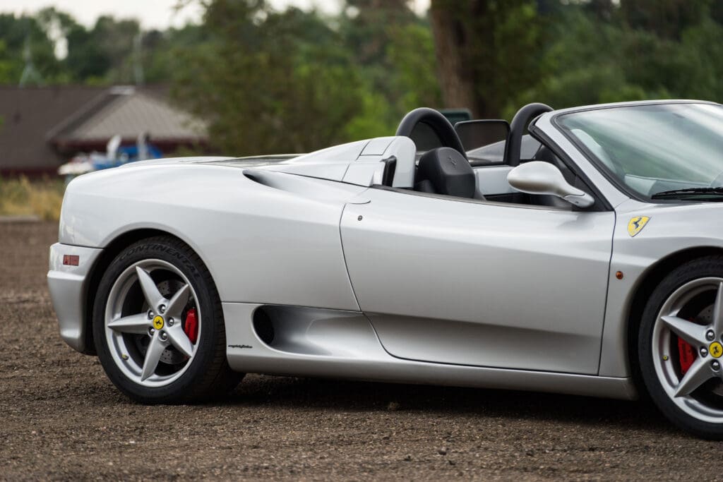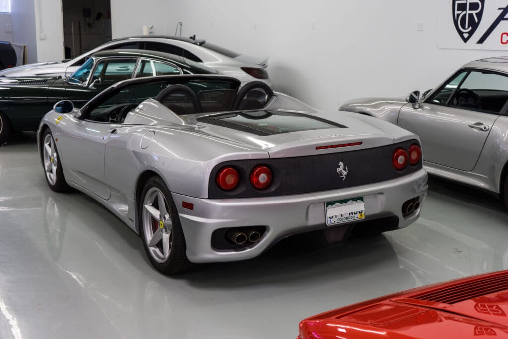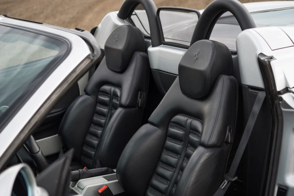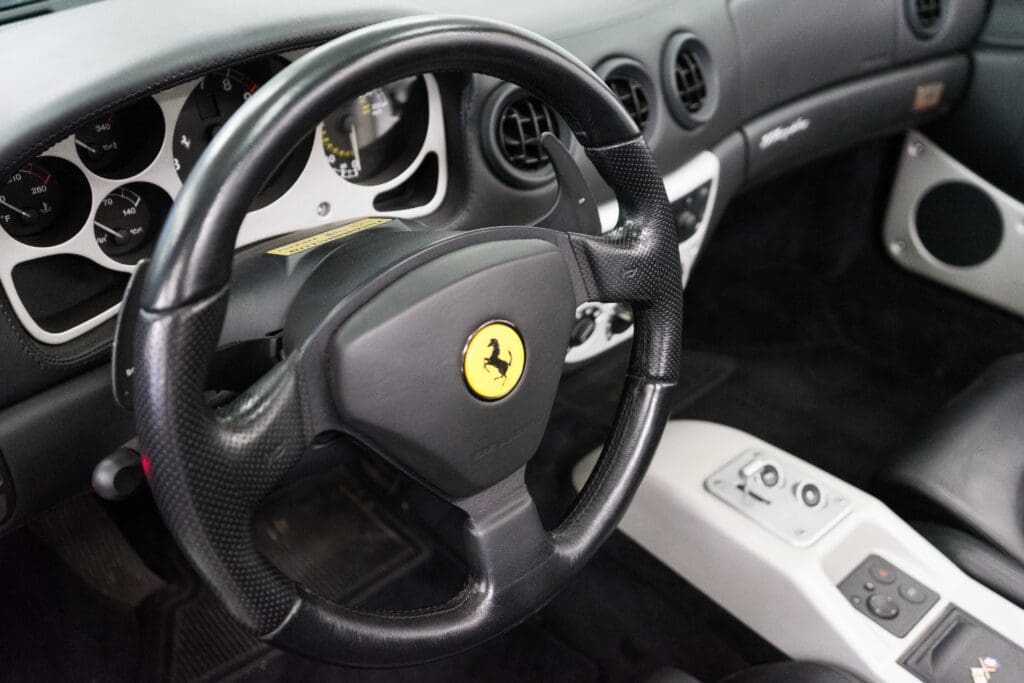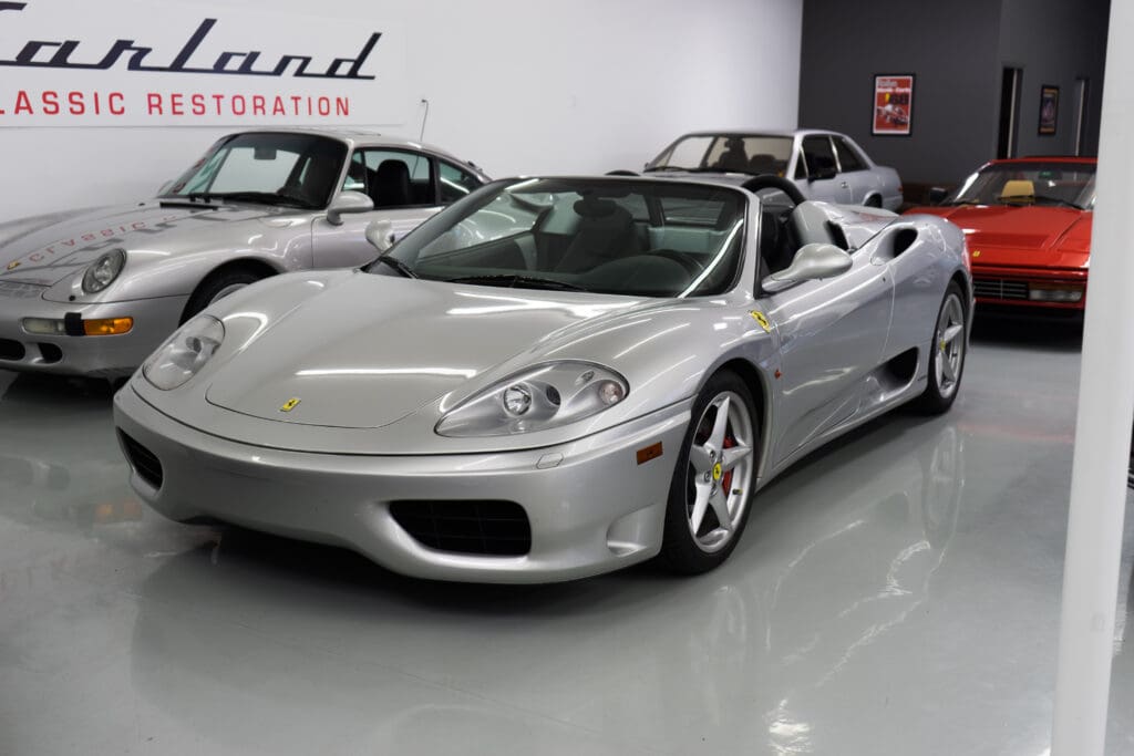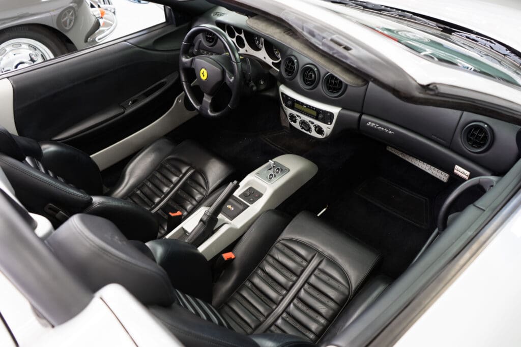 By far, the biggest bargain in the Ferrari market today is the 360 series. An all-new design departure from the 348 and 355 generation with their demanding engine-out service requirements, the 360 was faster, lighter and carried many much-improved technologies. Most notable of those was the second-generation F1 paddle-shift transmission. This new design shifted faster, smoother and even had an ‘automatic’ mode for relaxed driving. Since being introduced in 1999, the new F1 transmission has demonstrated amazing reliability and owner satisfaction. (Yeah, yeah, yeah, there was the flurry of demand for the few manual 6-speed cars a couple years ago, but that has settled down to just another passing fad.)This Spider was delivered new by Chas Pozzi, the Ferrari distributor in Paris, but it was brought to the US and fully federalized almost immediately. (That’s when Ferrari had a two-year wait for new cars in the US). It has been titled and registered in the States ever since. Ordered in popular silver/black, the factory options include red brake calipers, Scuderia shields on the fenders, Daytona seats and the rear Challenge grille. We have all of the original owner’s books in their leather pouch—with the flashlight—all three keys & alarm remotes plus all the tool kits and car cover. Only 10K miles, accident-free CarFax, of course, plus new tires and battery. A full major service with factory-recommended upgrades and cam belts was recently done. Think about it: 400 horsepower, F1 shifting, traction control, ABS, power convertible top, air bags, power steering and great A/C in an aluminum unibody…all for today’s price of a 308!!