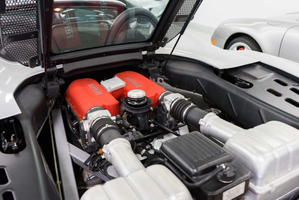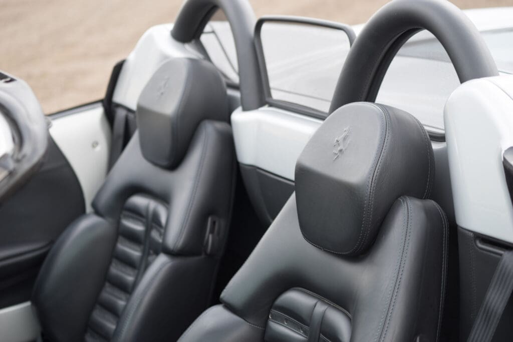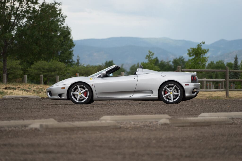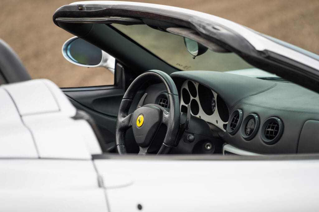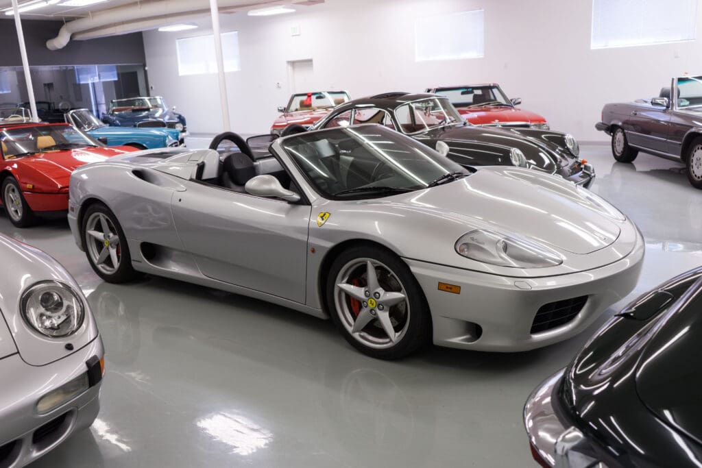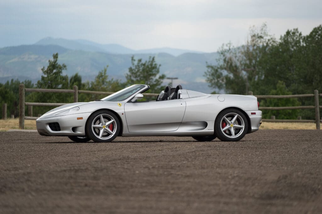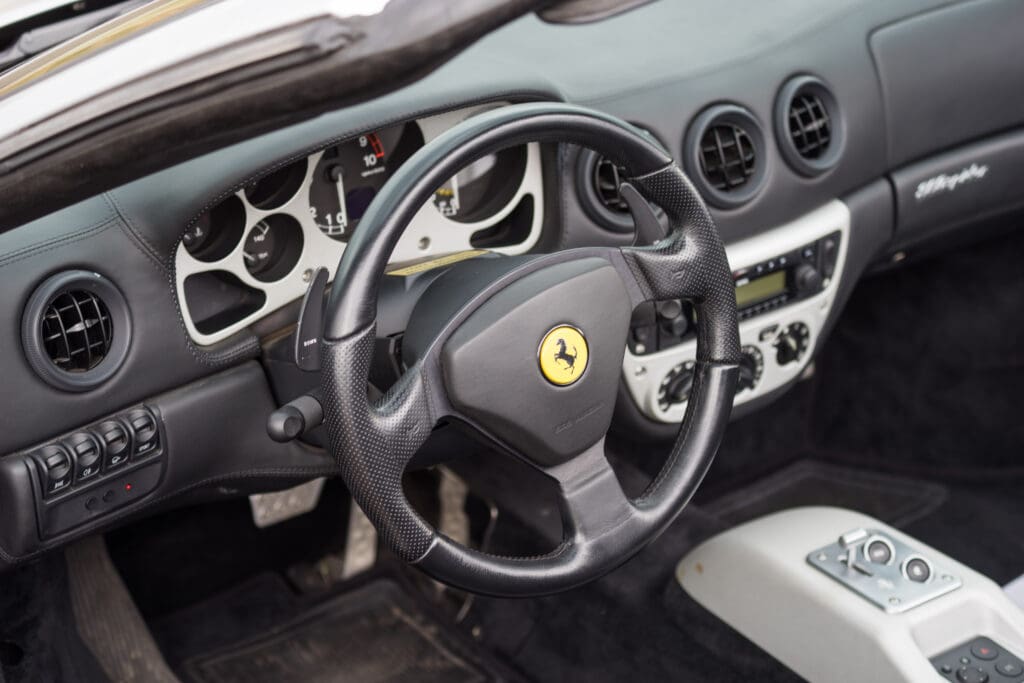 By far, the biggest bargain in the Ferrari market today is the 360 series. An all-new design departure from the 348 and 355 generation with their demanding engine-out service requirements, the 360 was faster, lighter and carried many much-improved technologies. Most notable of those was the second-generation F1 paddle-shift transmission. This new design shifted faster, smoother and even had an ‘automatic’ mode for relaxed driving. Since being introduced in 1999, the new F1 transmission has demonstrated amazing reliability and owner satisfaction. (Yeah, yeah, yeah, there was the flurry of demand for the few manual 6-speed cars a couple years ago, but that has settled down to just another passing fad.)This Spider was delivered new by Chas Pozzi, the Ferrari distributor in Paris, but it was brought to the US and fully federalized almost immediately. (That’s when Ferrari had a two-year wait for new cars in the US). It has been titled and registered in the States ever since. Ordered in popular silver/black, the factory options include red brake calipers, Scuderia shields on the fenders, Daytona seats and the rear Challenge grille. We have all of the original owner’s books in their leather pouch—with the flashlight—all three keys & alarm remotes plus all the tool kits and car cover. Only 10K miles, accident-free CarFax, of course, plus new tires and battery. A full major service with factory-recommended upgrades and cam belts was recently done. Think about it: 400 horsepower, F1 shifting, traction control, ABS, power convertible top, air bags, power steering and great A/C in an aluminum unibody…all for today’s price of a 308!!