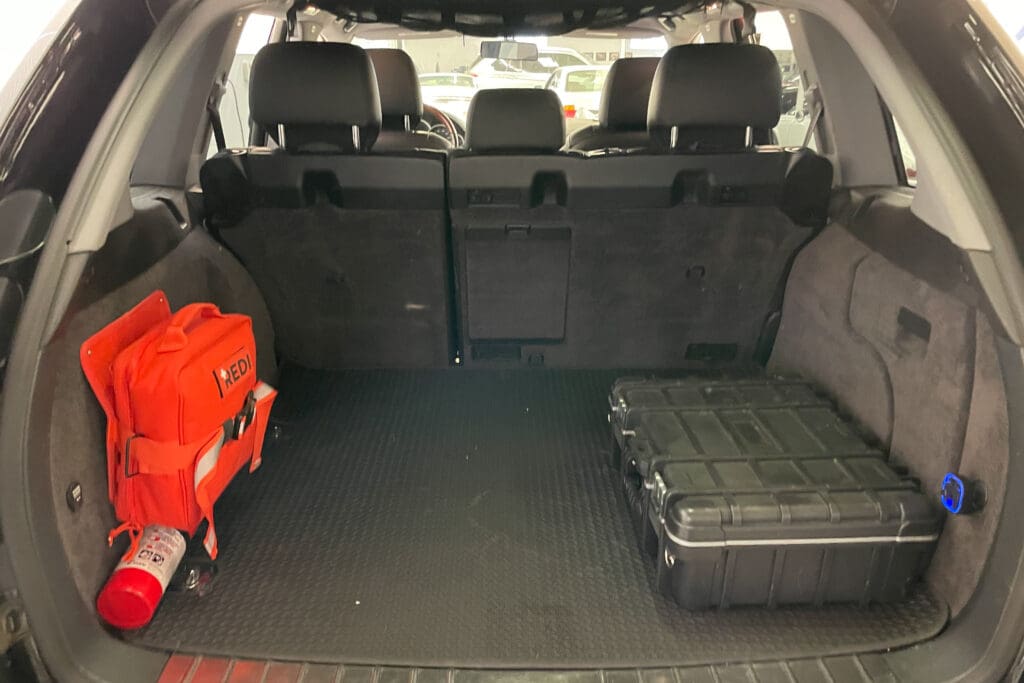 Black leather interior in very good condition. Driver’s seat is in good condition for the mileage. All other seats in great condition. All stock as far as electronics and Porsche equipment go. Currently using a simple bluetooth adapter for music – tunes to FM.