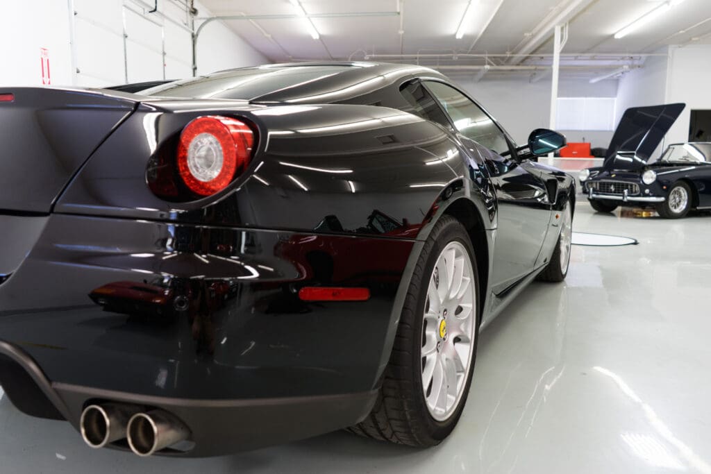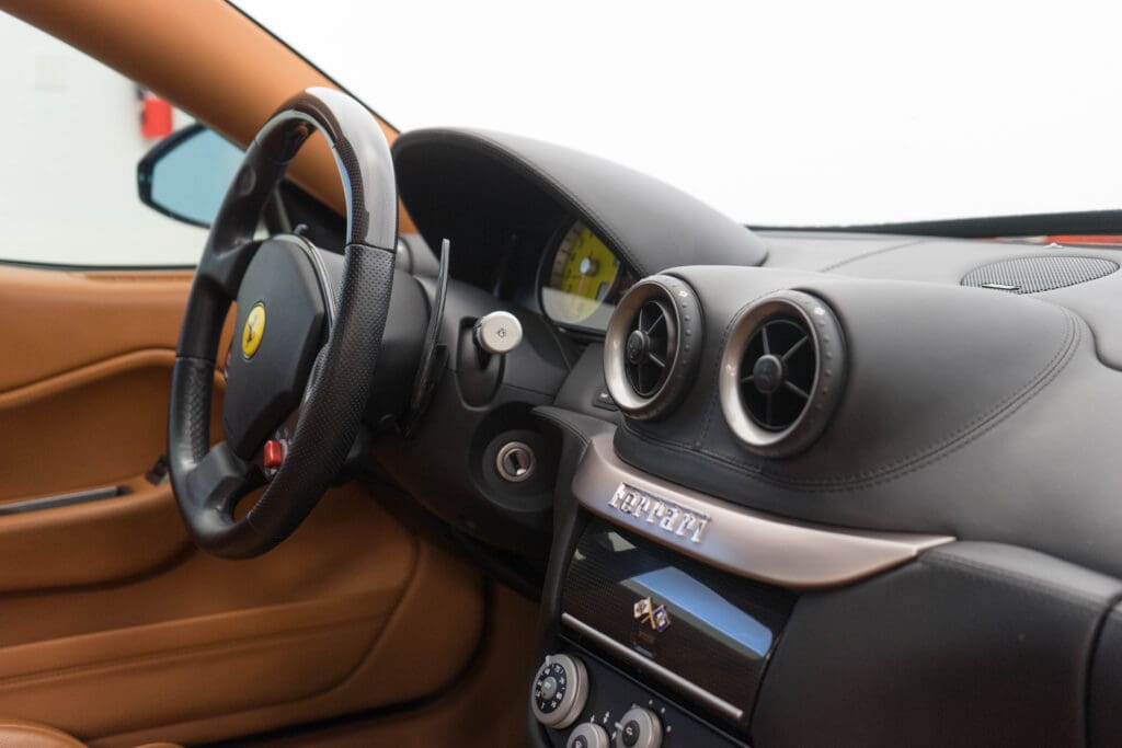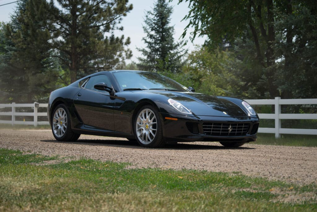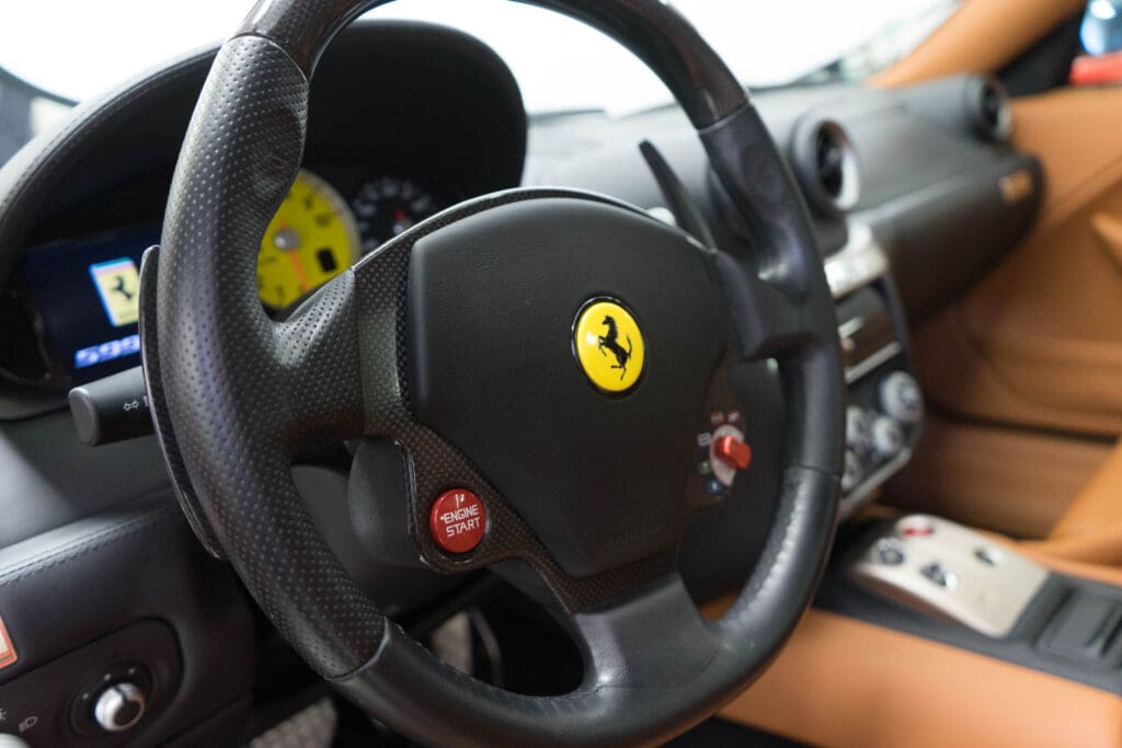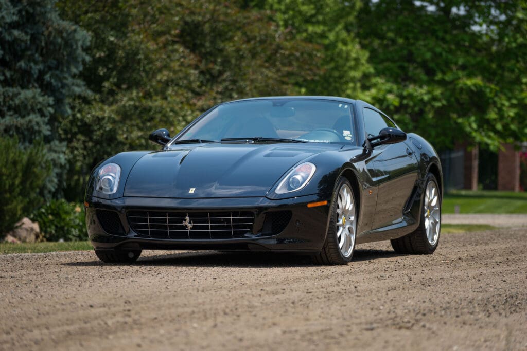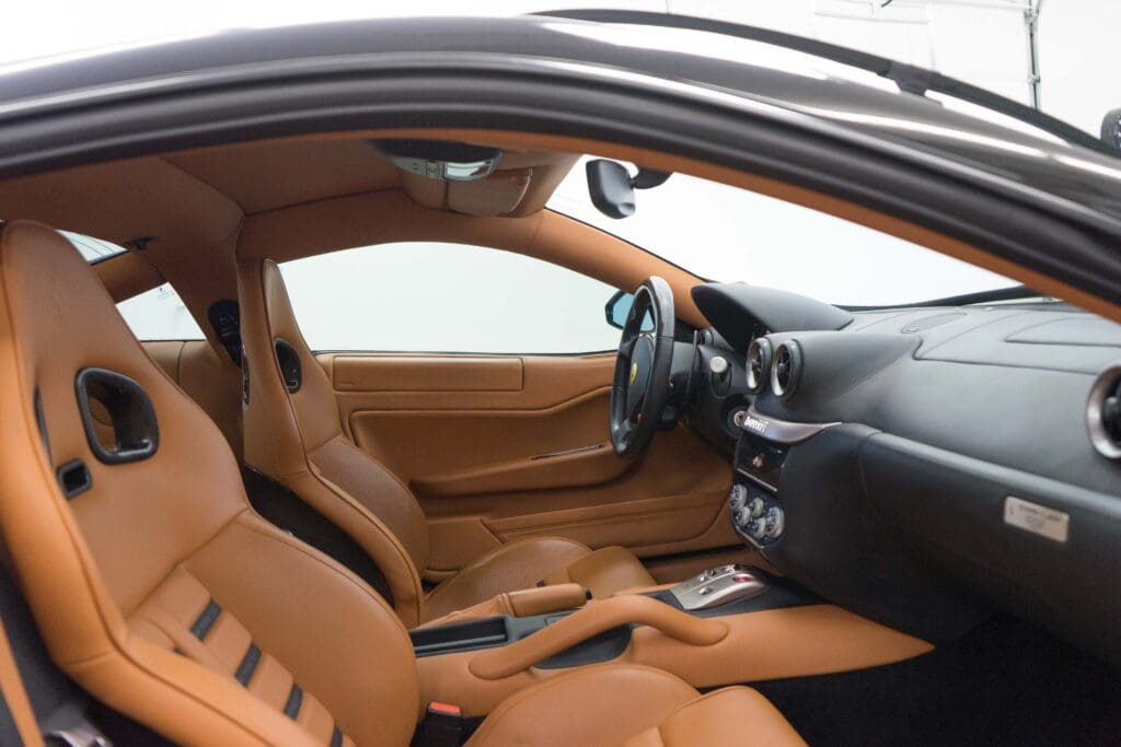 The exterior is unmarked non-metallic Black trimmed with Natural (Cuoio) leather accented with black carpets, piping and Daytona-pattern seat stripes. Other options include the carbon fiber steering wheel; with progressive LEDs tied to the tach, carbon Driving Zone, the 20” Monolithic wheels over carbon-ceramic brakes, leather headliner and full-power Recaro seats, just to name a few! Of course, it has a perfectly clean CarFax report, has never been damaged, touched up or smoked in. The nose has always been protected by 3M ChipGuard and has scrape pads underneath. Just recently, the car visited the dealership again for a major service to replace all fluids, filters, got the updated water pump and new Michelins all around. Included with the car is everything that came with it new: spare keys, all the books, radio codes, tool package (still wrapped in plastic), the photo build book when it was on the assembly line in Maranello, original window sticker, factory brochures and literature. There is nothing incorrect or aftermarket on the car and it would be a Platinum contender at Cavallino or the FCA National this September.And here’s the best part – The car now has 39K miles, and is consequently priced at a point that normally only buys 599s with damage history, no service records or a ‘recovered theft’ report on the CarFax. Here’s what should be a $170,000 599GTB at a seriously-for-sale price of $134,500.