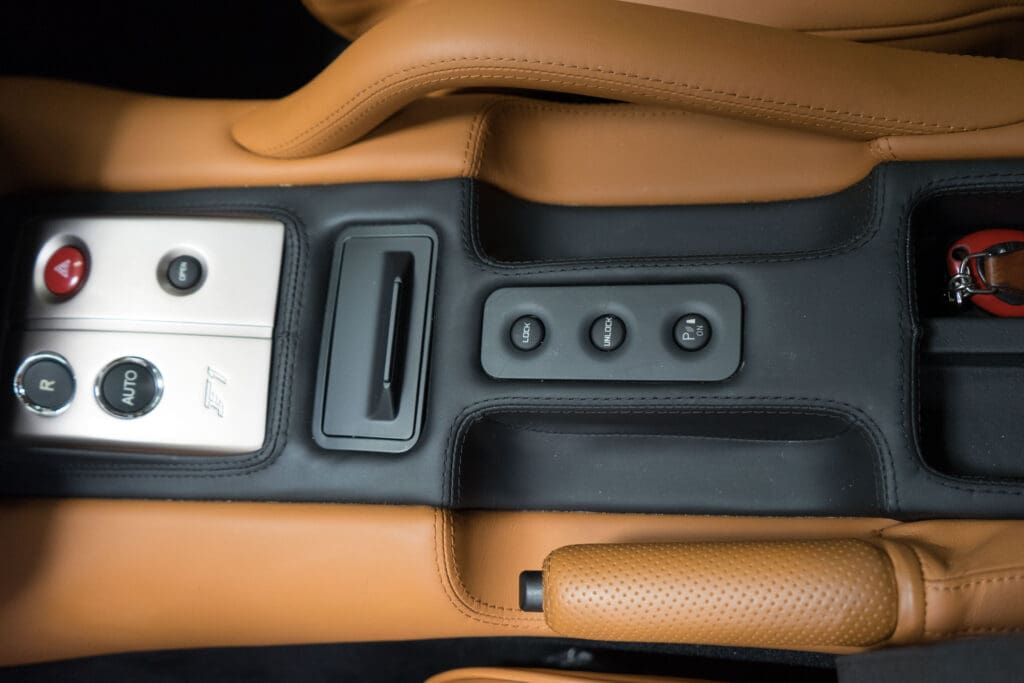 But wait; there’s more:This car is a one-owner ordered new by a multiple-Ferrari owner who wanted a special car to cover the 60 miles to his office every clear day, and unlike many Ferrari dilettantes, he actually drove it! Custom-ordered with nearly $50,000 in factory options, the car had an MSRP of $351,560 (see the window sticker above) and it was regularly and exclusively serviced at the Ferrari dealership.