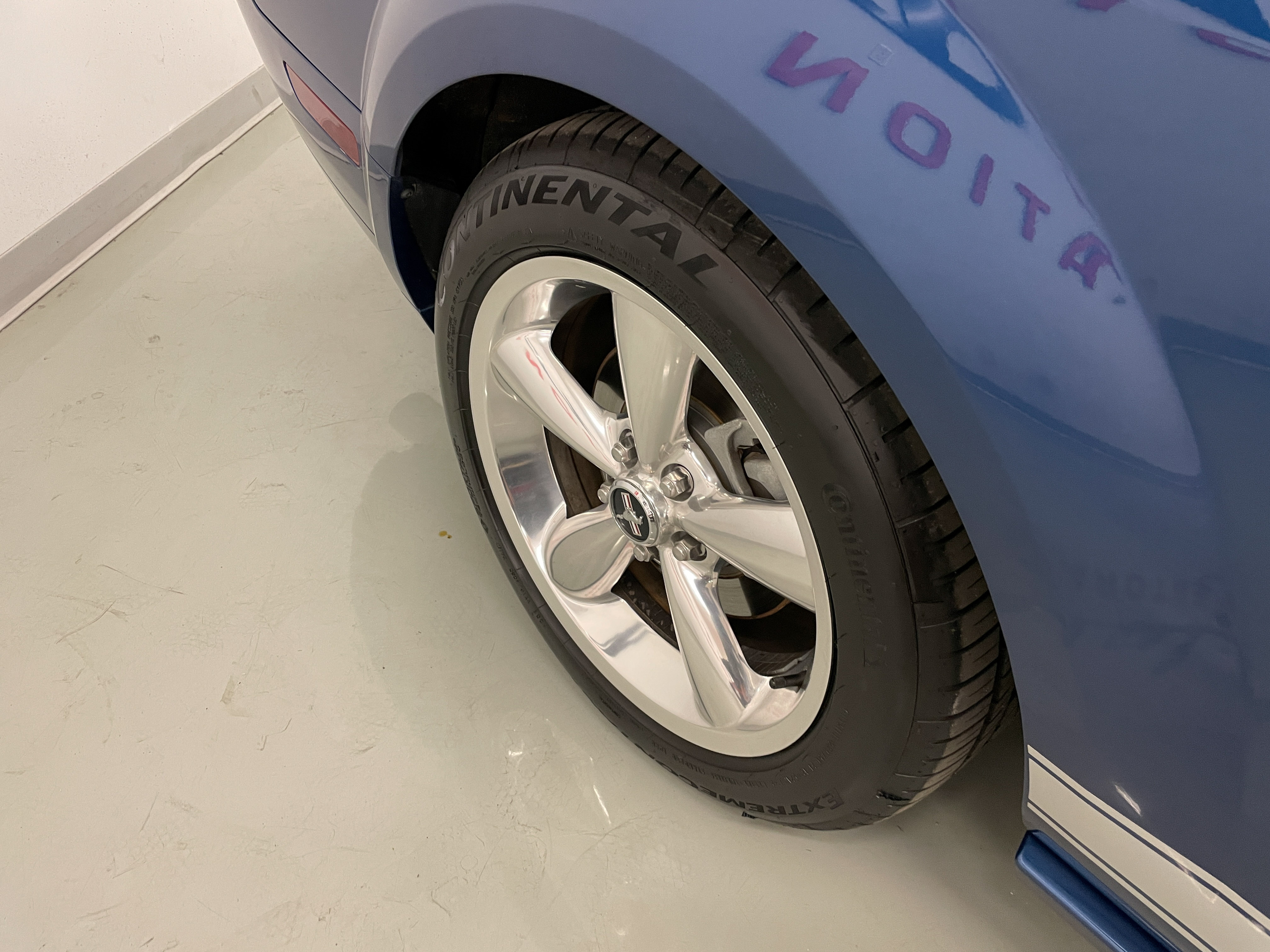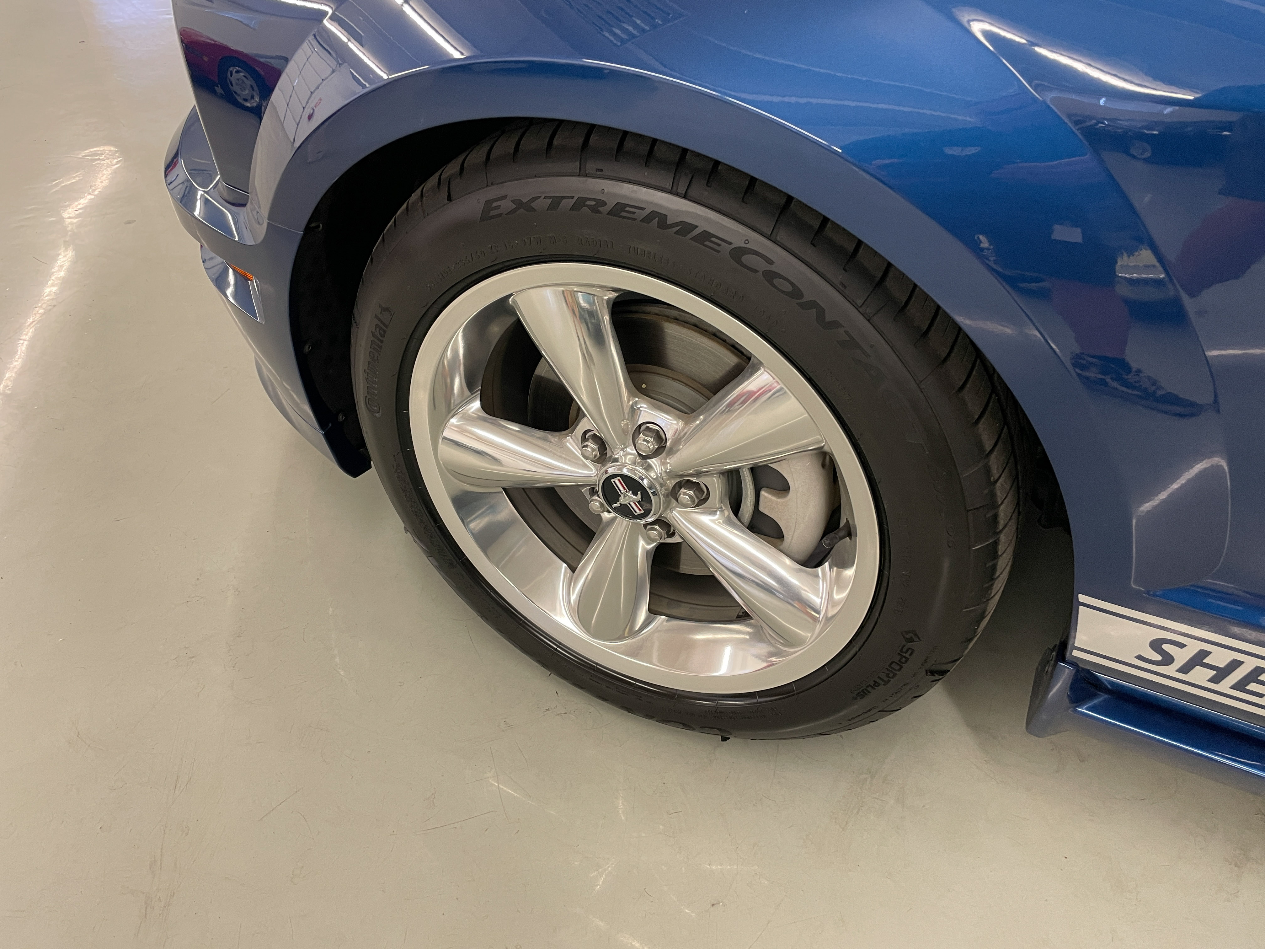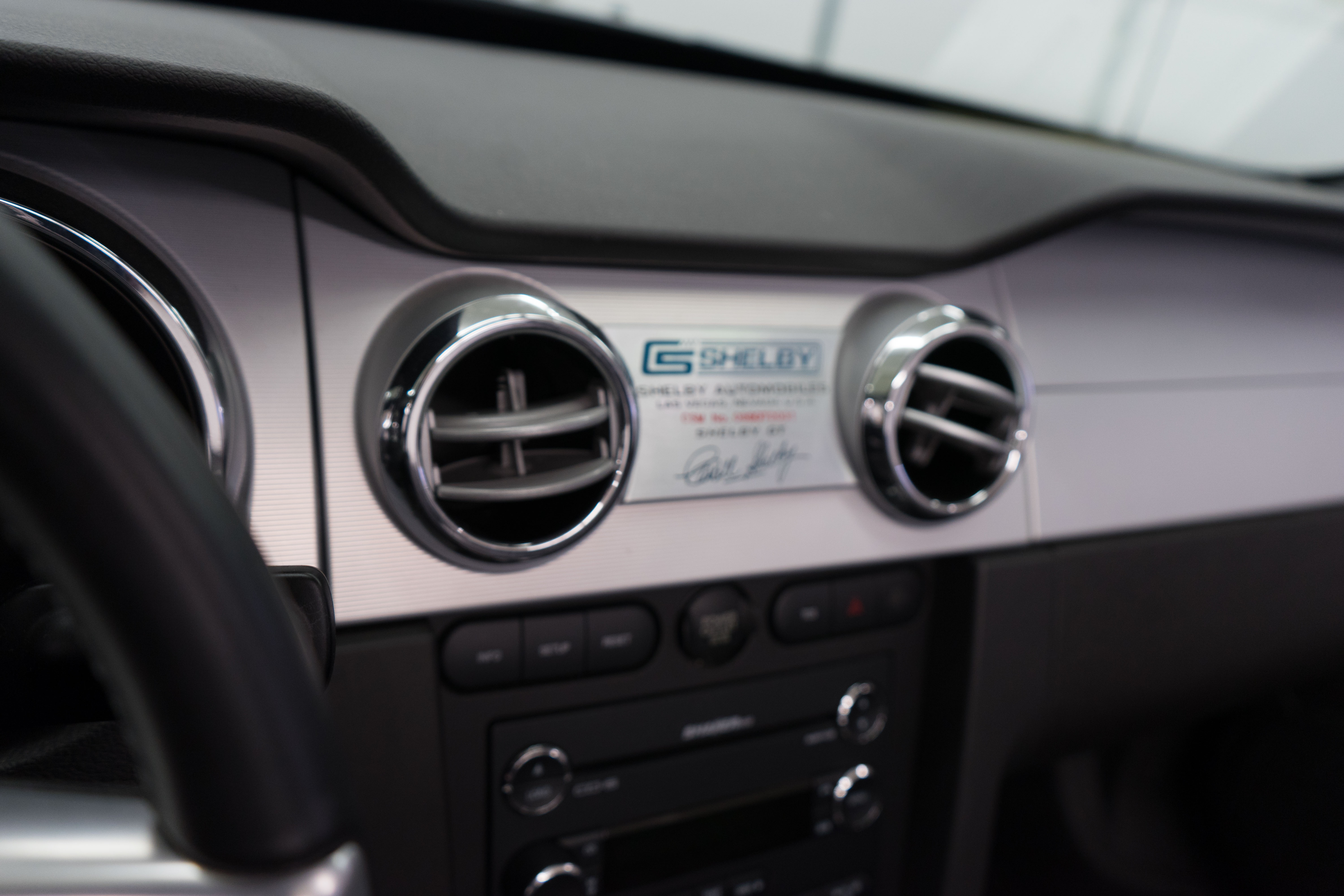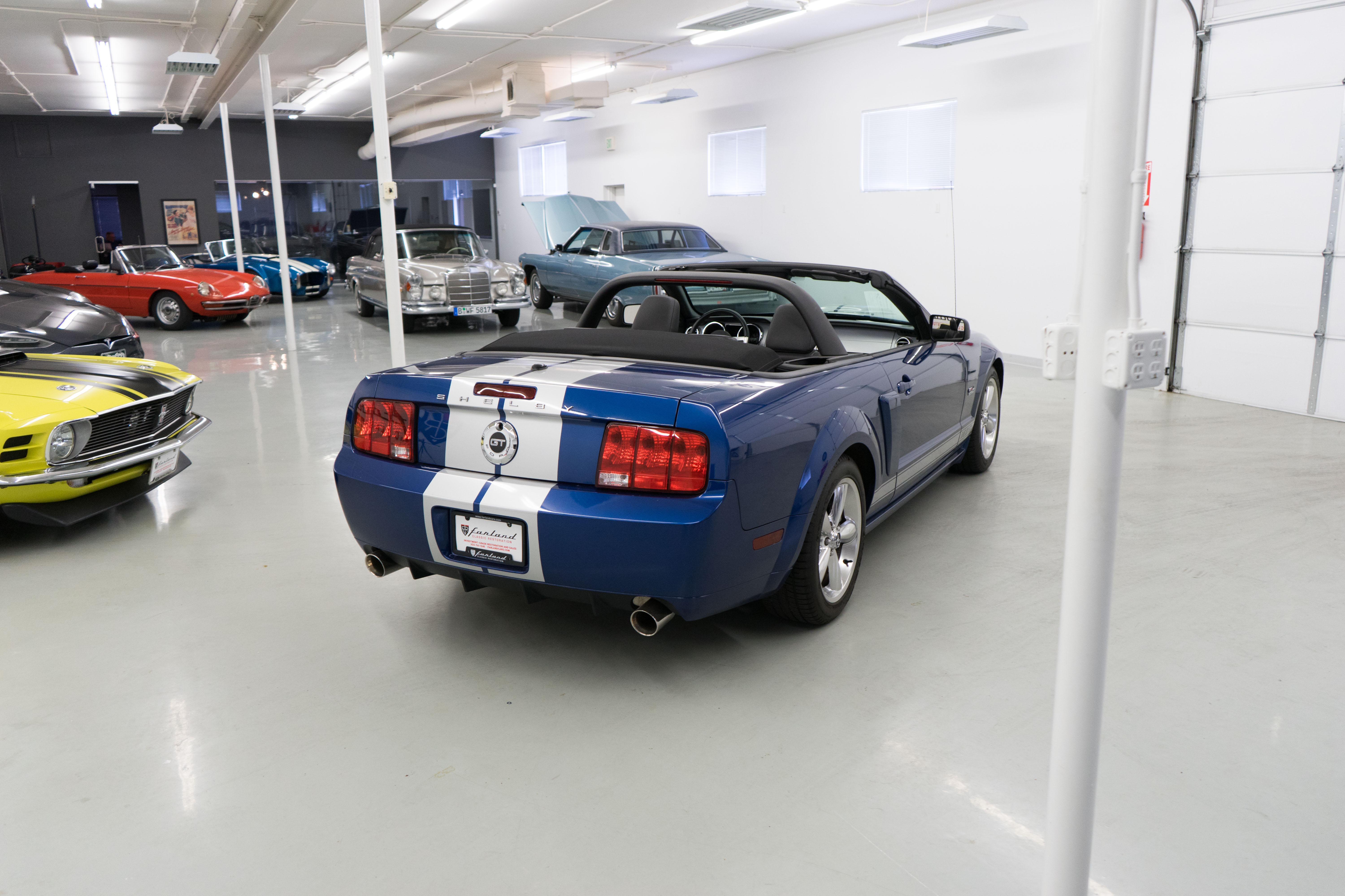 One of the ‘real’ Shelby GTs done at the Shelby American plant in Las Vegas when a new car. All ’08 convertibles were Vista Blue & Black, but not all had the same options. This car has the cold air intake, strut tower reinforcement, limited slip diff and the low-restriction exhaust among other features.