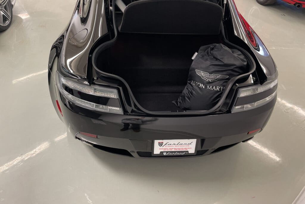 Even better, this one is a ‘Carbon Black Special Edition’ with several body panels done in carbon fiber, bespoke black alcantara suede & leather on Kevlar/carbon sports seats and huge carbon-ceramic brakes. Other features include navigation, diamond turned 19” wheels and piano black interior trim with Aston’s best sound system. The car has been driven only 13K miles—enough to stay exercised yet not so much to accelerate depreciation. Clean CarFax report (rear bumper has been painted, but not reported), never smoked in and is complete with all the factory books, Aston car cover and both ‘crystal’ electronic keys.
