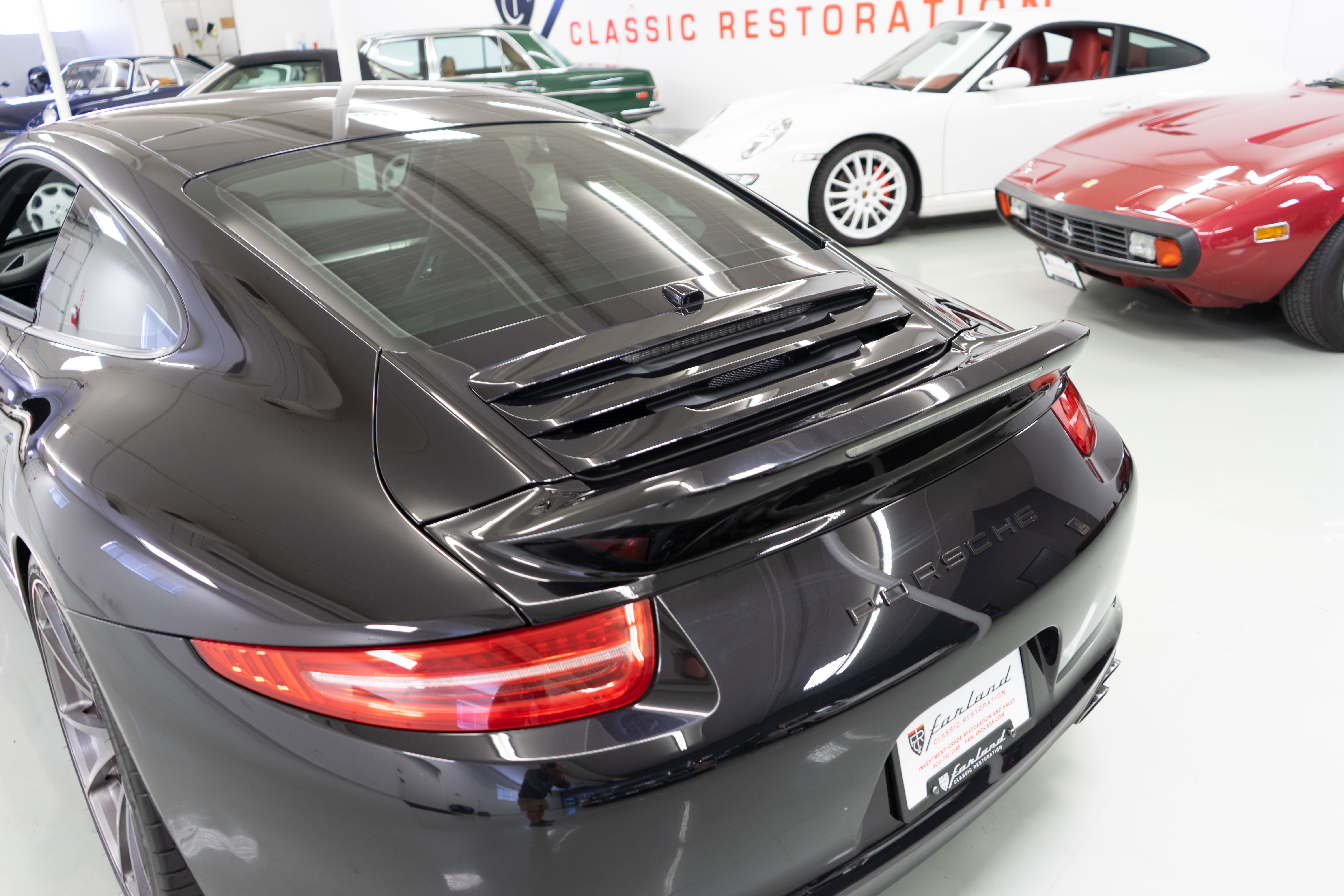 This striking Carrera coupe is very well-optioned and has just 29,000 miles. Painted in Basalt Black Metallic over a Black interior, this car offers the feel of open-air driving, thanks to a large sunroof, plus the added backbeat of the 911’s final generation of naturally-aspirated engines. A previous owner added some extras that included the Porsche Sport Design Ducktail Spoiler and a unique TechArt aero kit on the front bumper and side skirts.