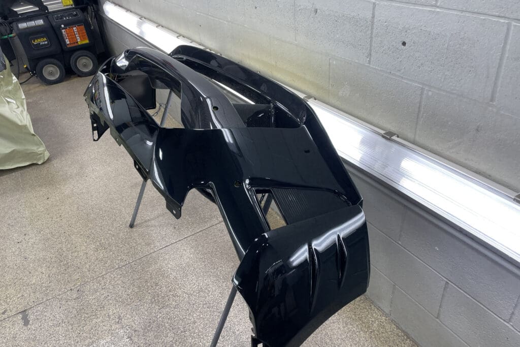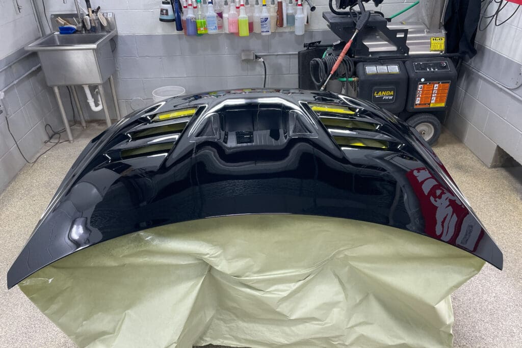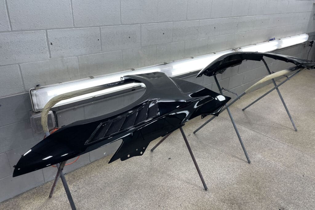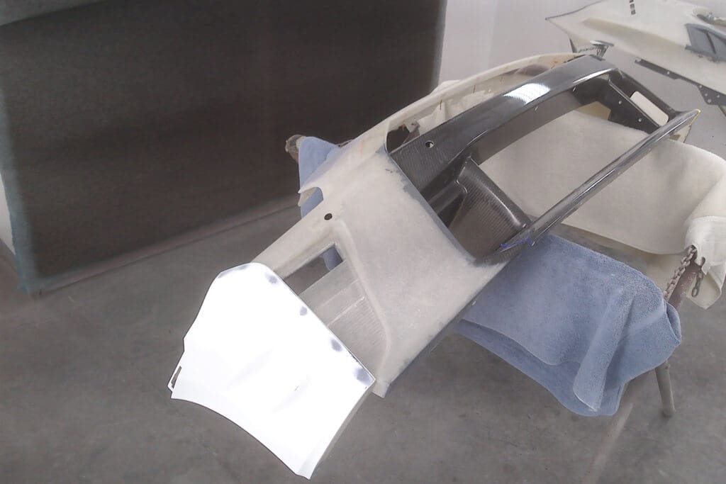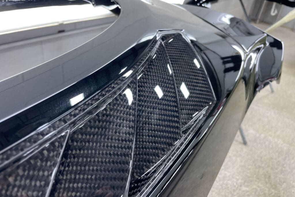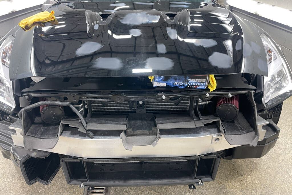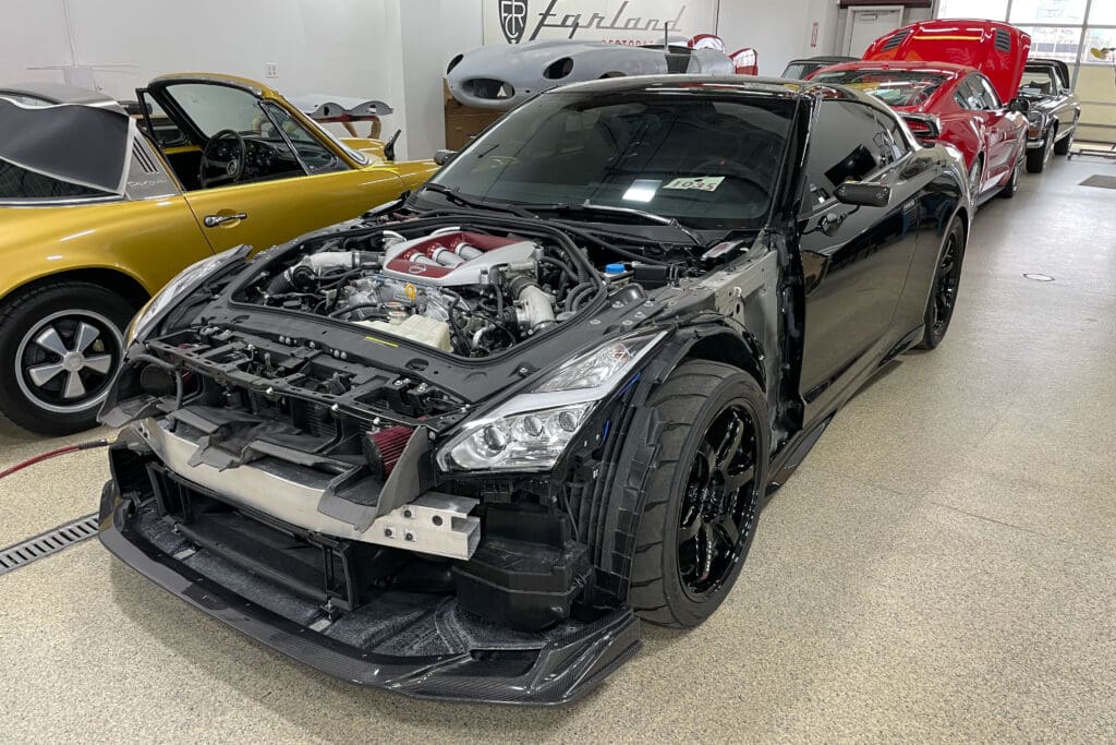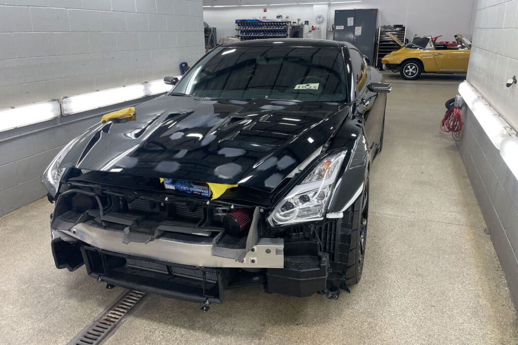 The owner of this incredible Nissan GT-R asked us to replace his front clip with the Japanese spec hood, fenders & front bumper/air dam that he sourced from Japan. He visited several shops in town who told him the job was impossible to complete without paint blending into the doors. The car had already been protected with PPF that he did not want to interrupt. This task involved a great deal of work, as each bit of carbon fiber must be taped off, as well as all the panels prepped, sanded and primed, as they were all quite rough straight from the molds. We then matched the existing paint perfectly to match the rest of the panels. The results were stunning.